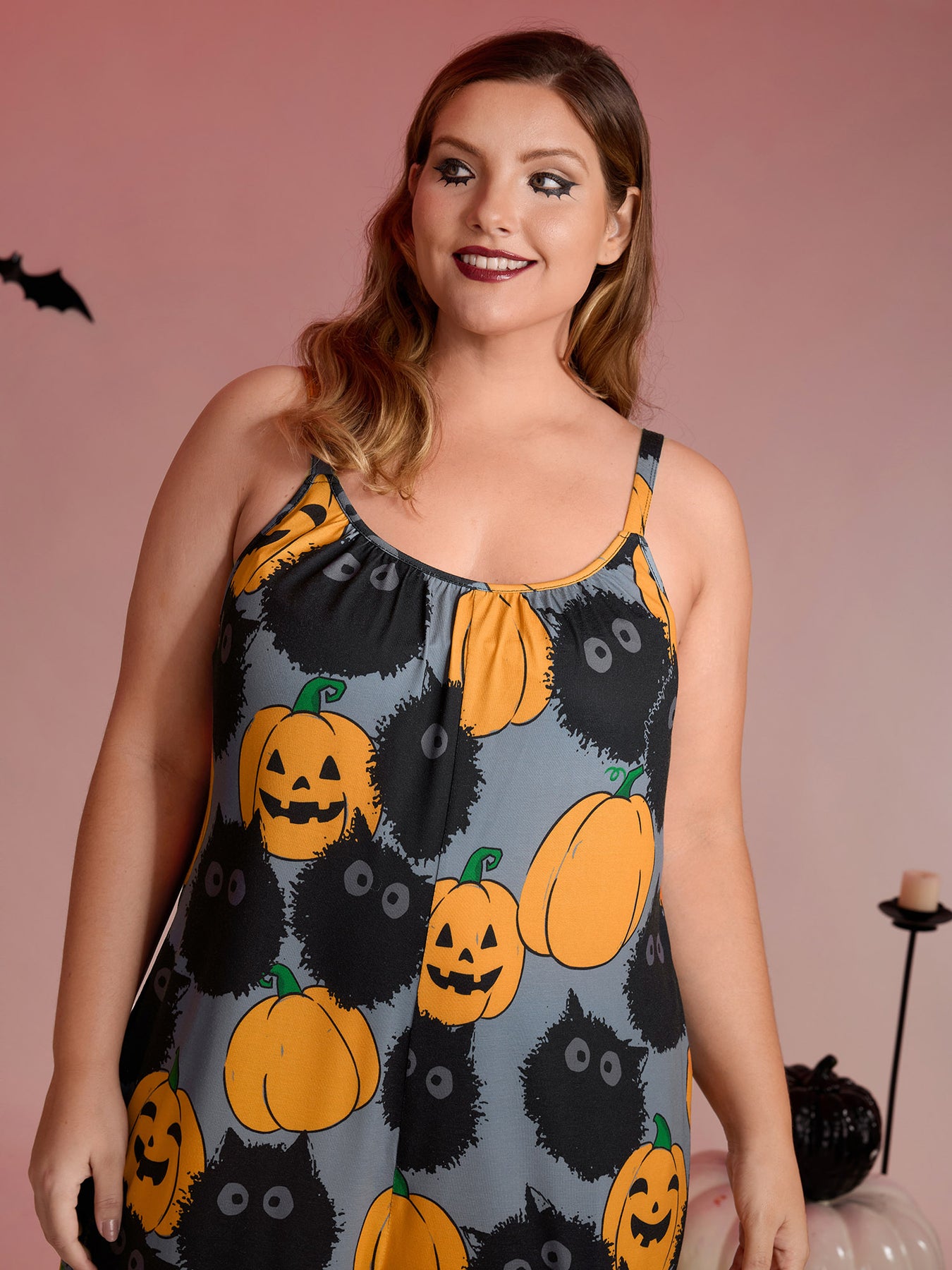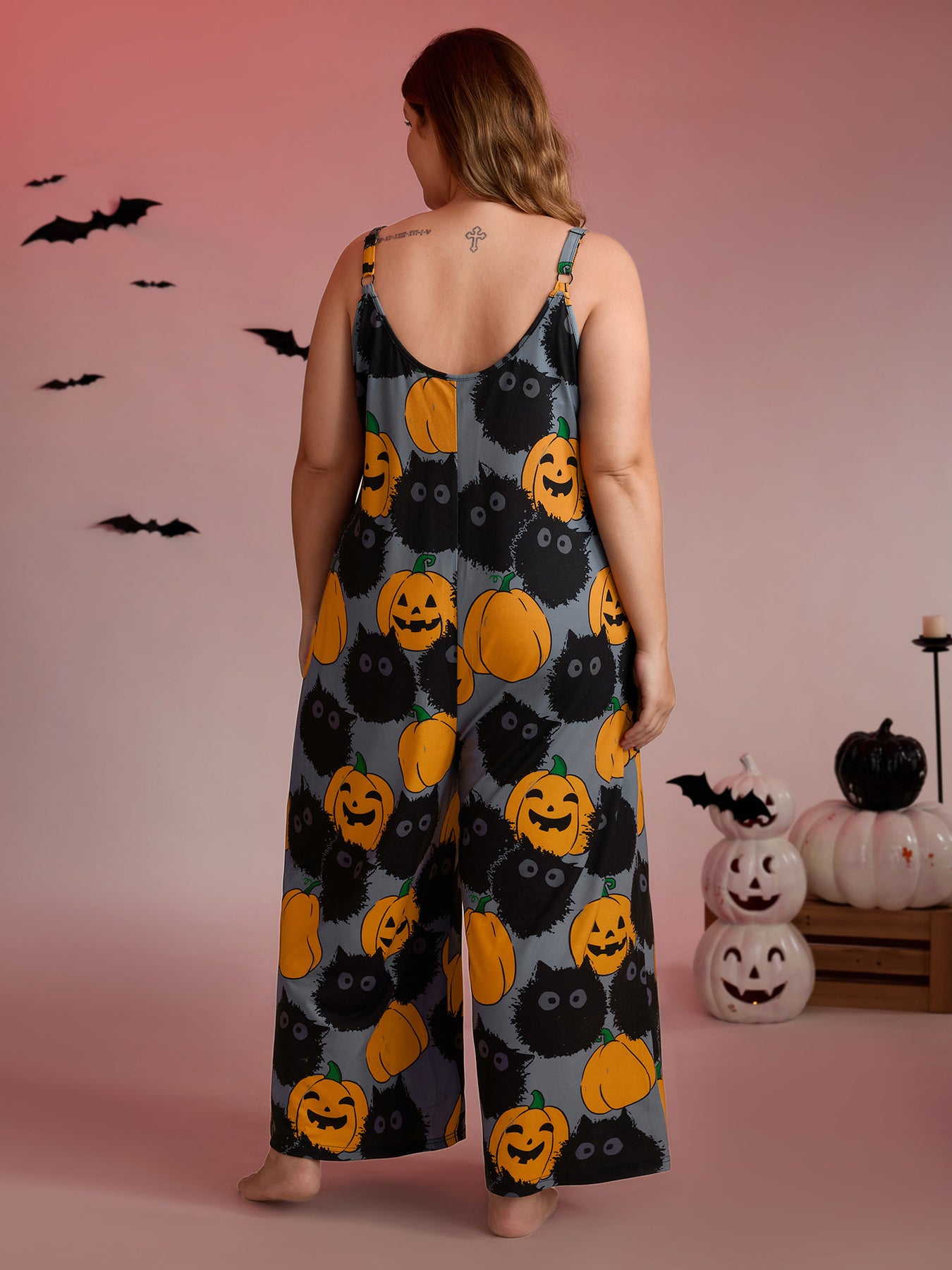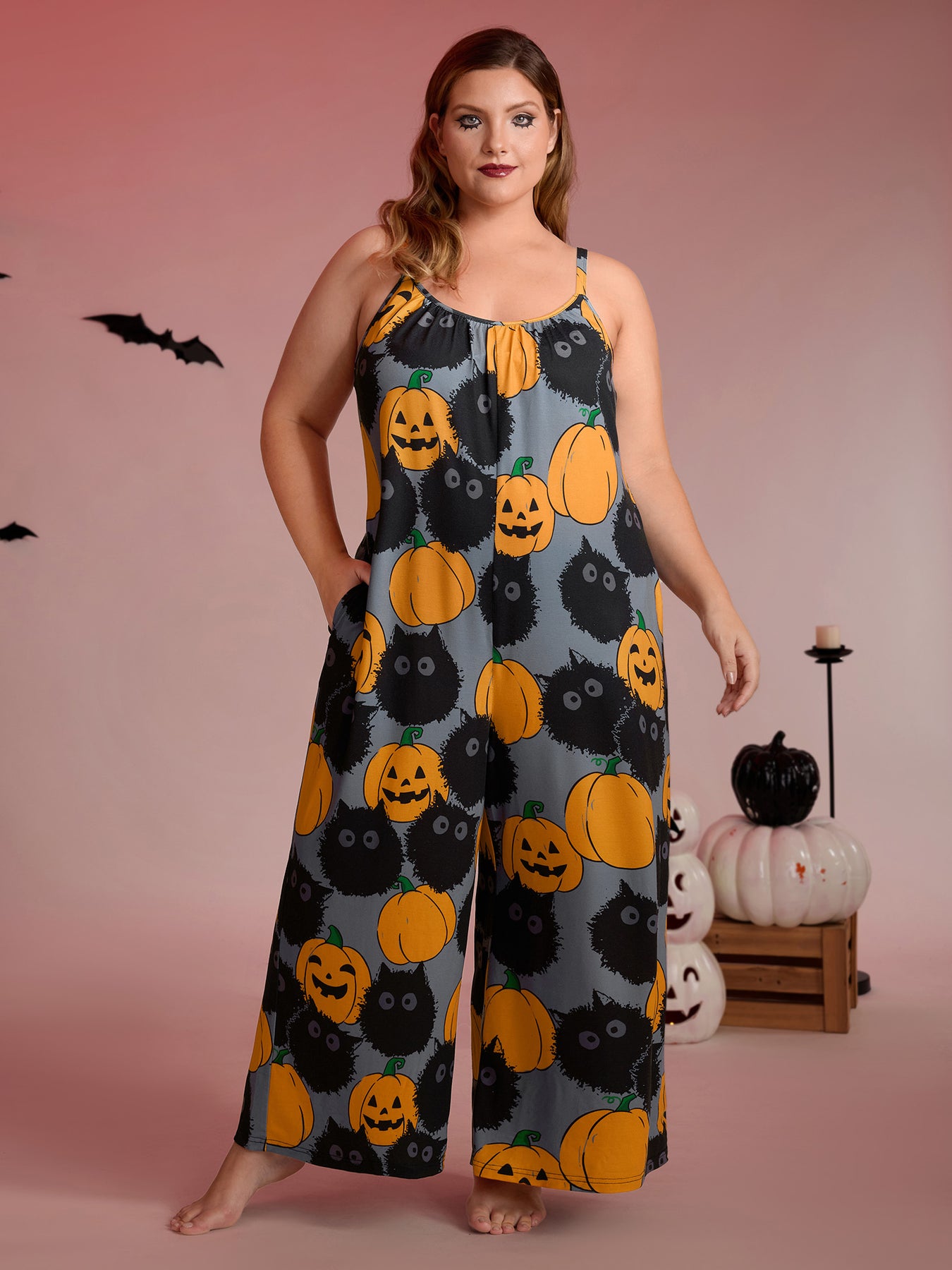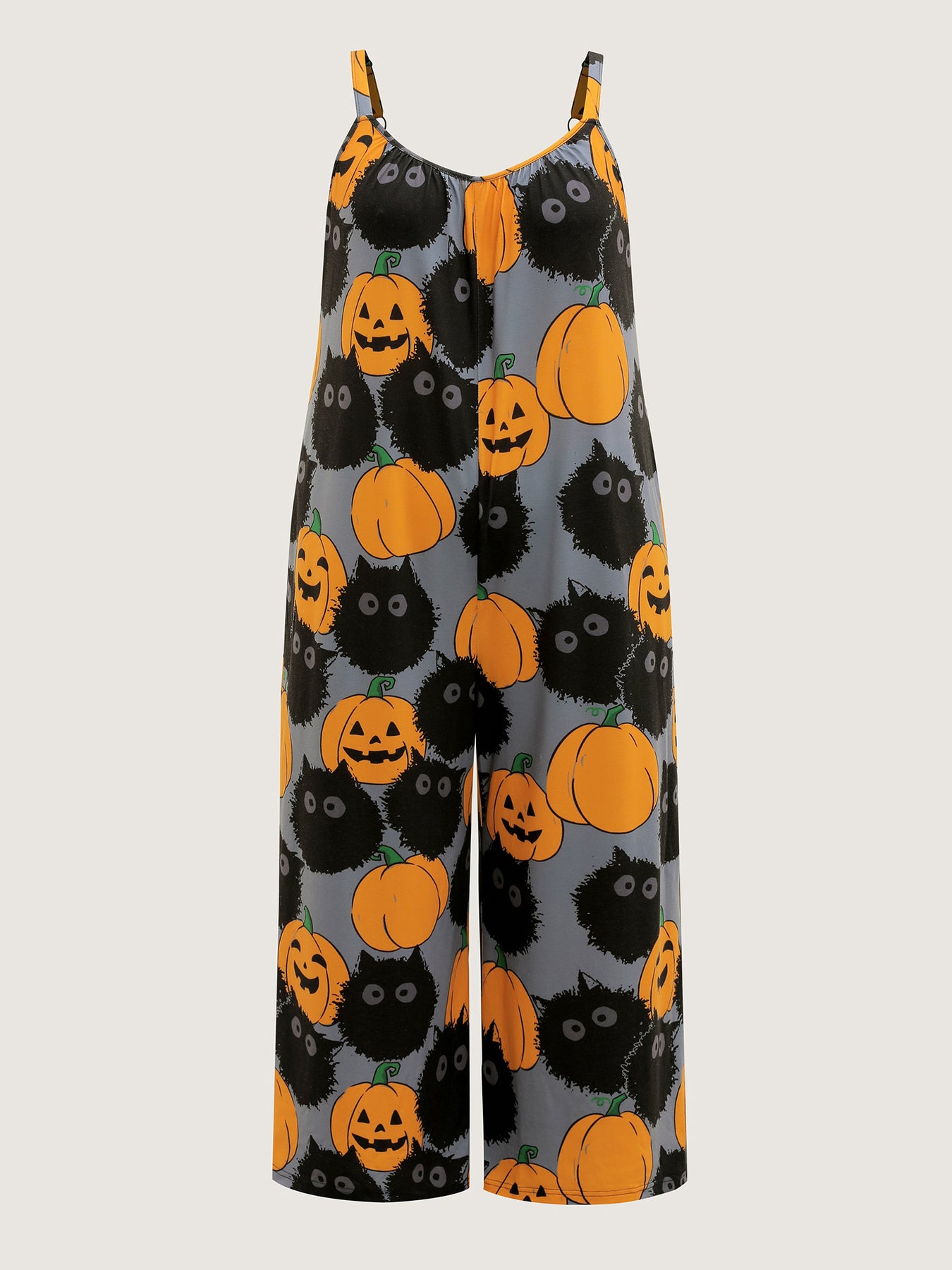 Pumpkin Everywhere Print Wide-Leg Jumpsuit