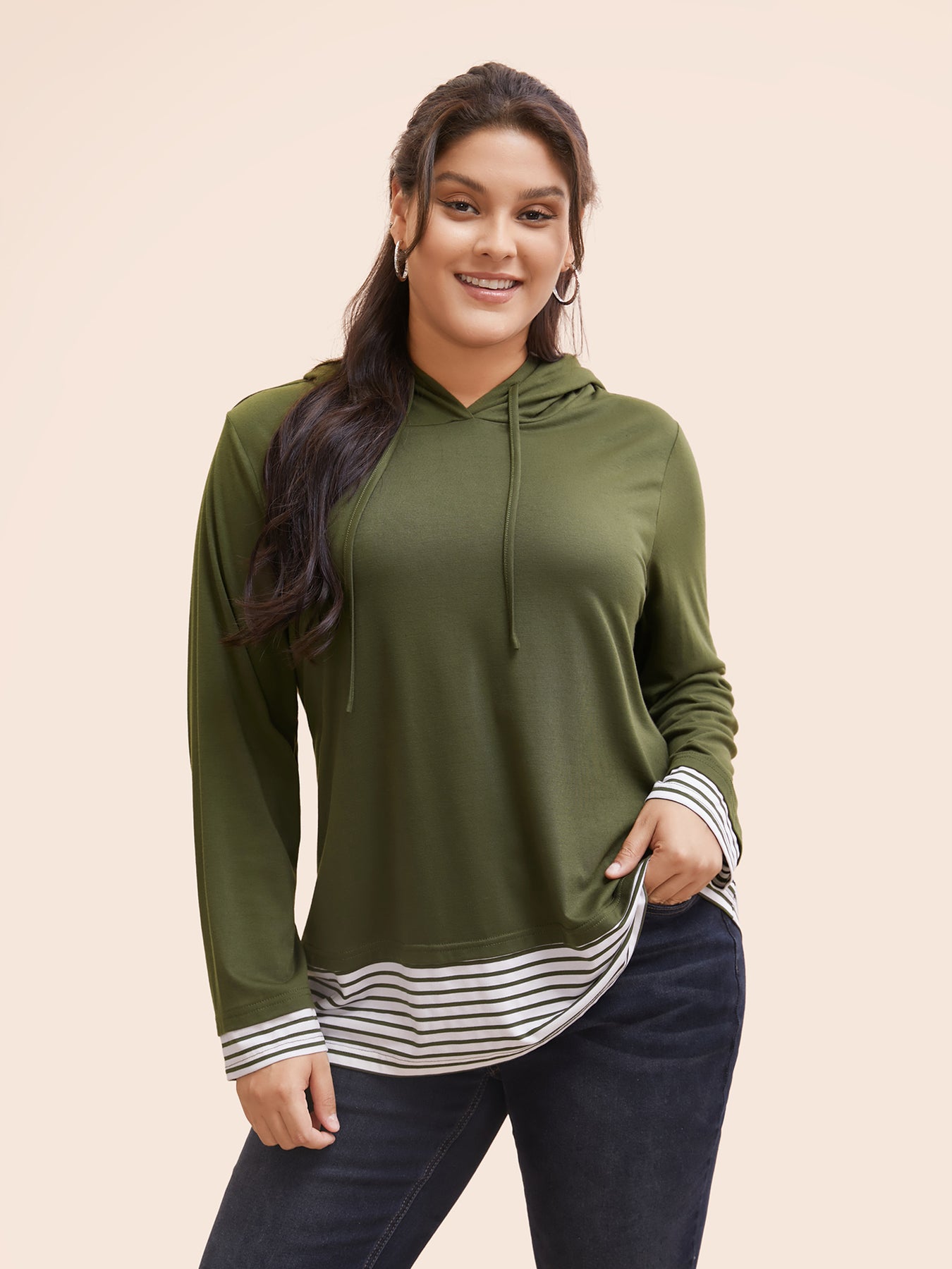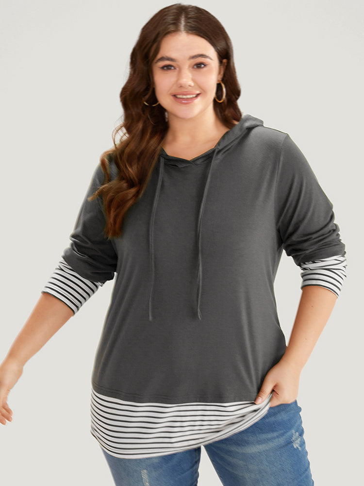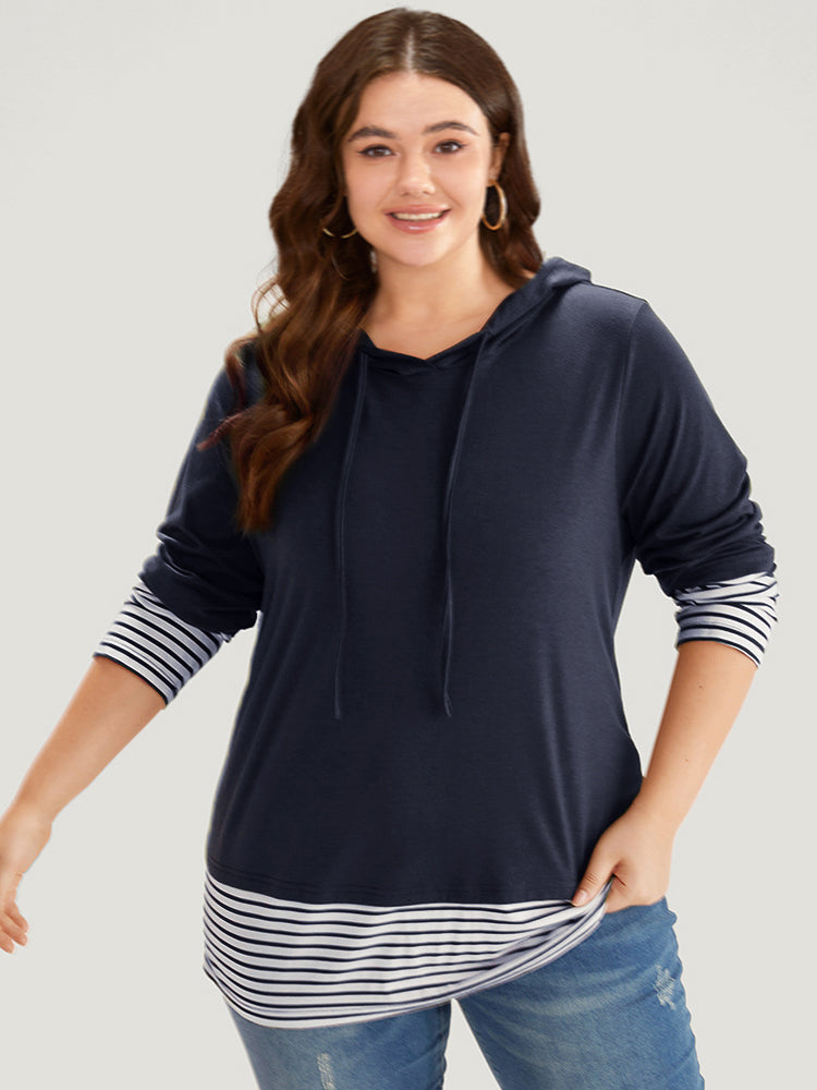 Striped Patchwork Hooded Drawstring T-shirt