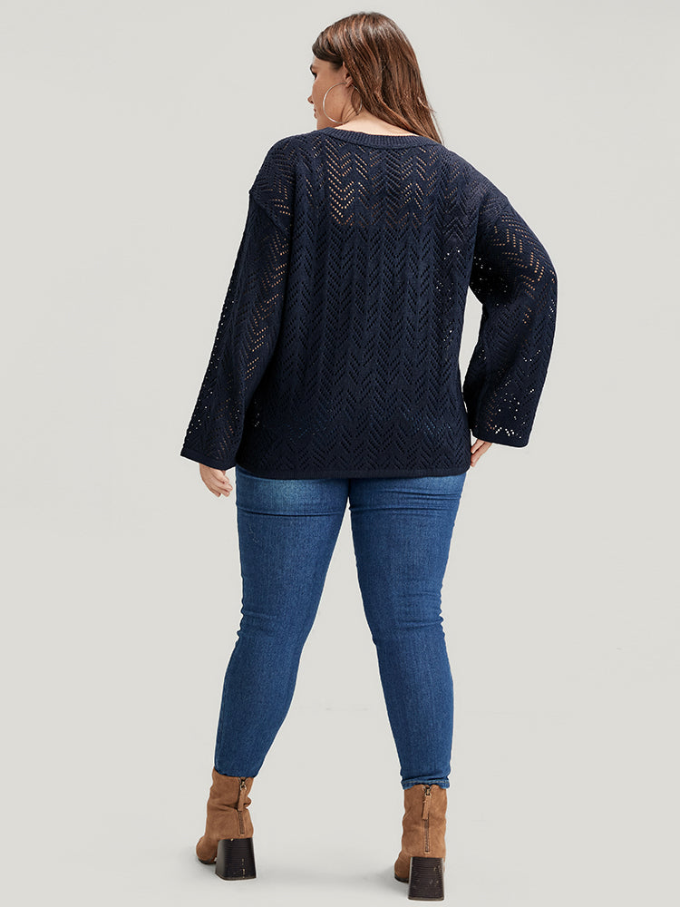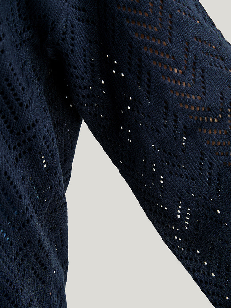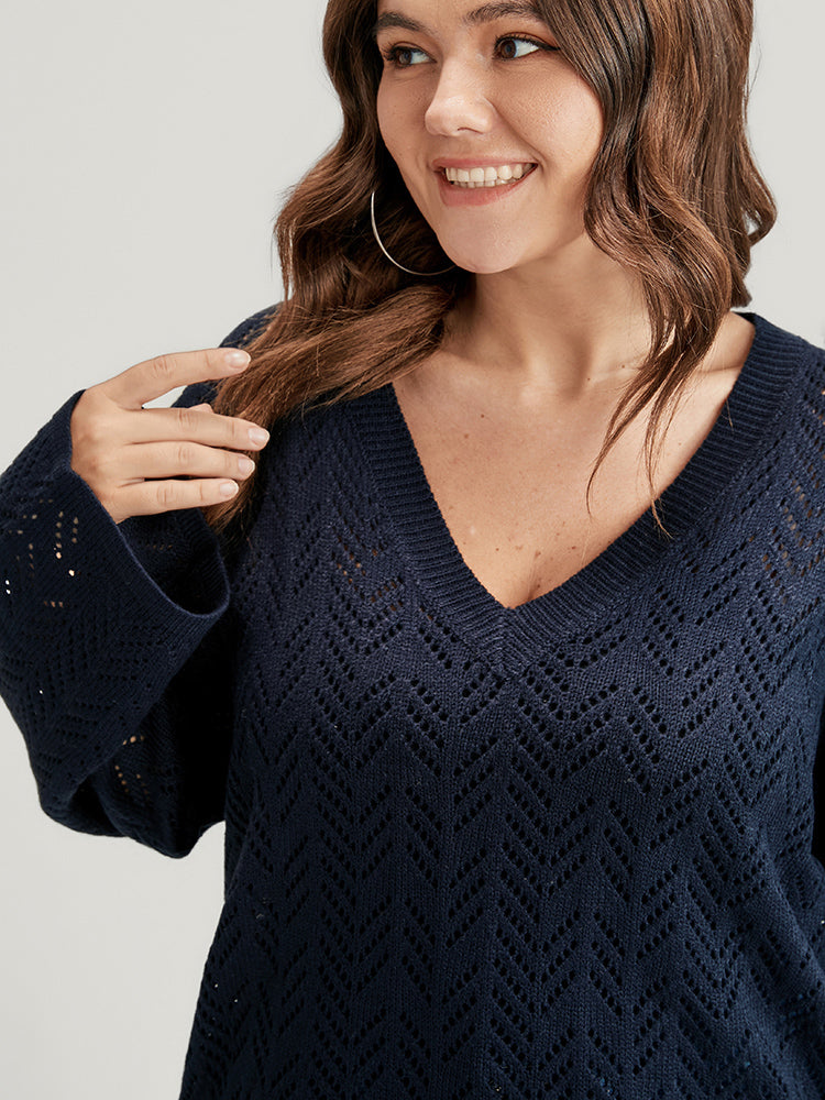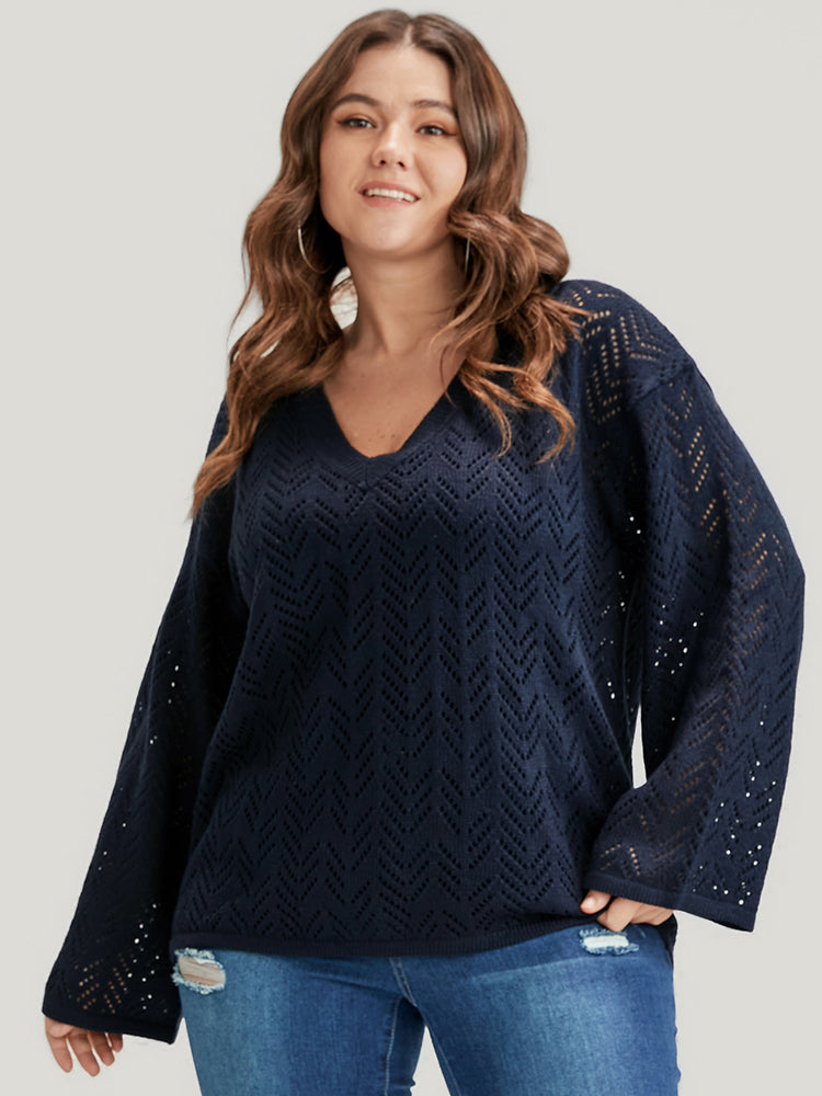 Geometric Pointelle Knit V Neck Eyelet Knit Top