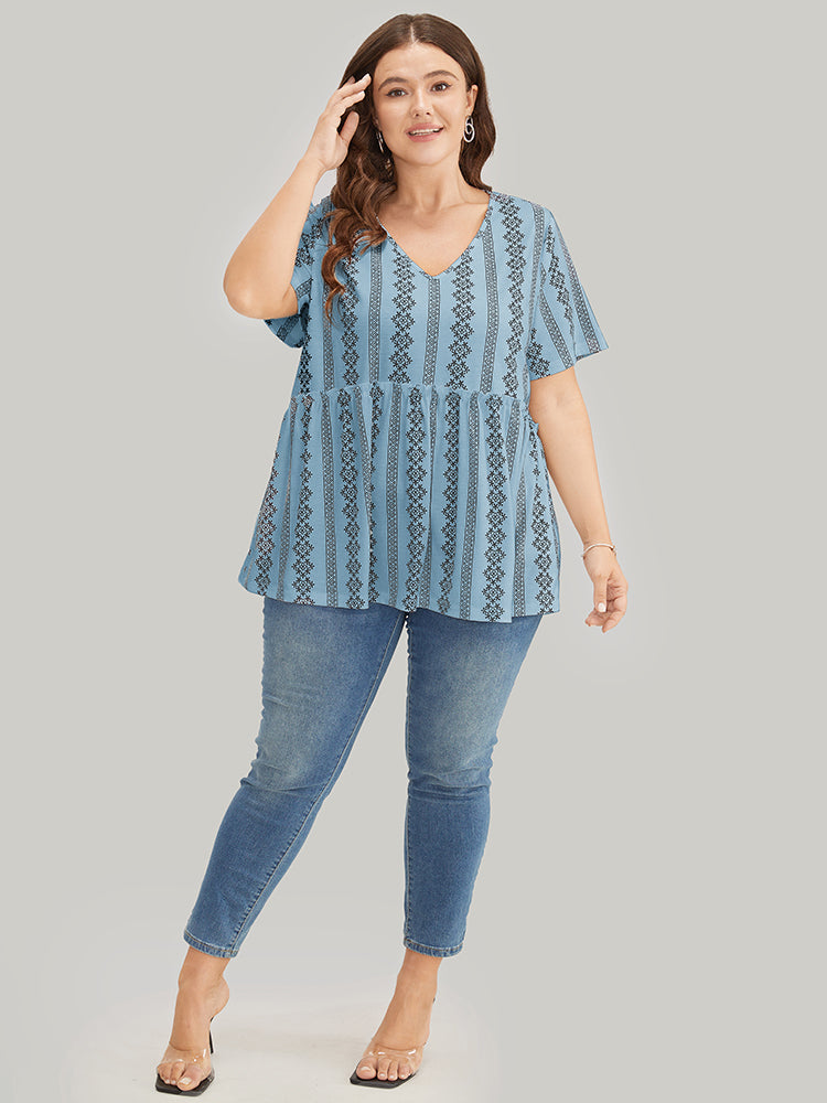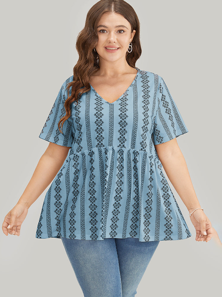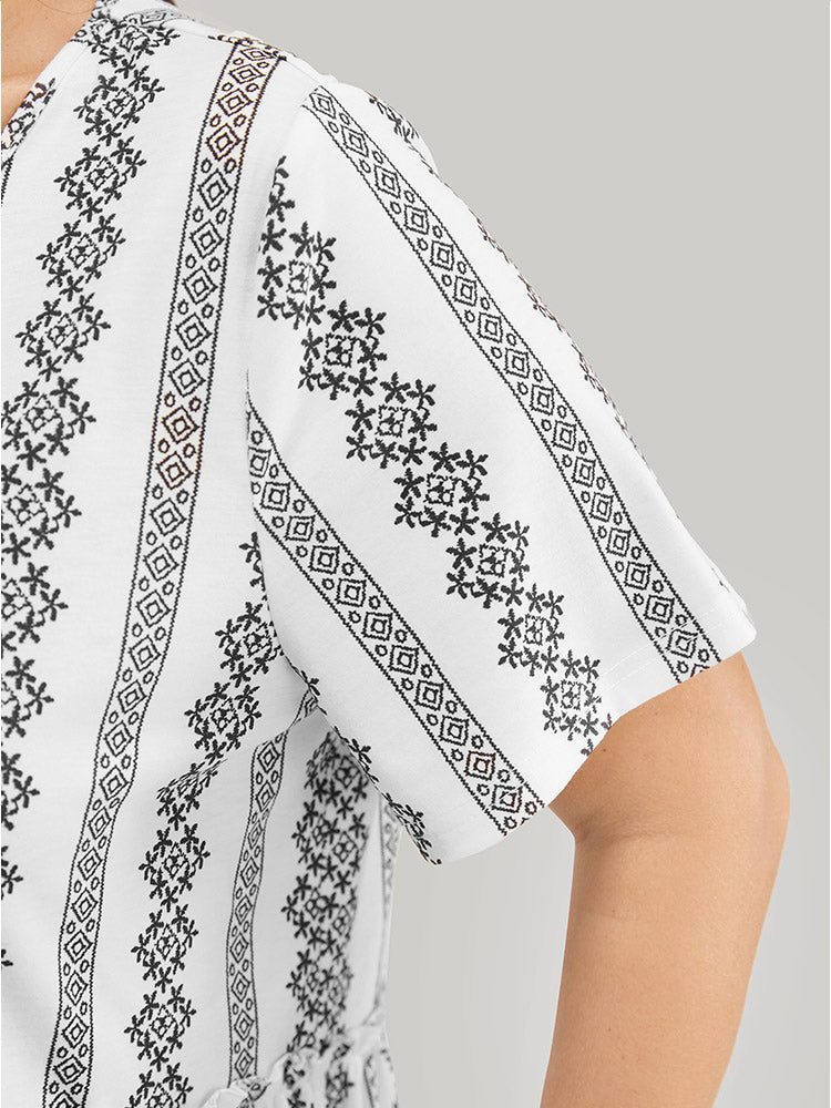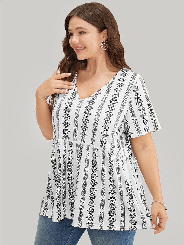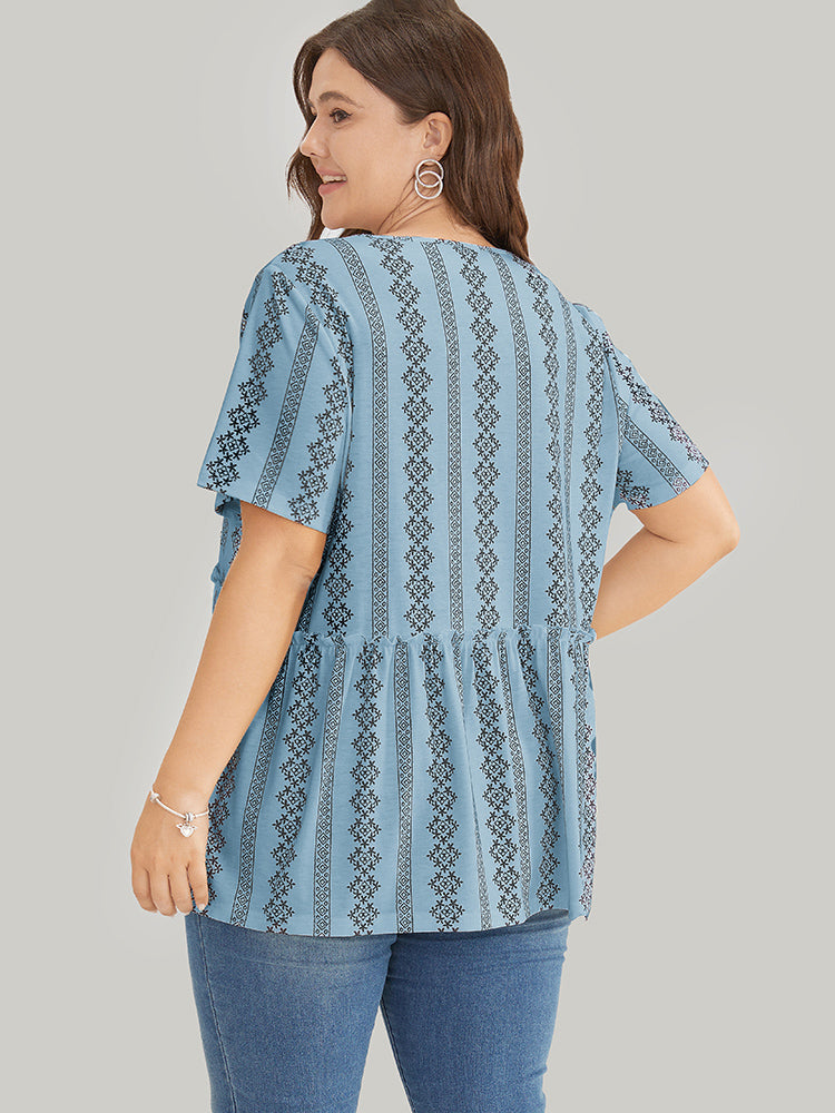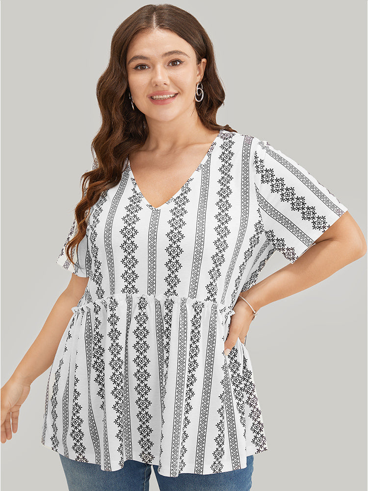 Floral & Striped Frill Trim Ruffle Hem T-shirt