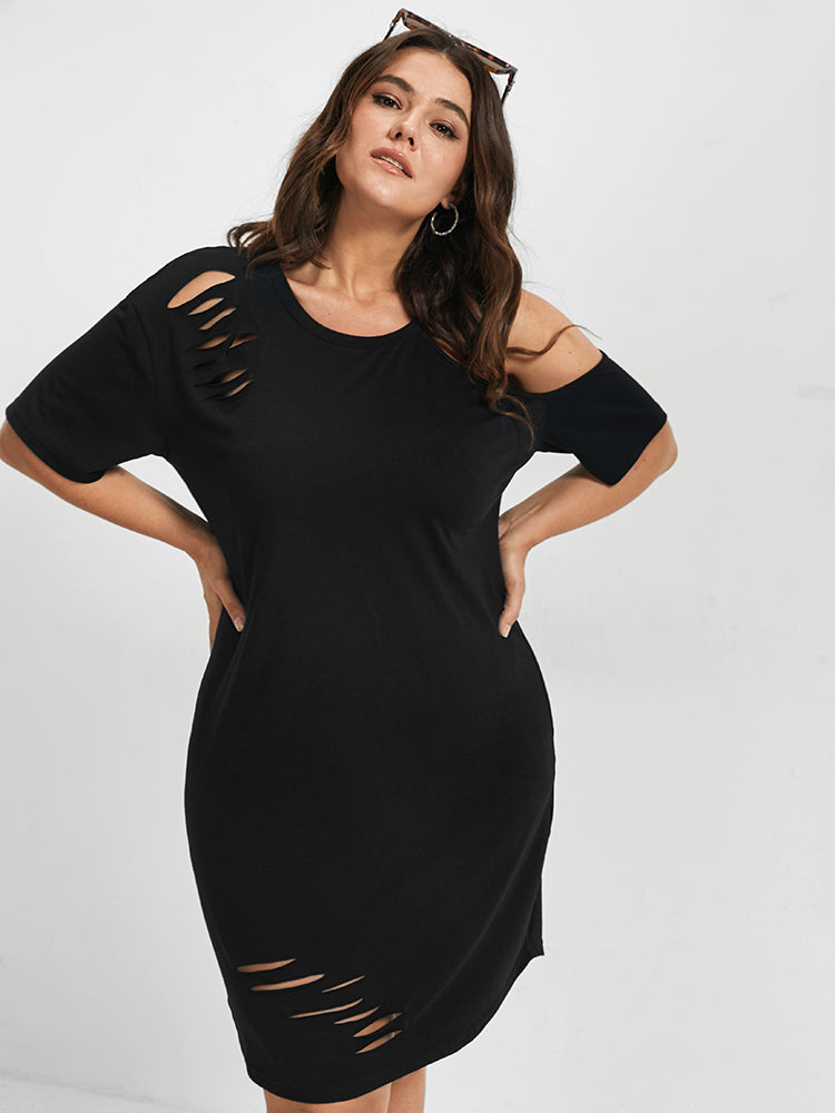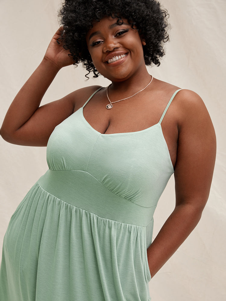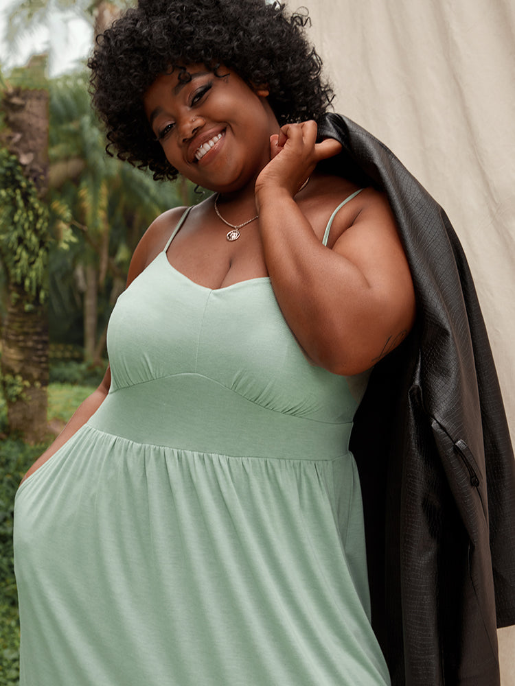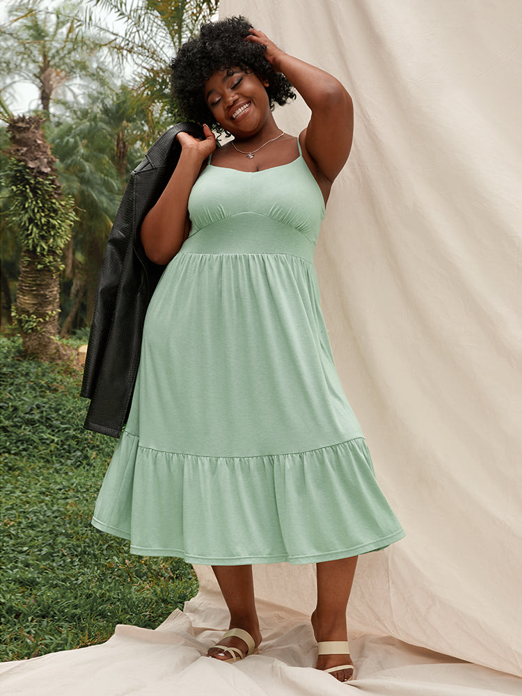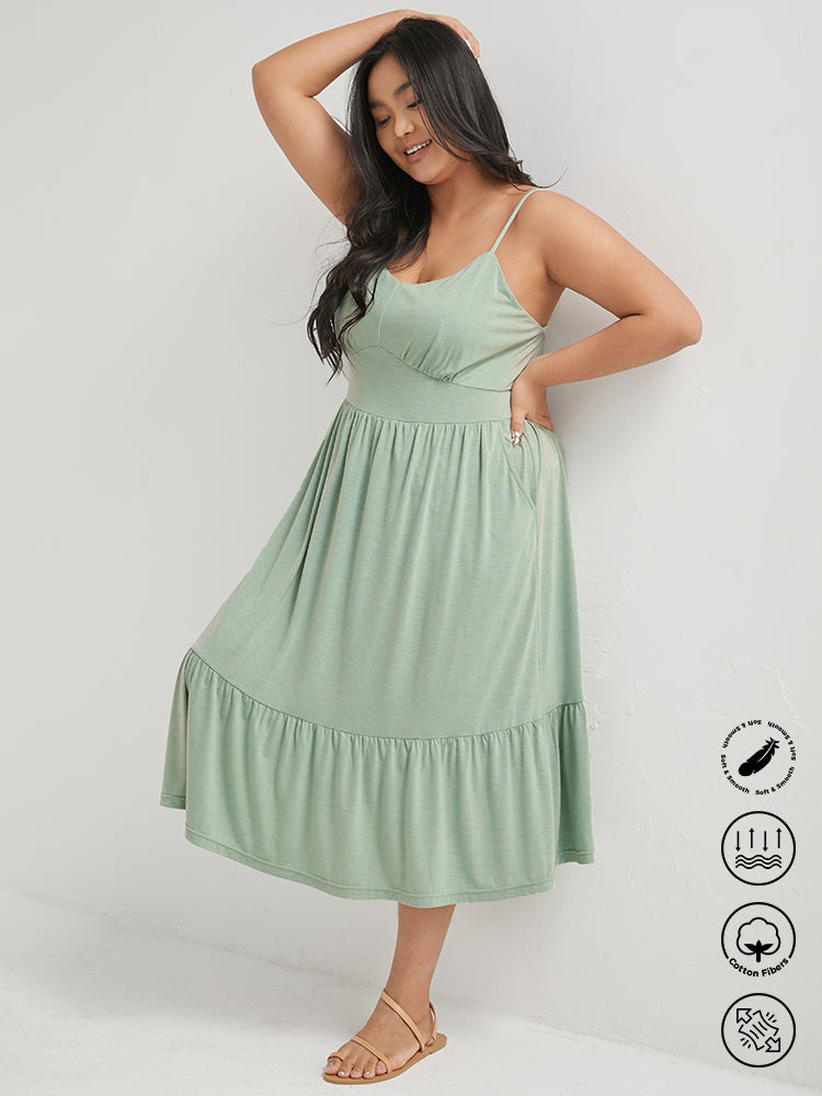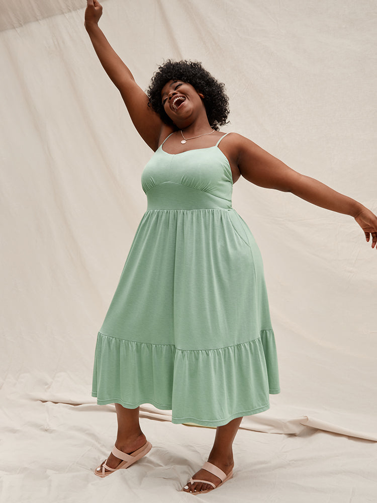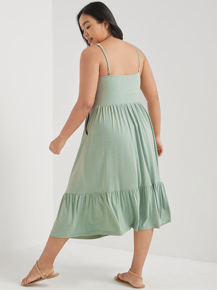 Solid Ruffles Pocket Broderie Anglaise Knee Dress