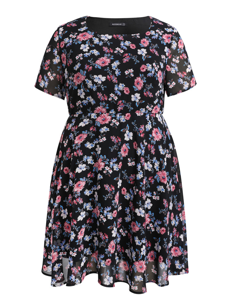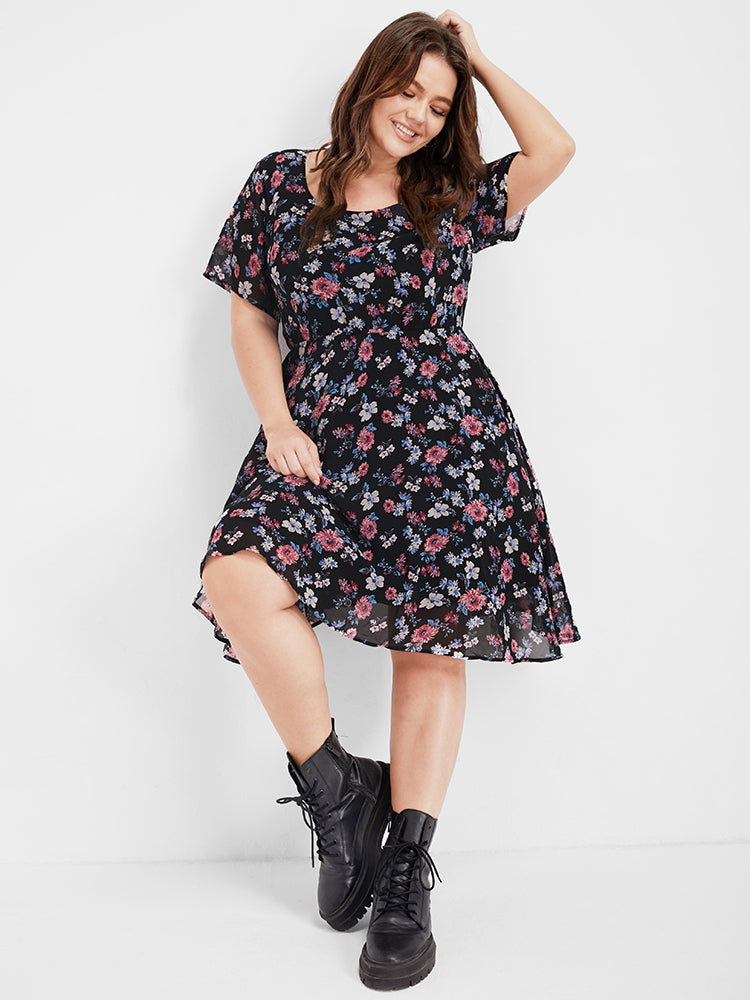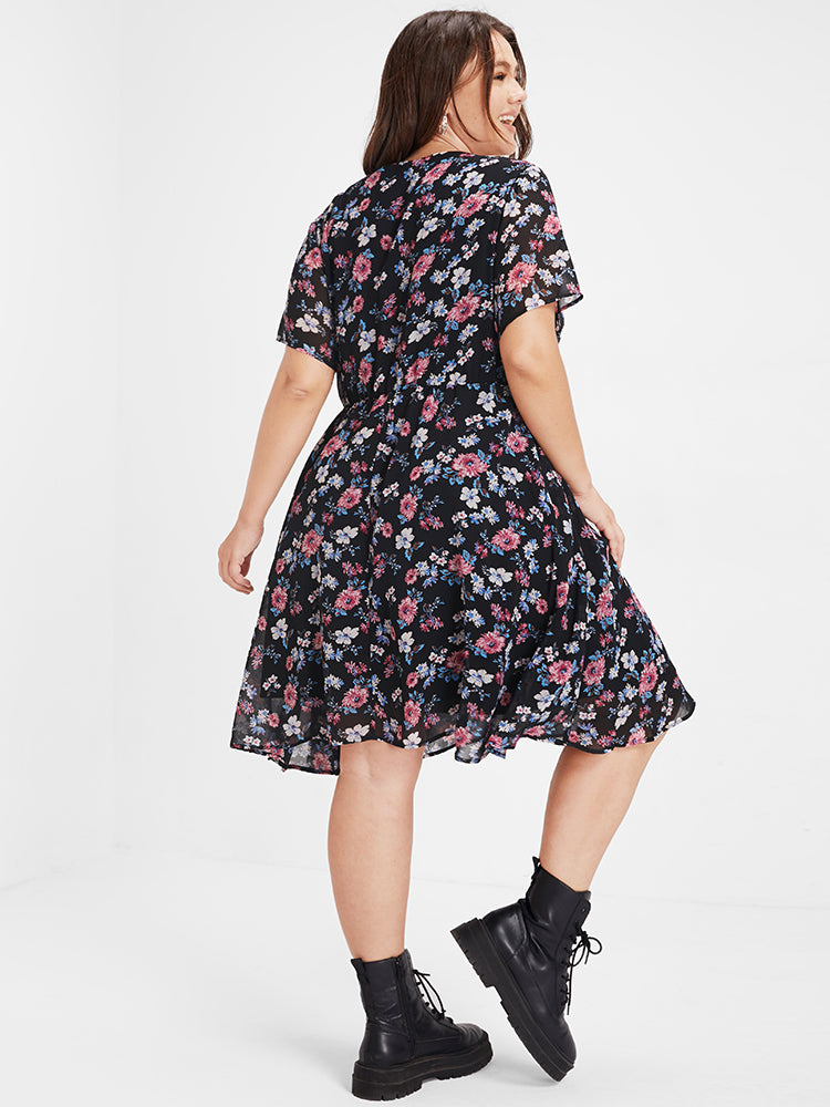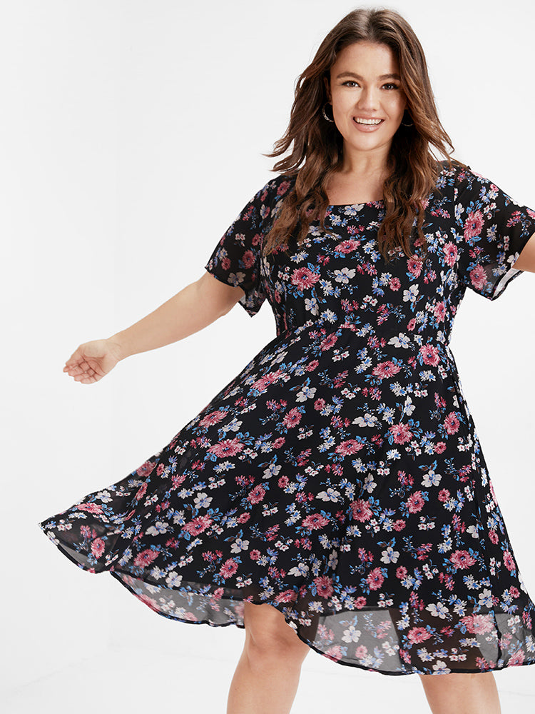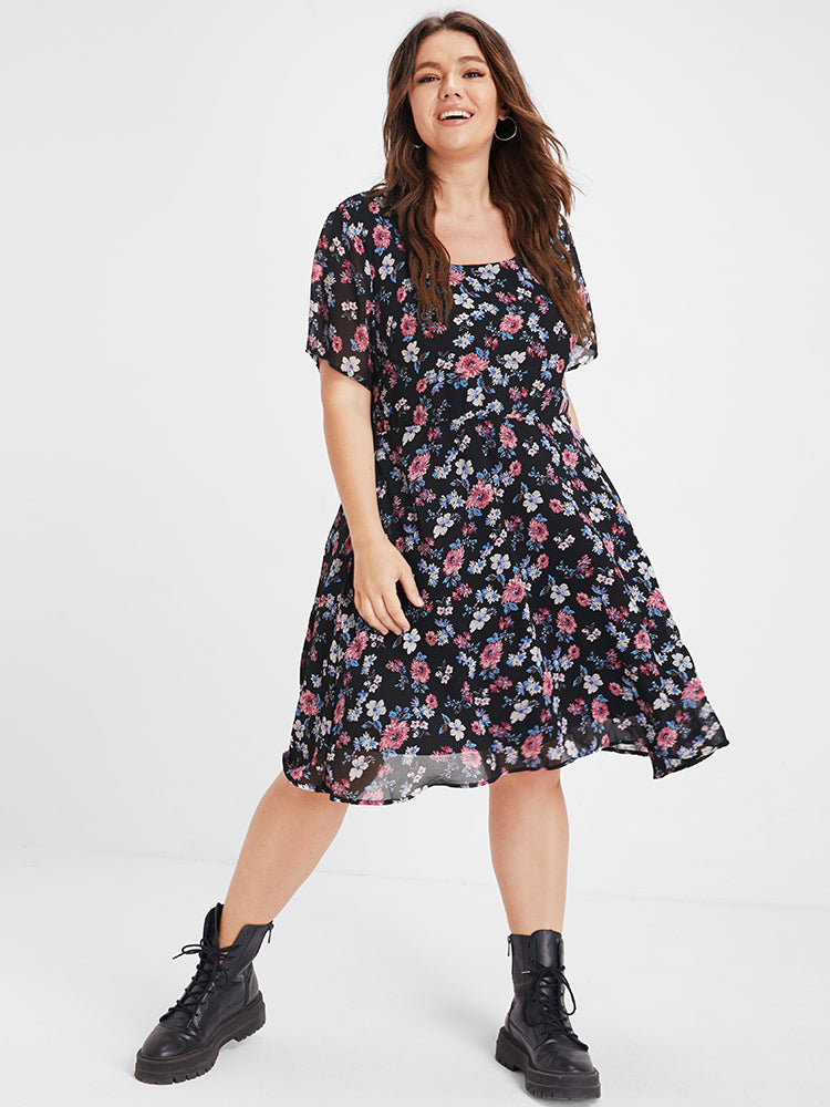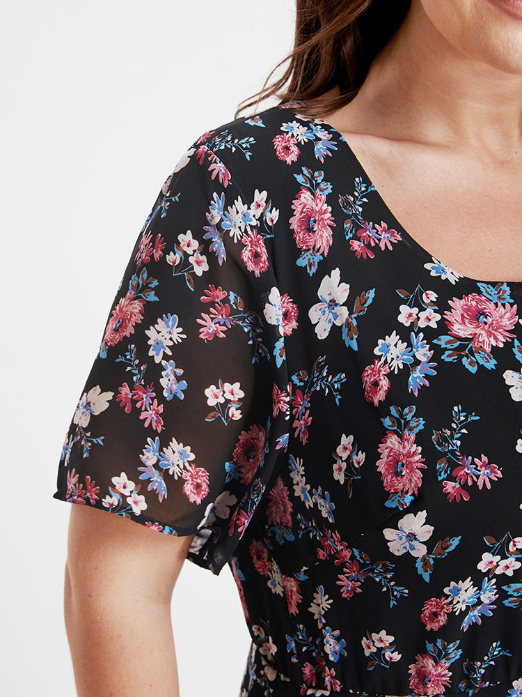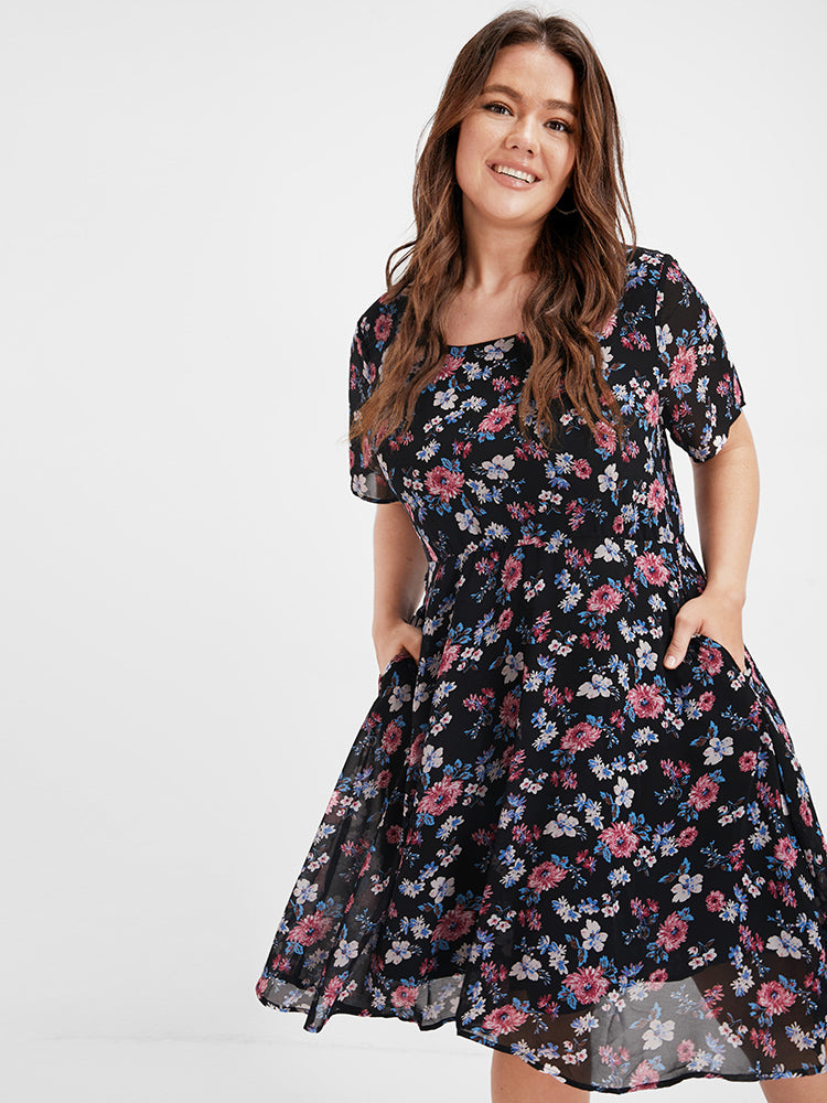 Bloom Dress - Ditsy Floral Elastic Waist Ruffles Pocket Knee Dress
