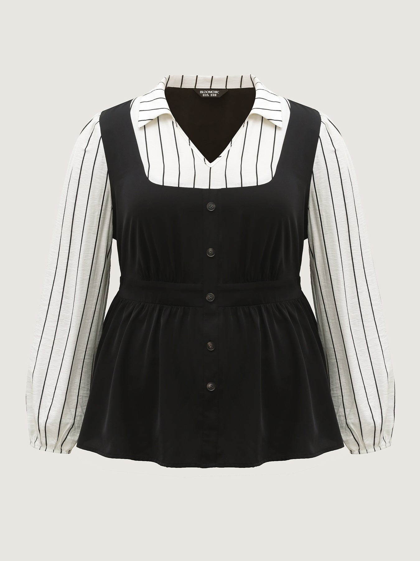 2-in-1 Button Vest Striped Blouse