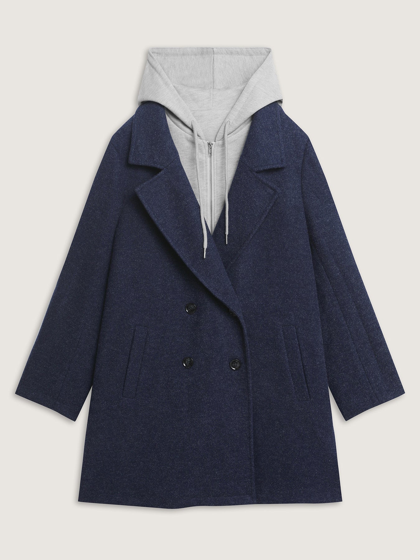2 In 1 Double Breasted Hooded Coat