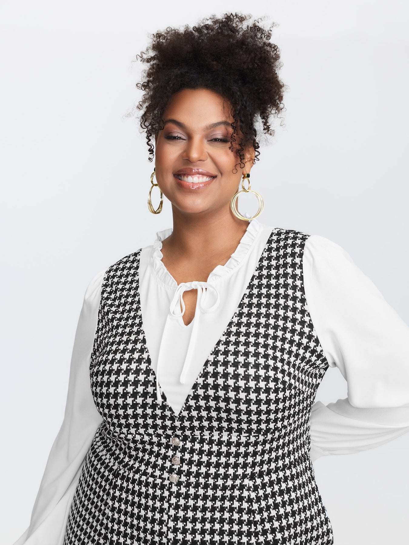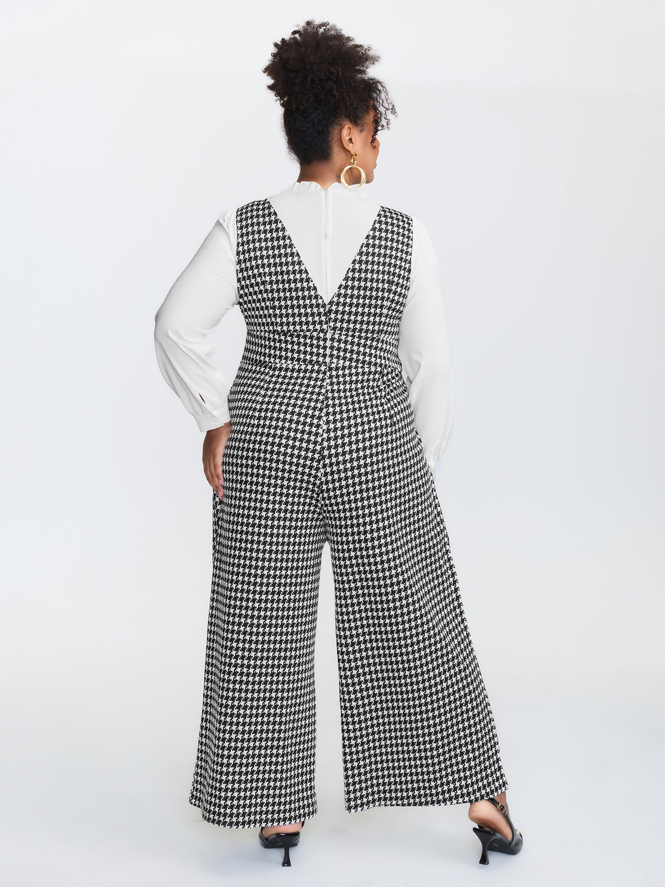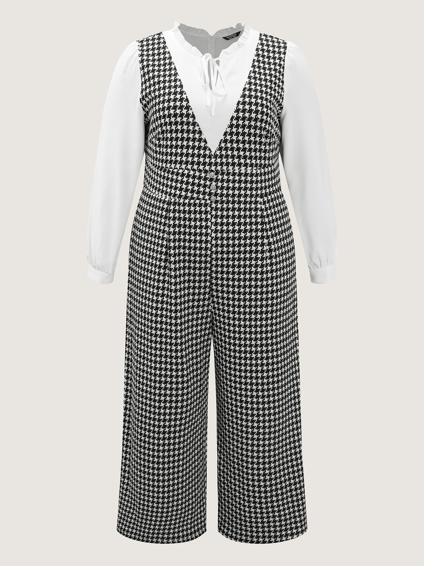 2-In-1 Houndstooth Wide-Leg Jumpsuit