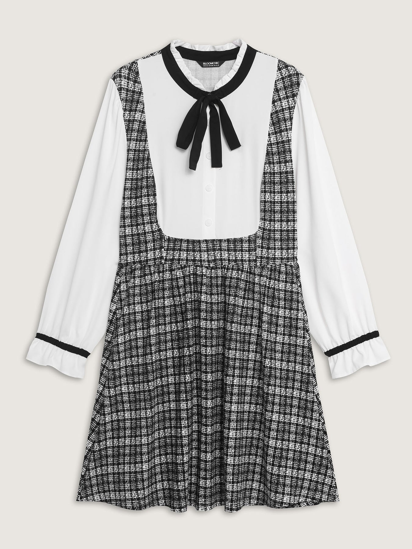 2-In-1 Plaid Pattern Spliced Midi Dress