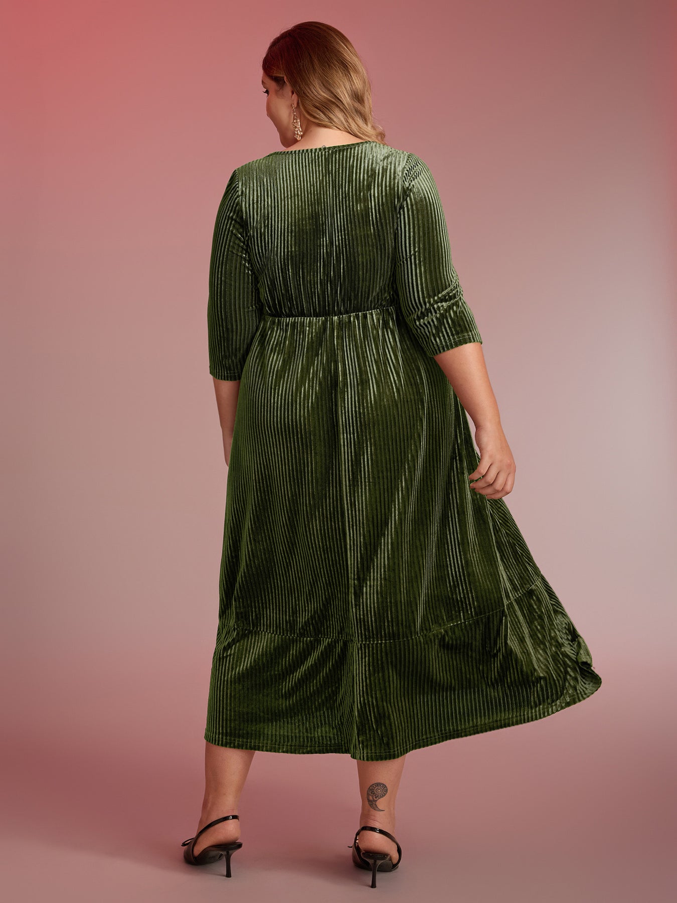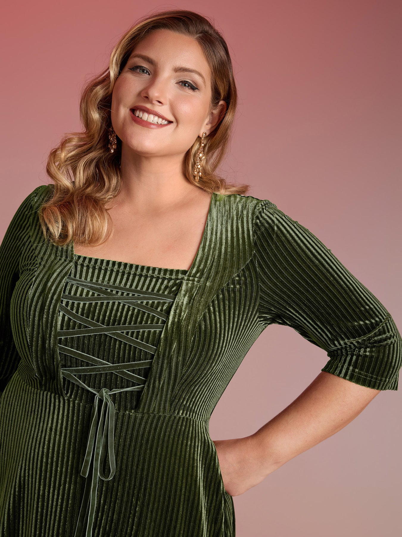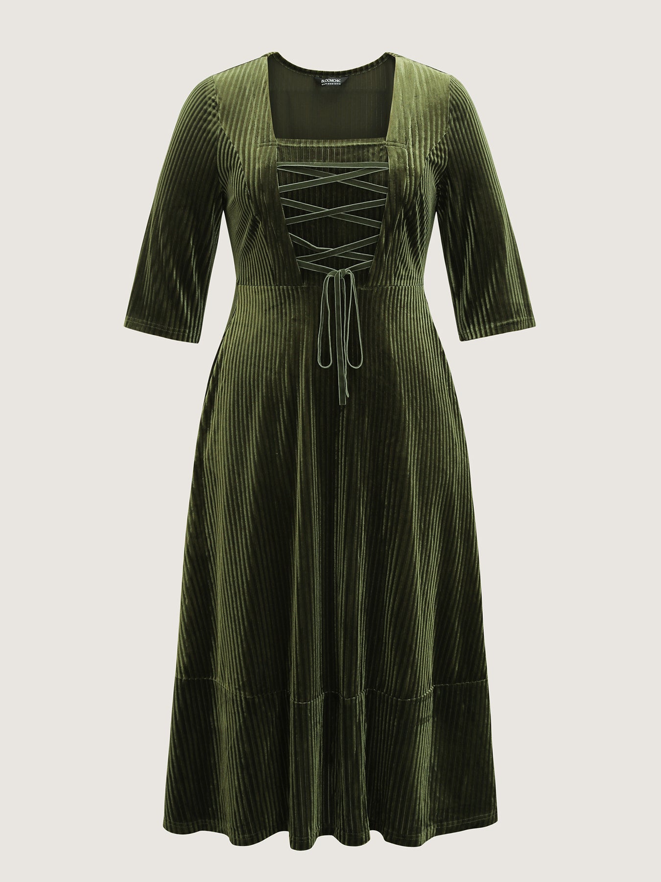 Adjustable Cross-Tie Velvet Stretchy Waist Midi Dress
