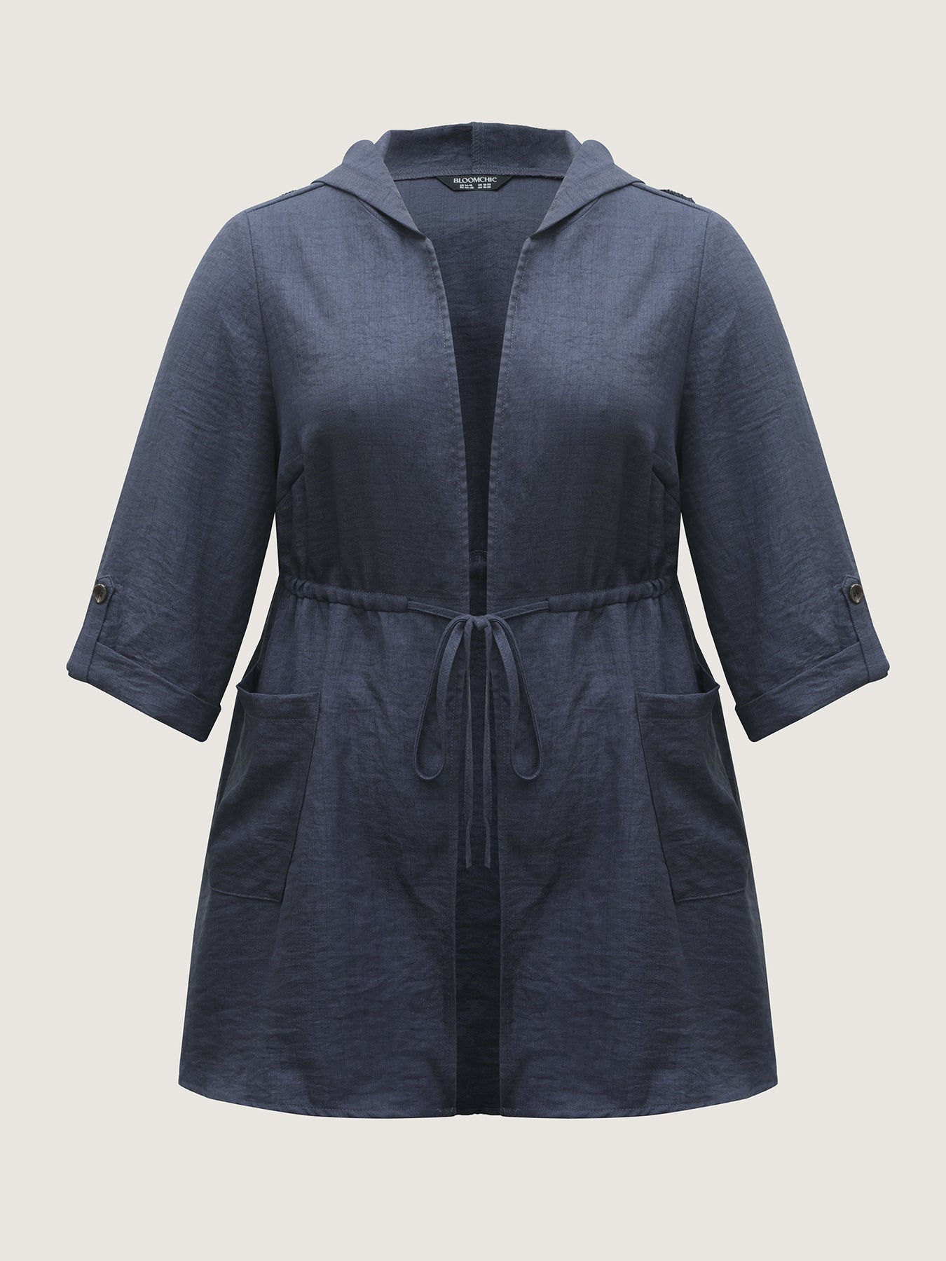 Adjustable Waist-Tie Pockets Hooded Jacket