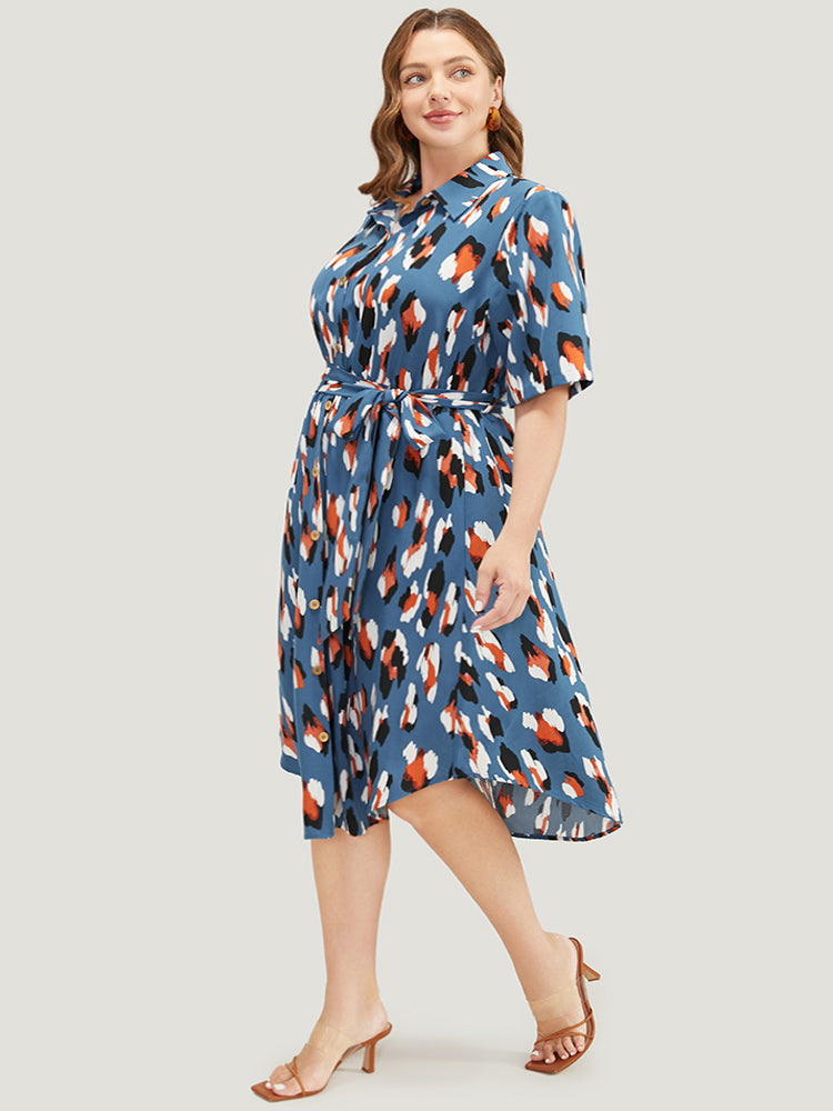 Allover Print Button Detail Pocket Belted Arc Hem Dress