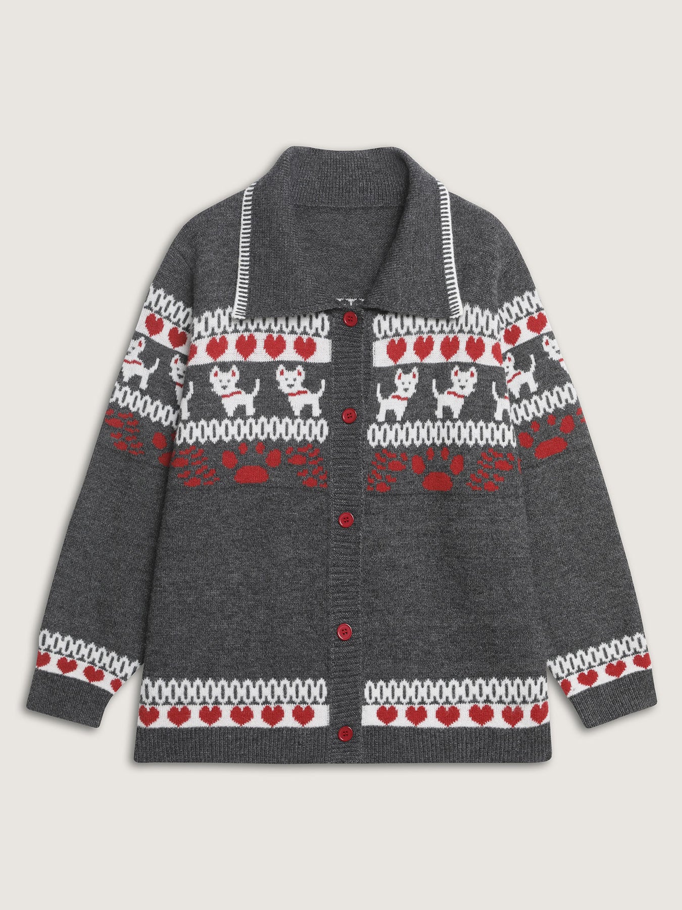Animal Print Jacquard Polo Collar Knit Cardigan