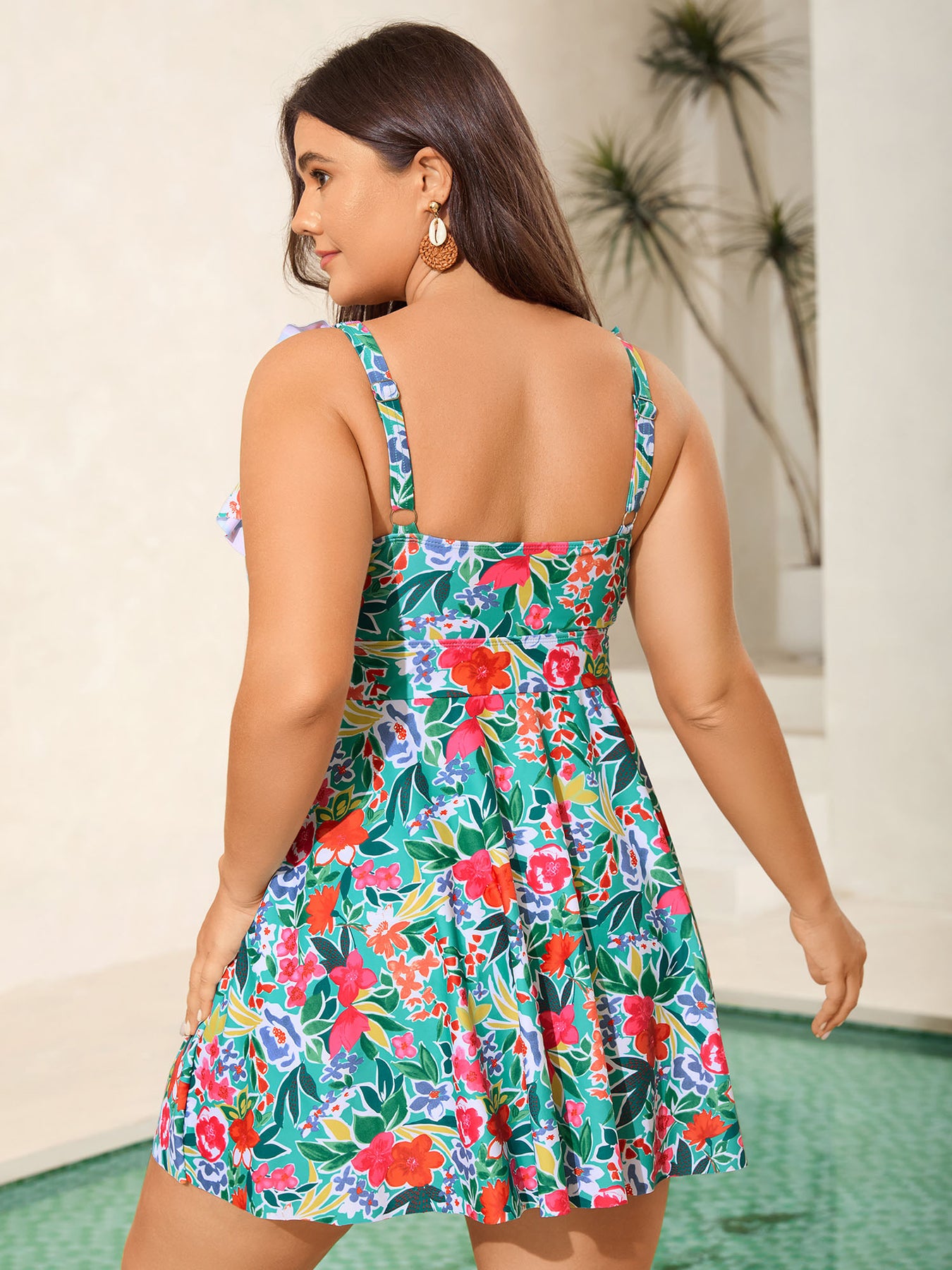 Anti-Float Tie Ruffled Floral Swim Dress