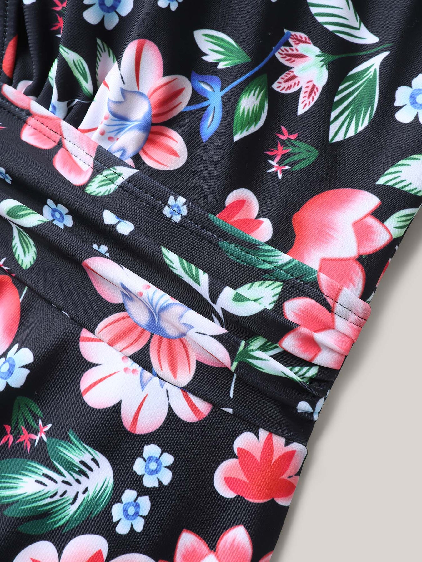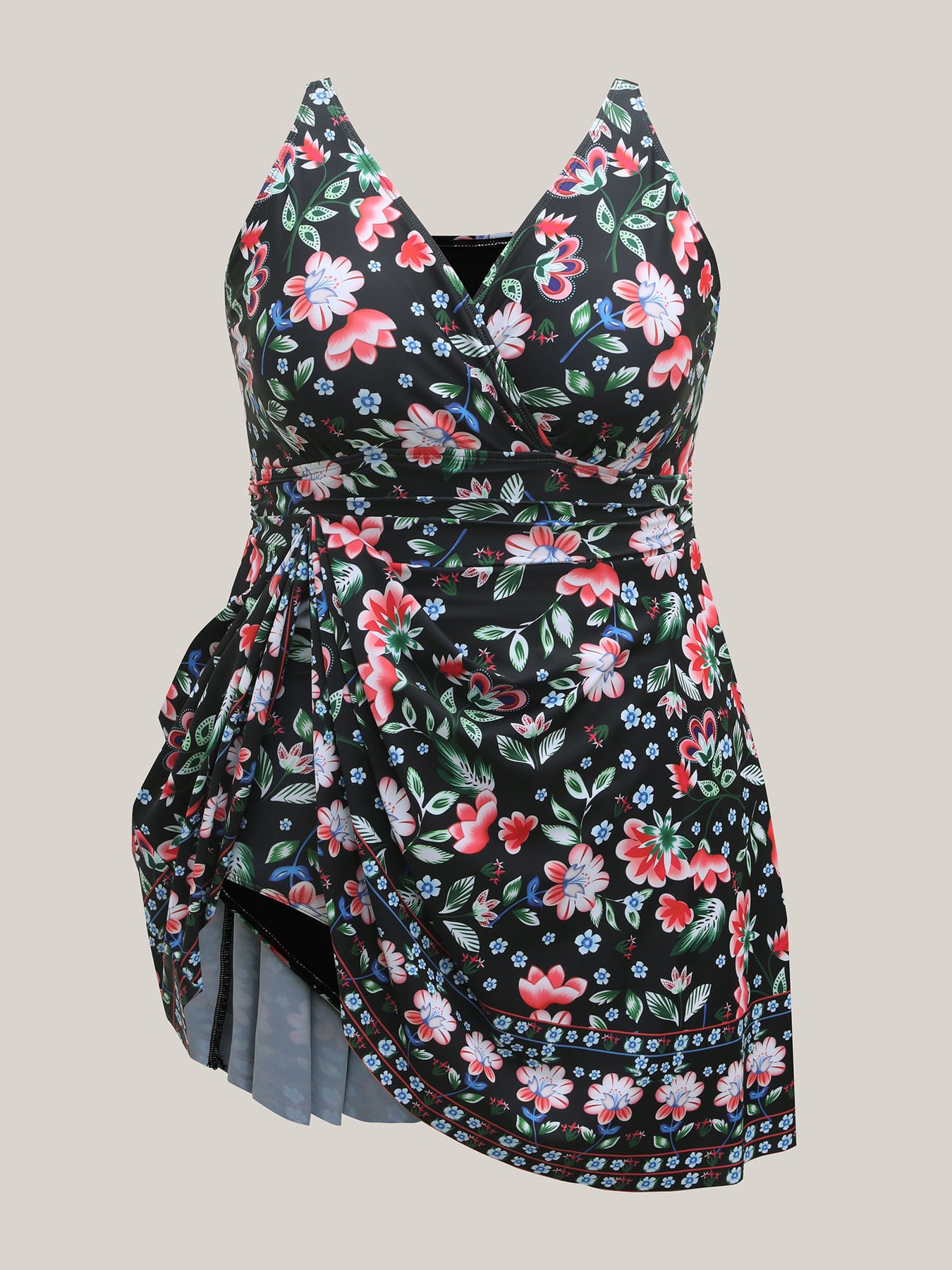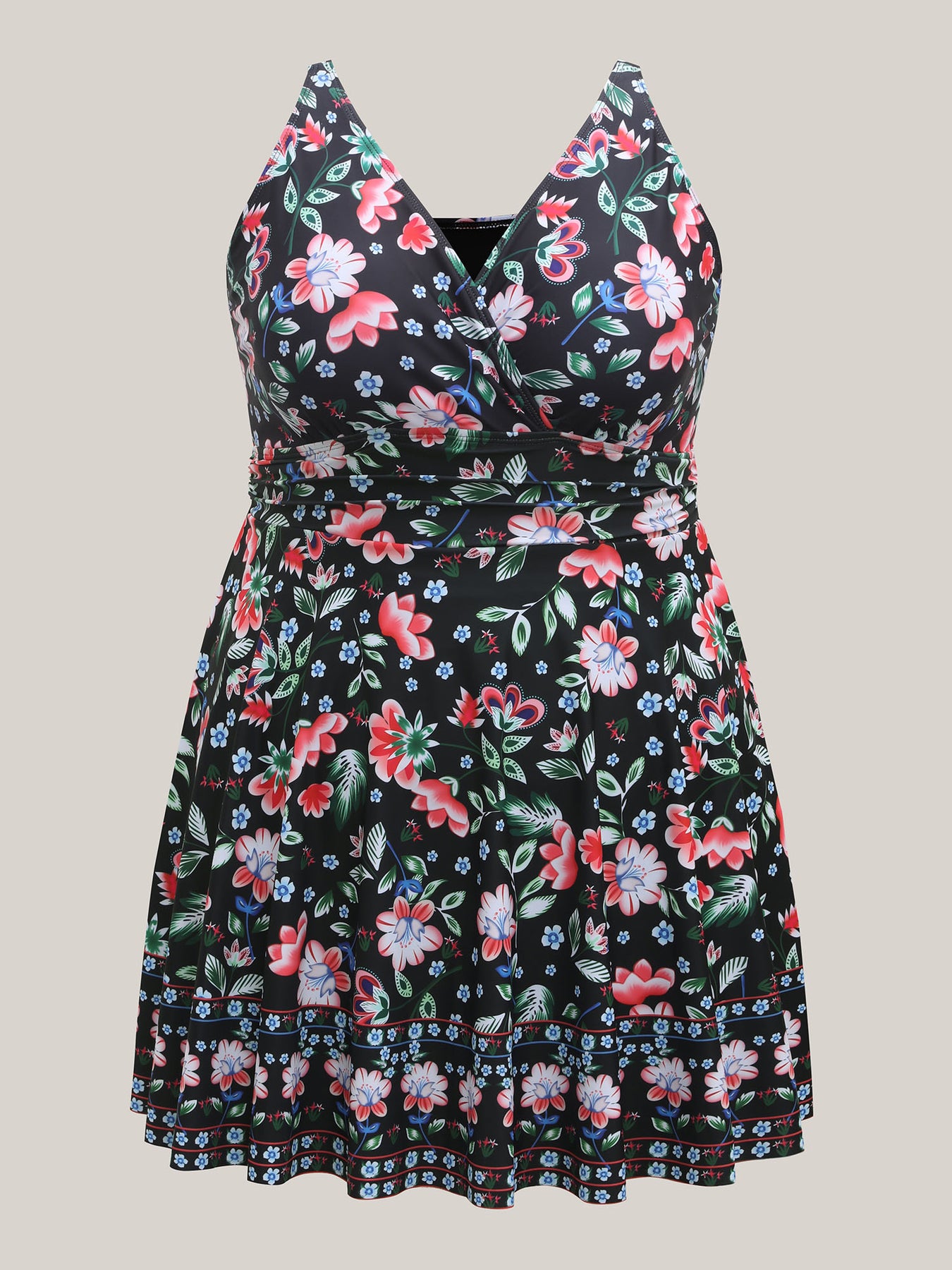 Floral Print Surplice Neck Swim Dress