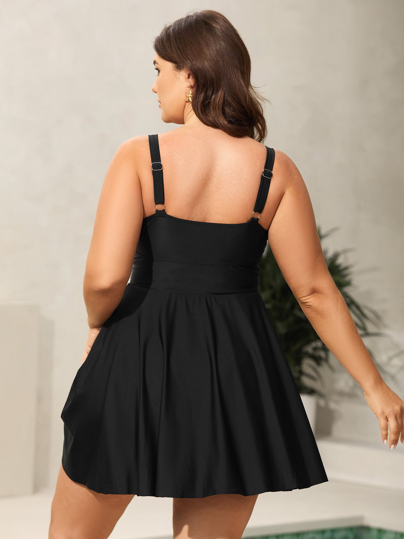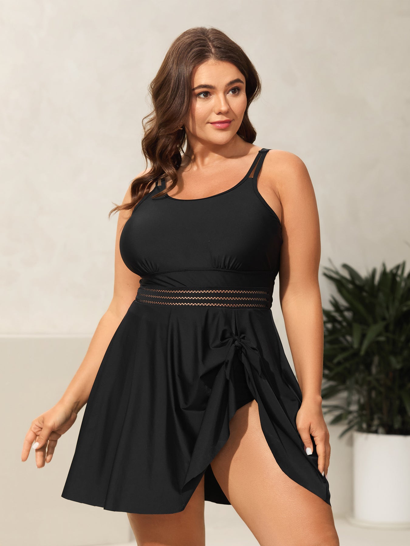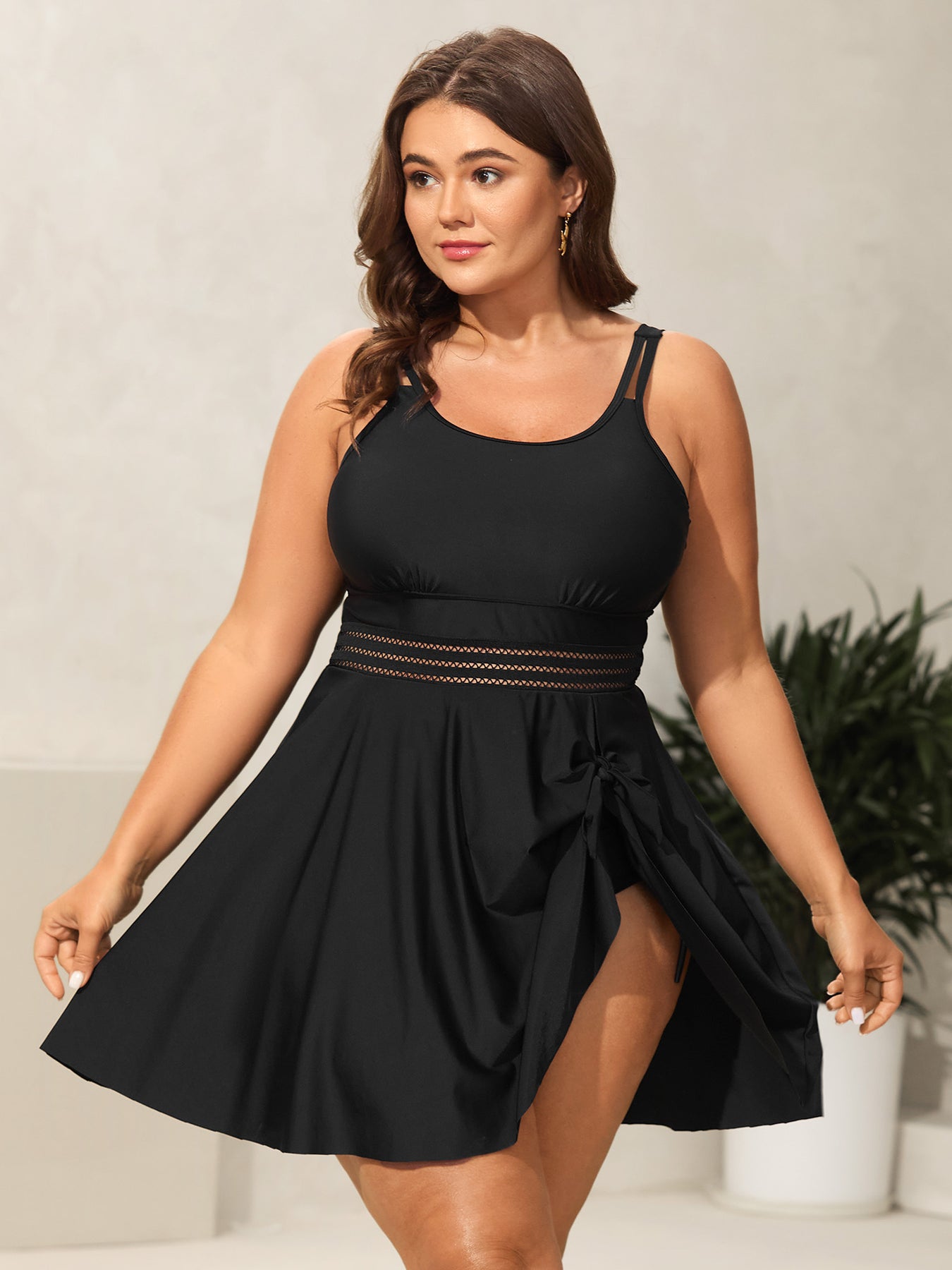 Anti-Float Ties Webbed Split Hem Swim Dress