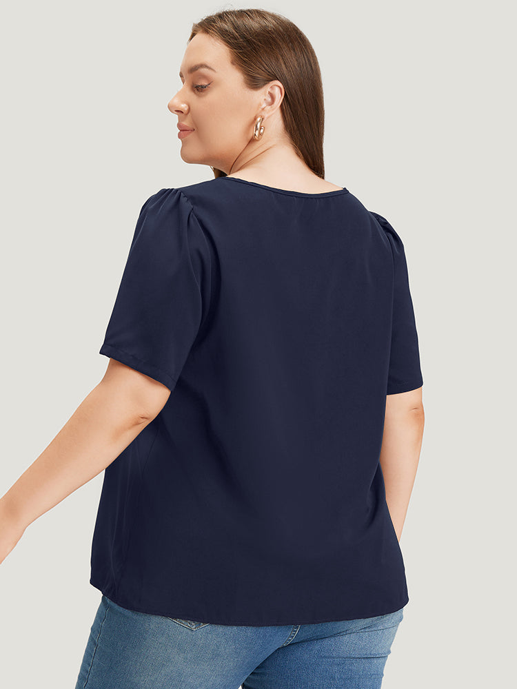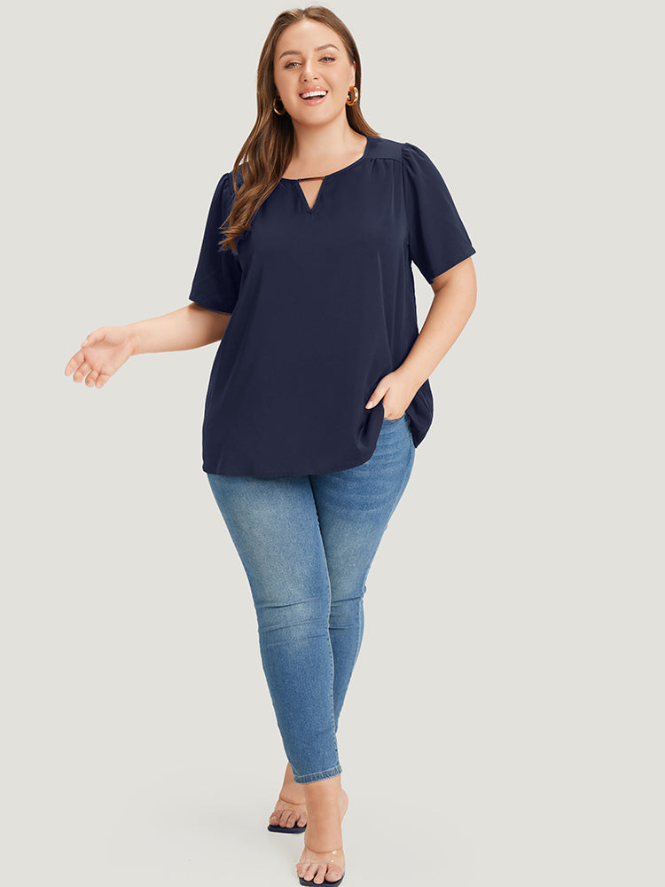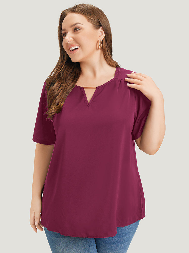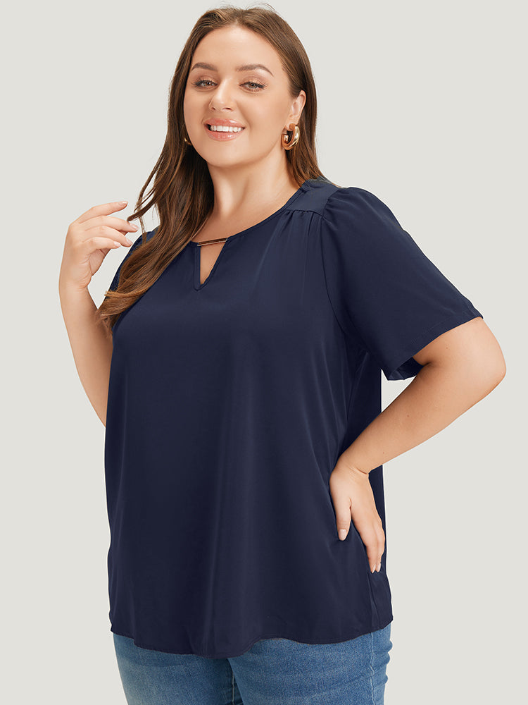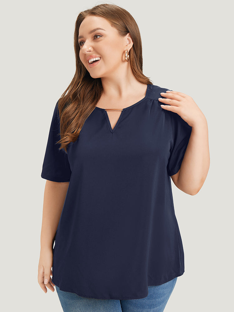 Anti-Wrinkle Plain Metal Detail Keyhole Neck Blouse