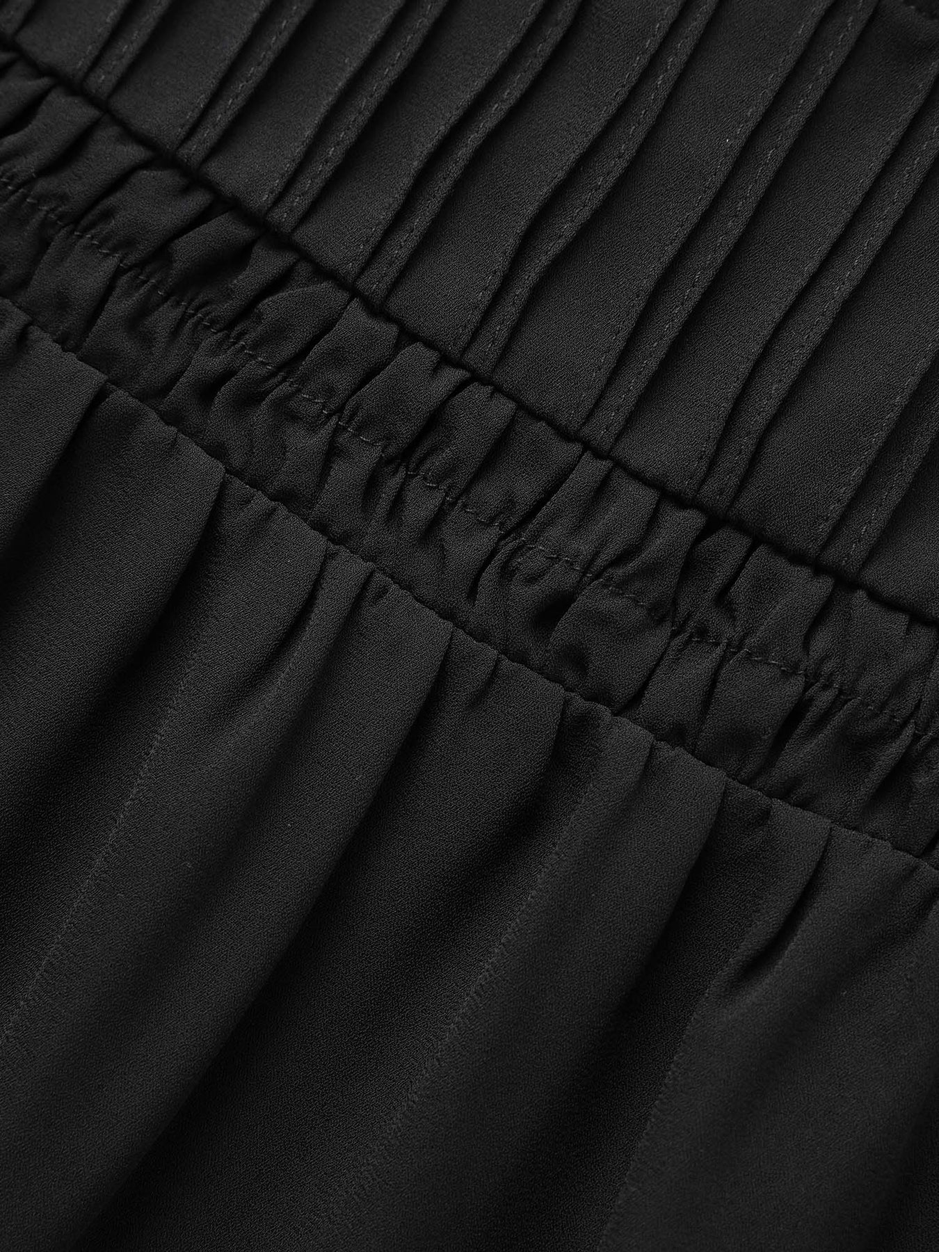 Anti-Wrinkle Shirred Ruffle Sleeve Mesh Frill Trim Blouse
