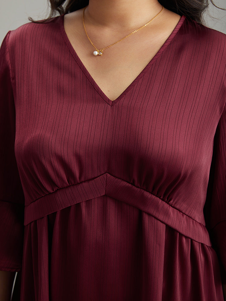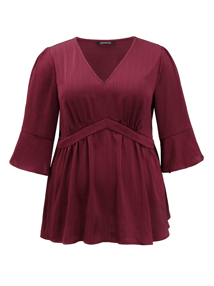 Anti-Wrinkle V Neck Gathered Ruffle Sleeve Blouse
