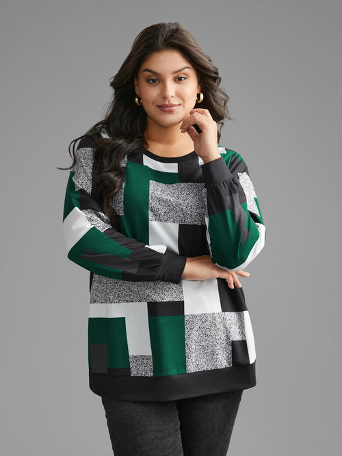 Asymmetrical Colorblock Contrast Slit Hem Sweatshirt