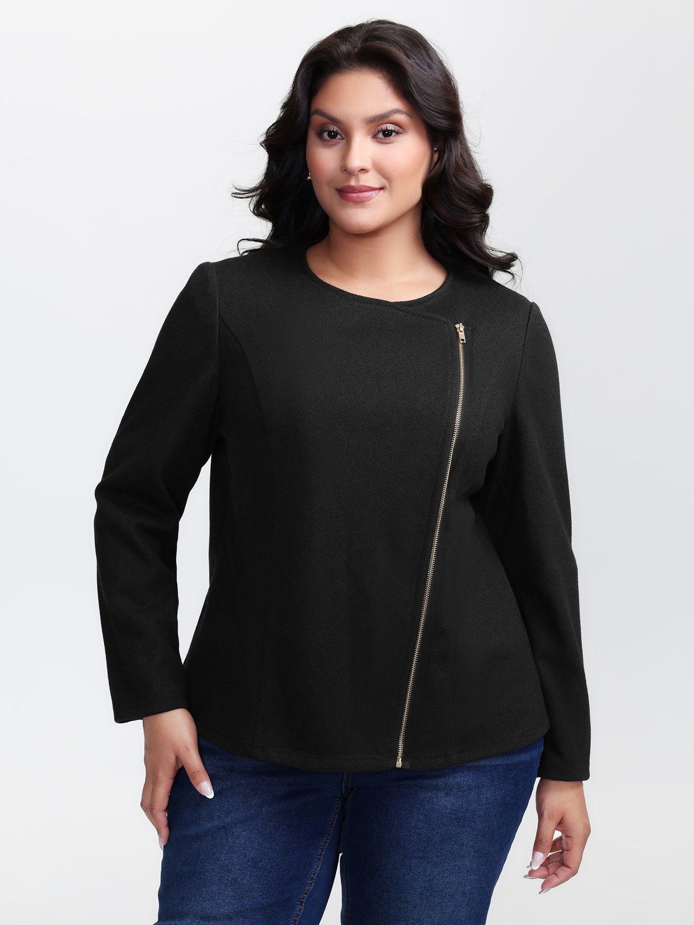 Asymmetrical Zipper Solid Jacket