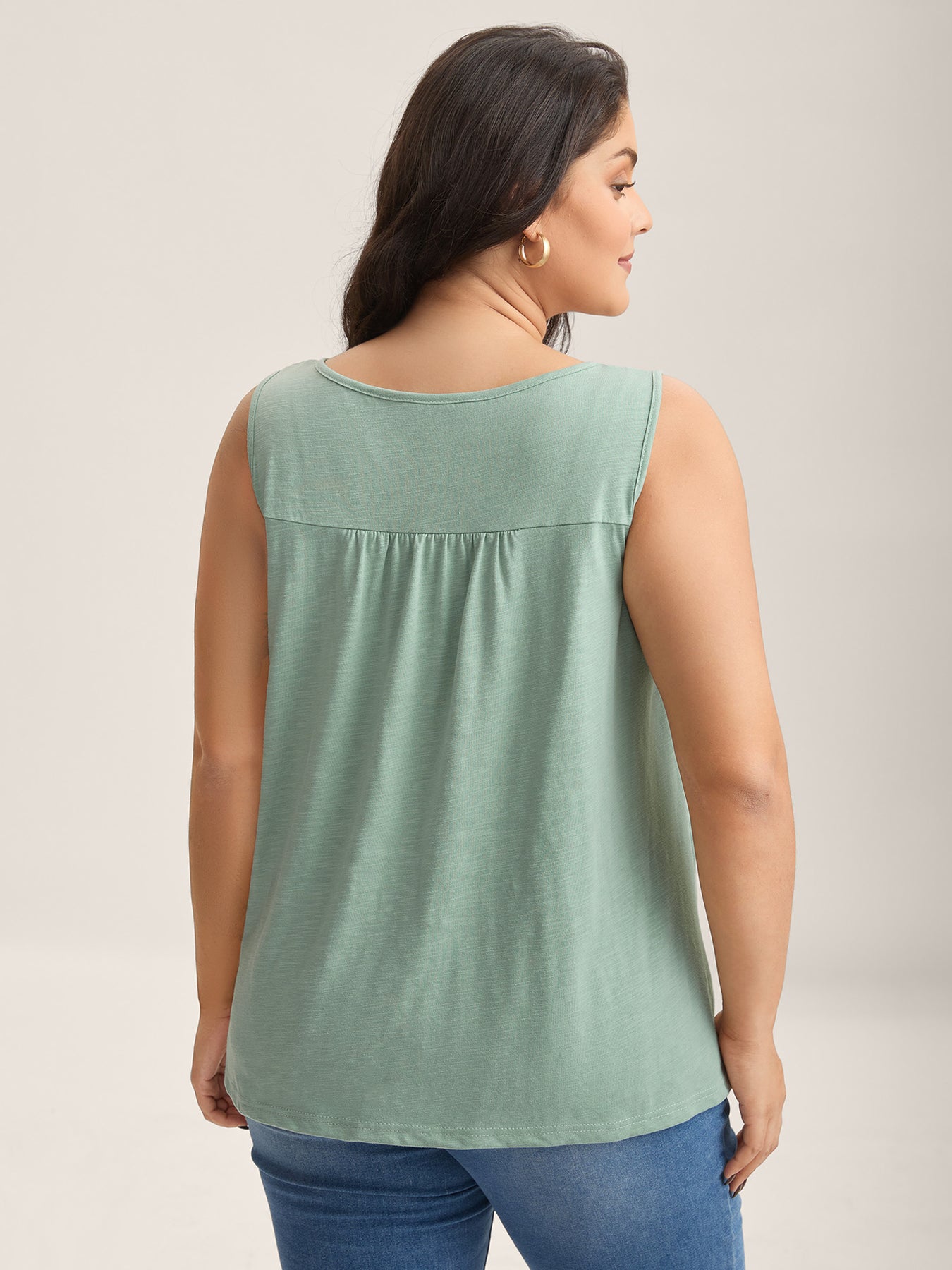 Bamboo Cotton Stretchy Pleated Tank Top