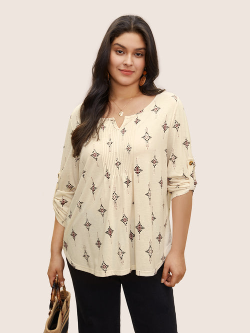 Bandana Print Notched Pleated Tab Sleeve T-shirt