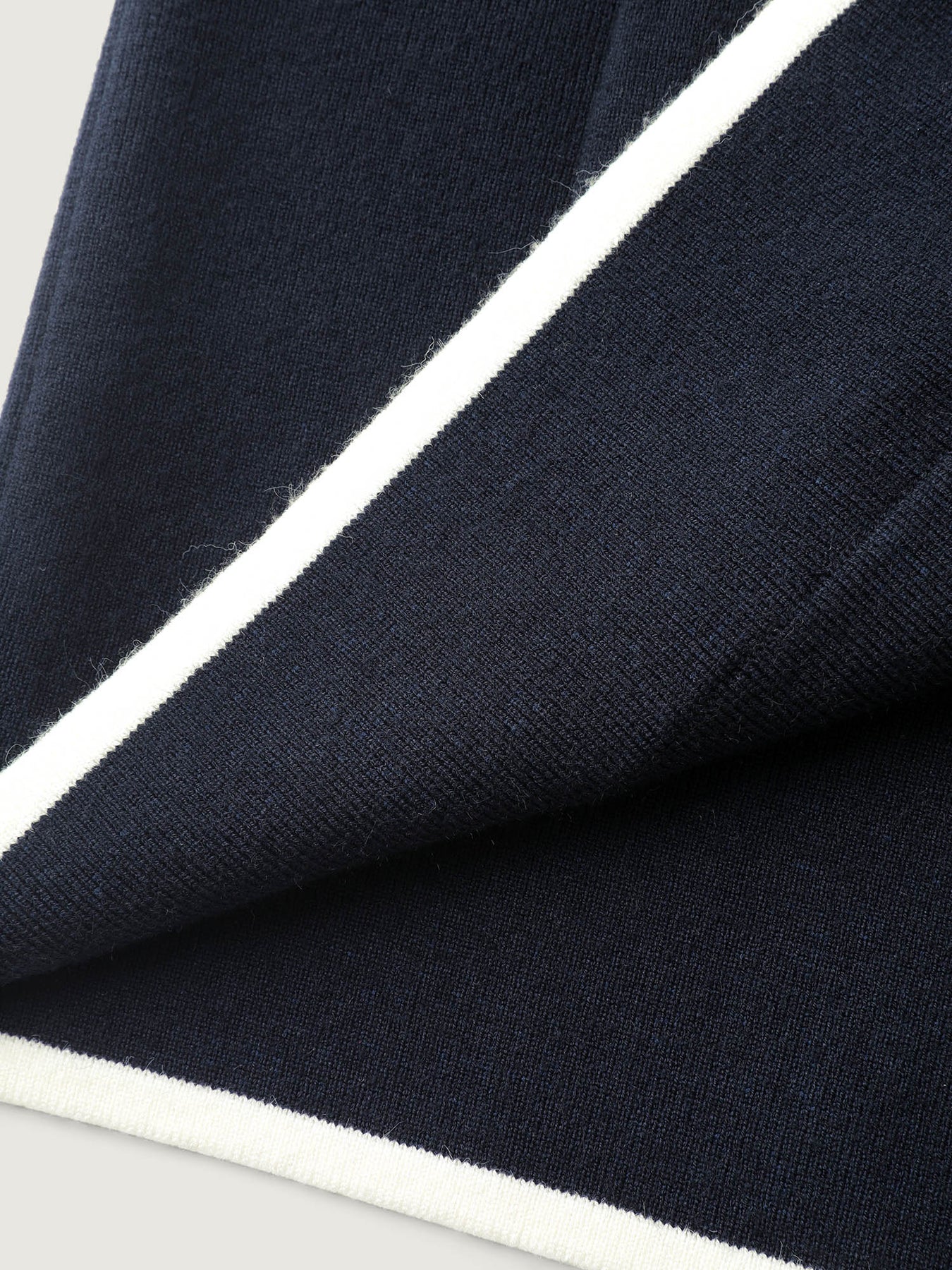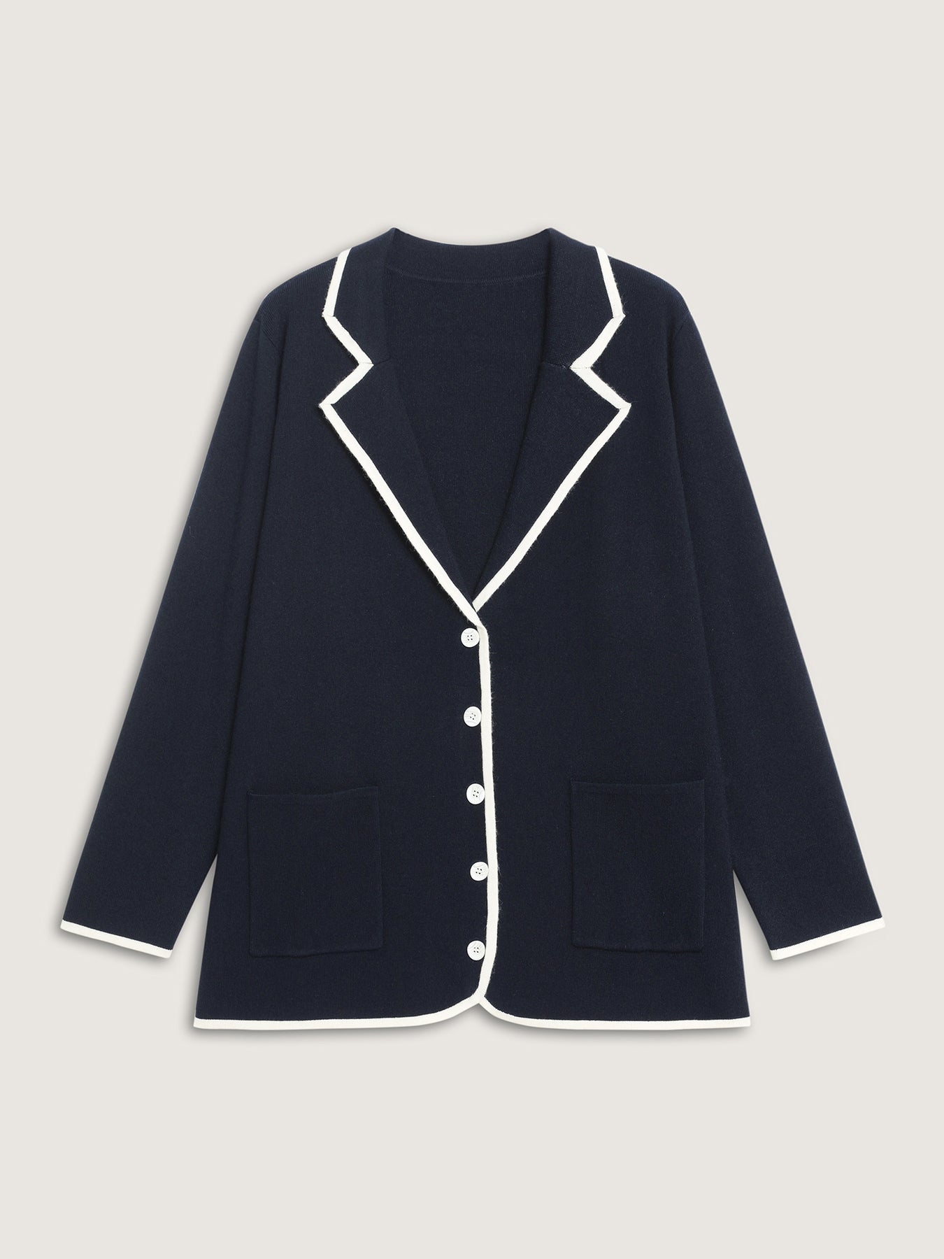 Blazer Collar Pockets Color Contrast Knit Cardigan
