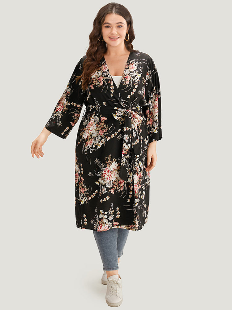 Boho Print Belted Open Front Kimono
