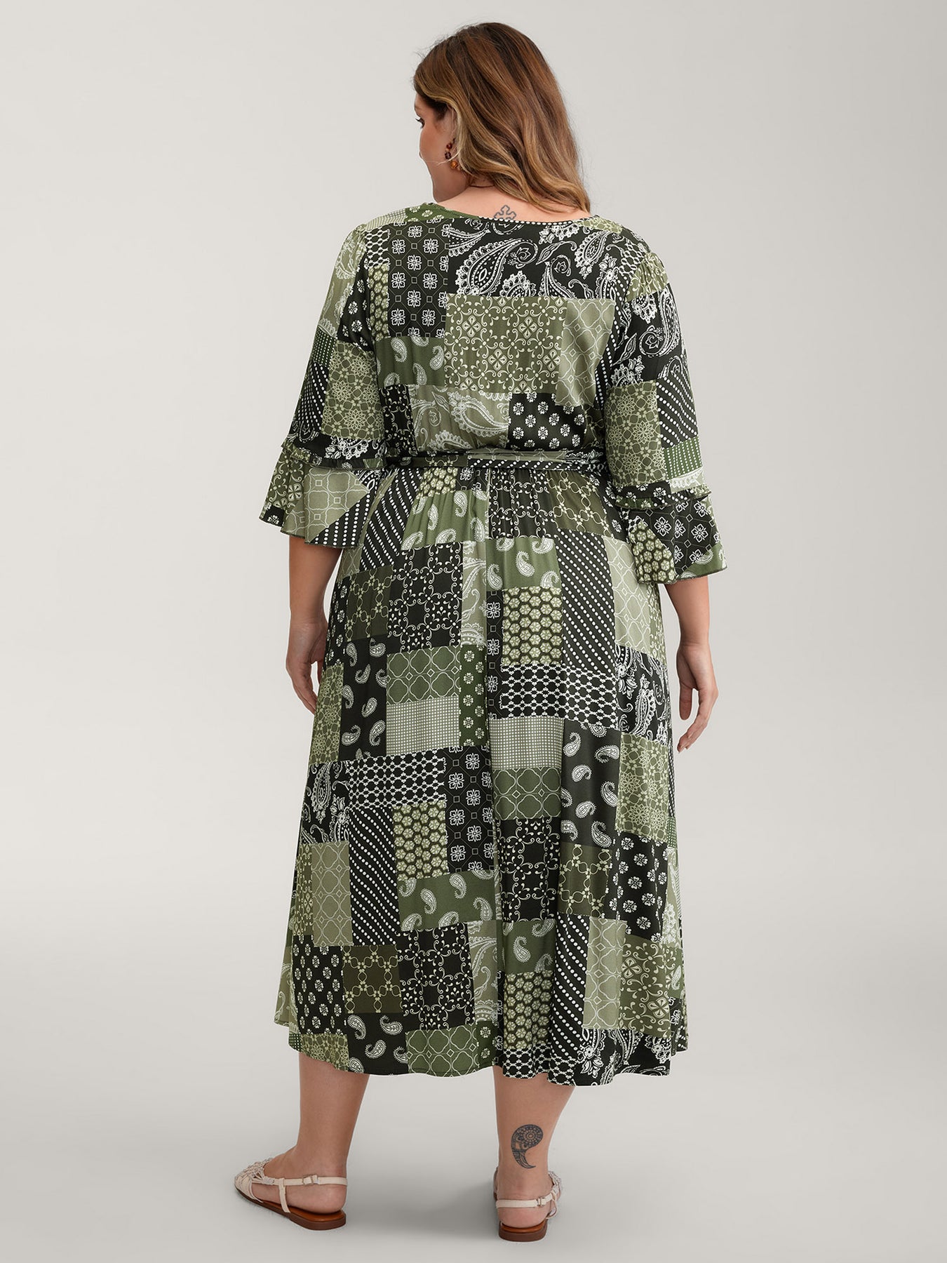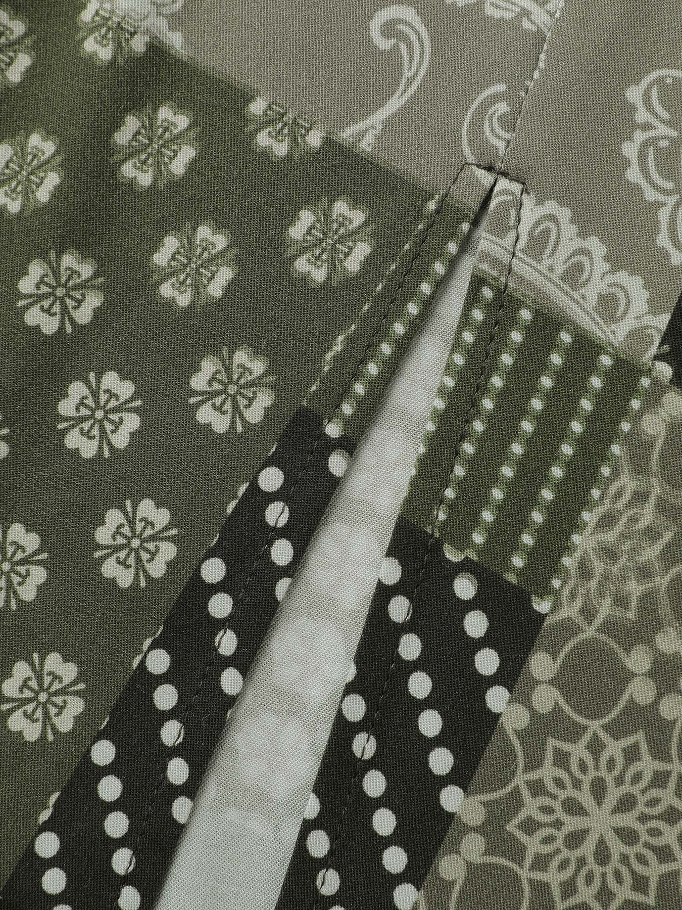 Boho Print Wrap Neckline Belted Maxi Dress