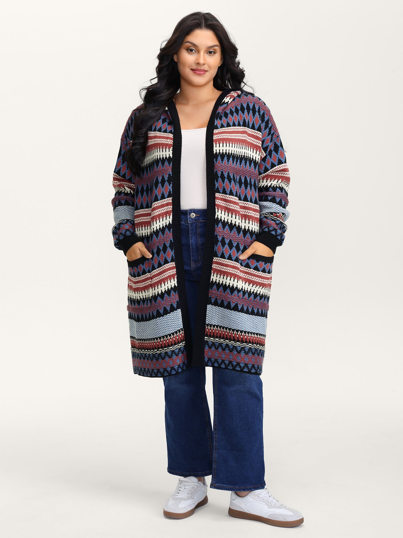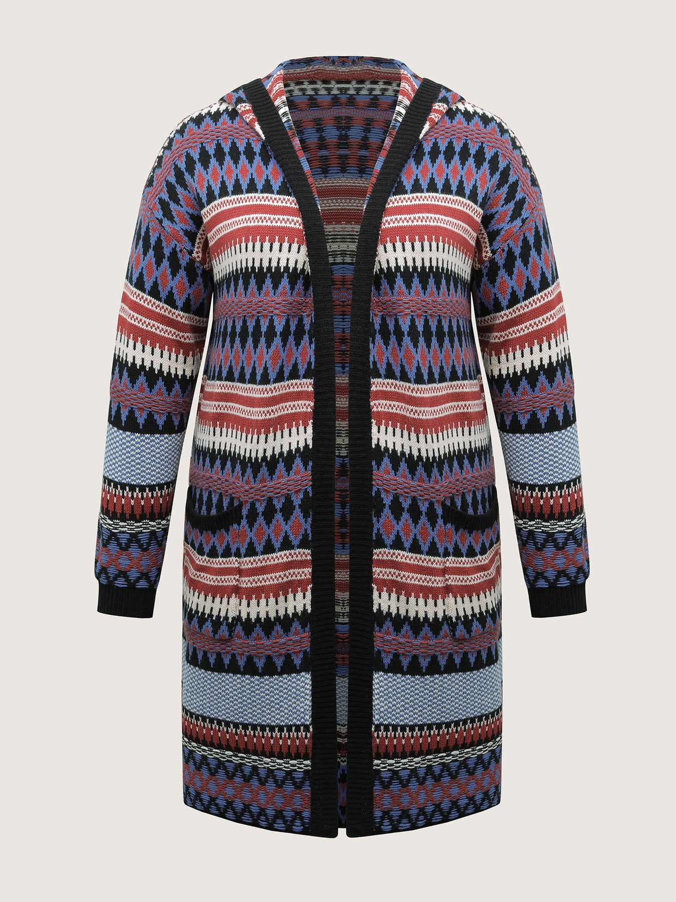 Boho Stripe Pockets Hooded Long Knit Cardigan