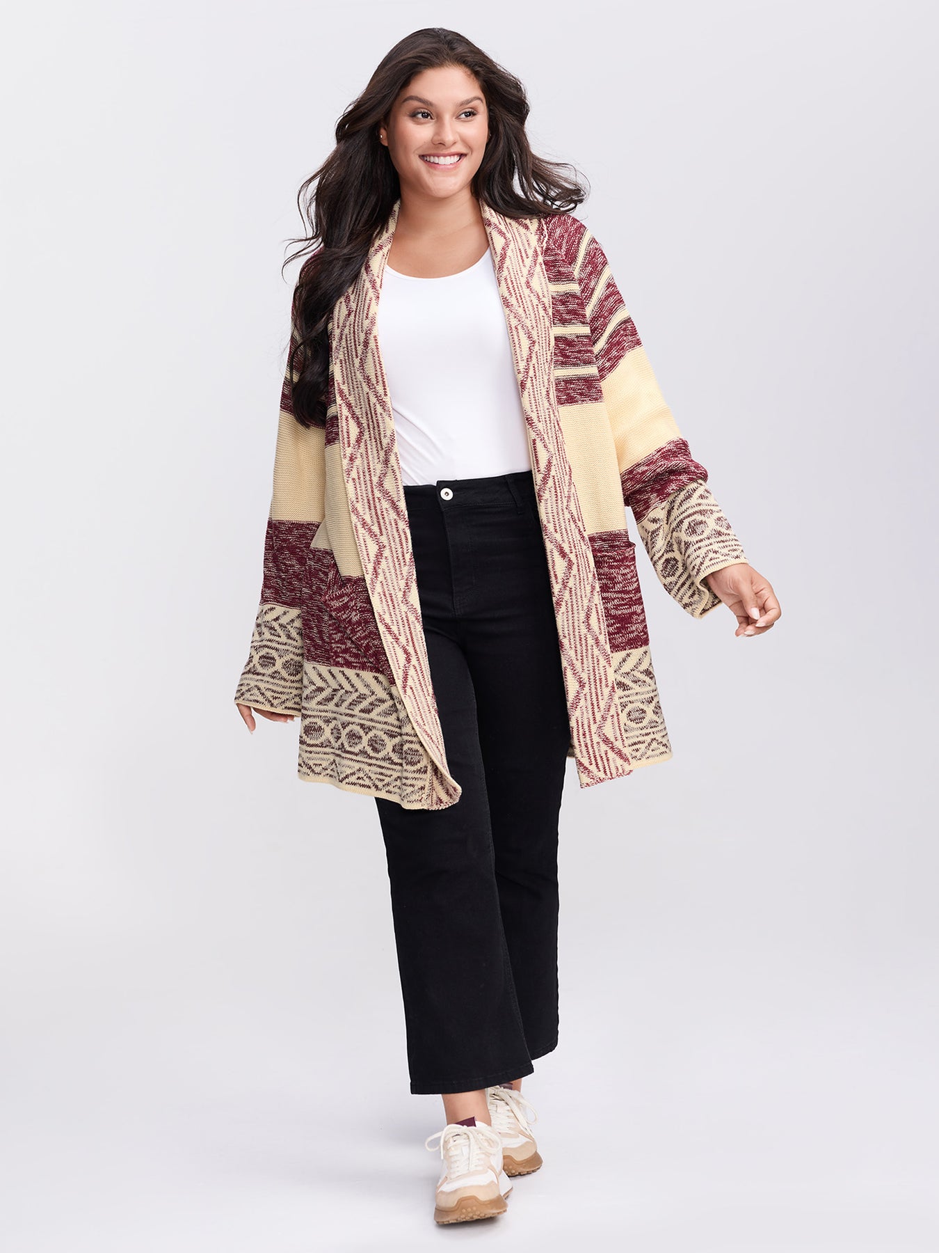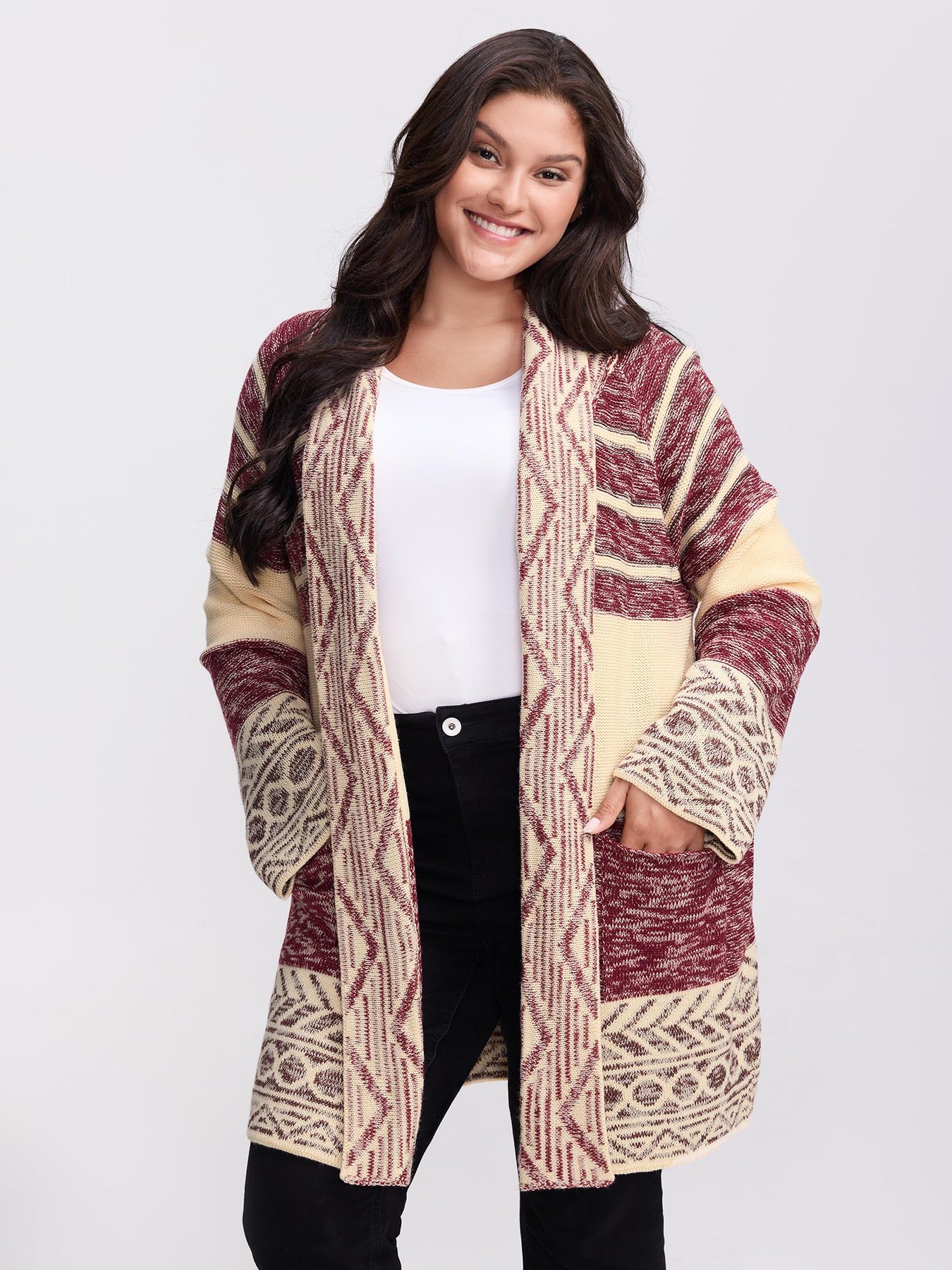 Boho Striped Jacquard Open-Front Knit Cardigan