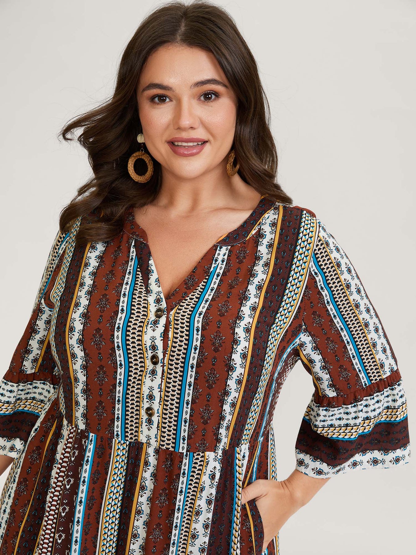 Boho Stripes Tiered Midi Dress