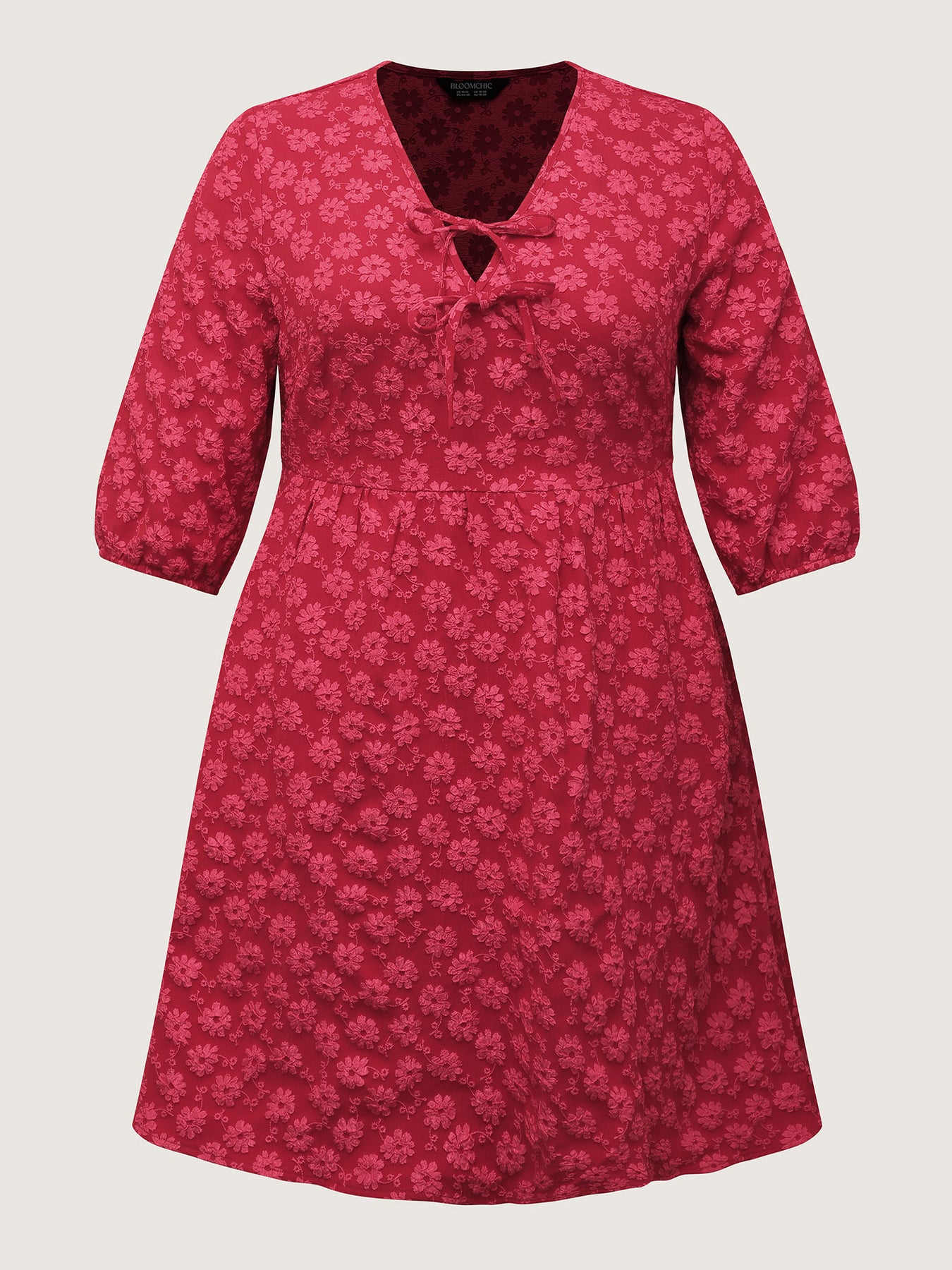 Bowknot Jacquard Stretchy Waist Knee-Length Dress