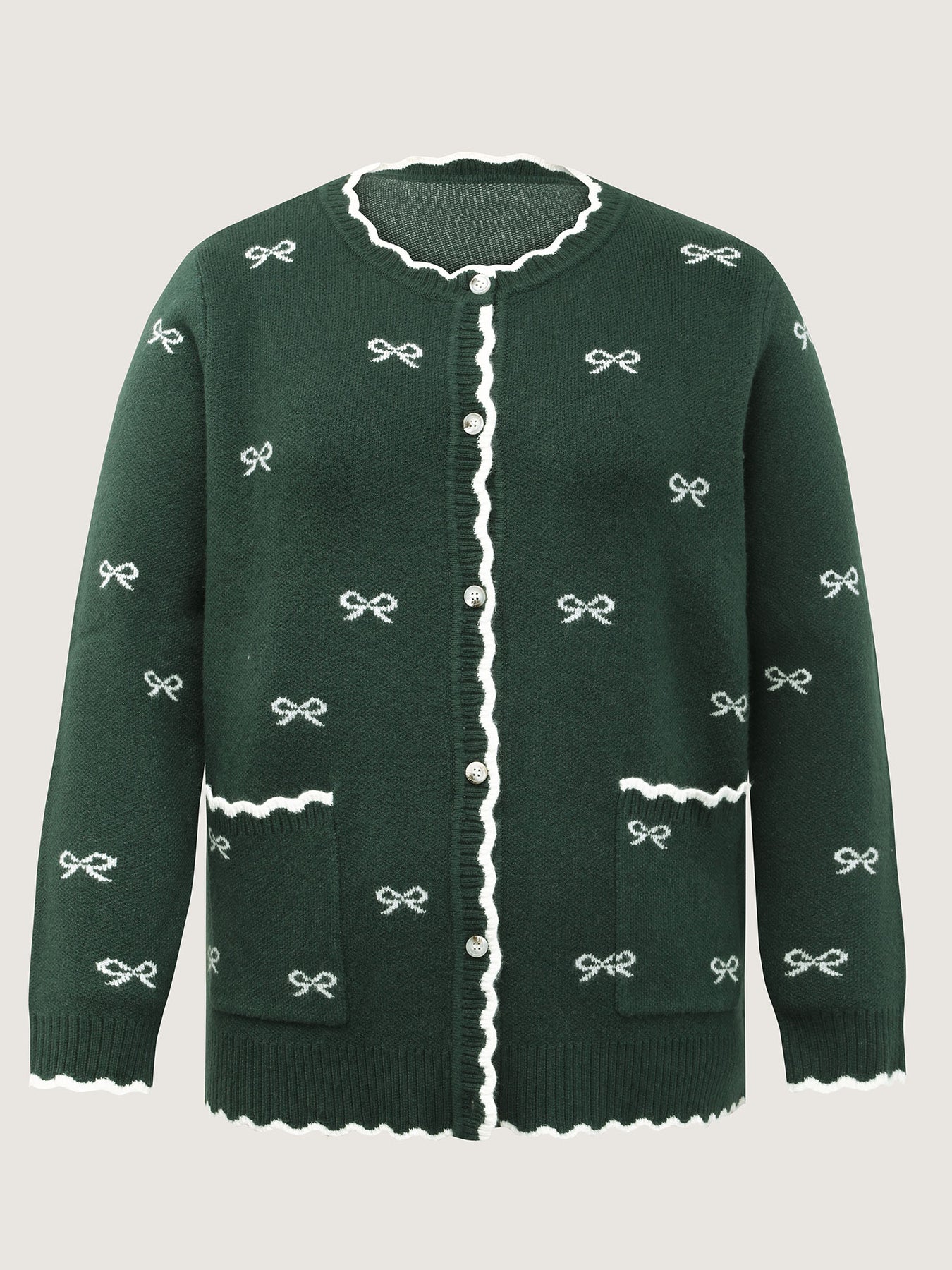 Bowknot Jacquard Wavy Edge Knit Cardigan