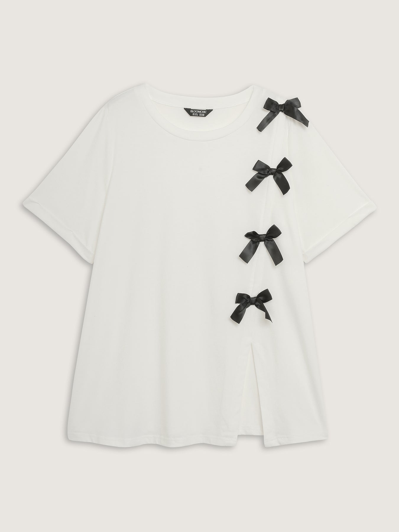 Bowknot Slit Round Neck T-Shirt