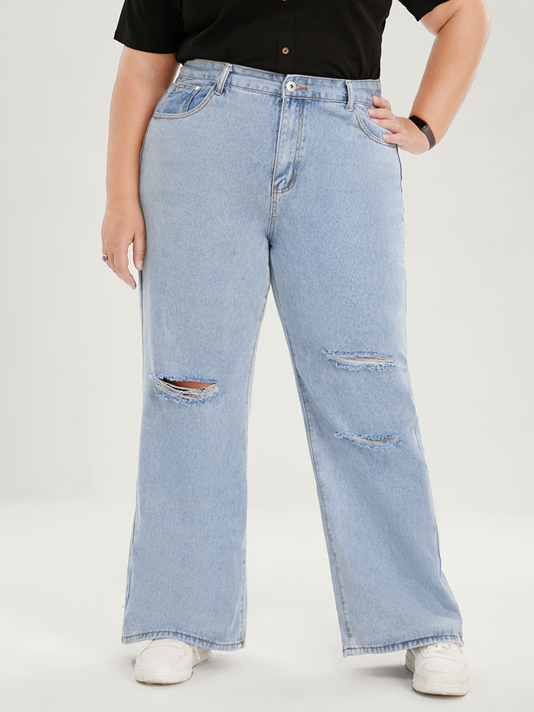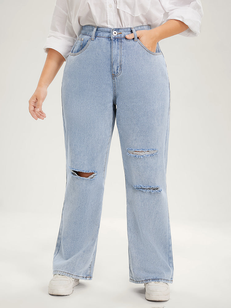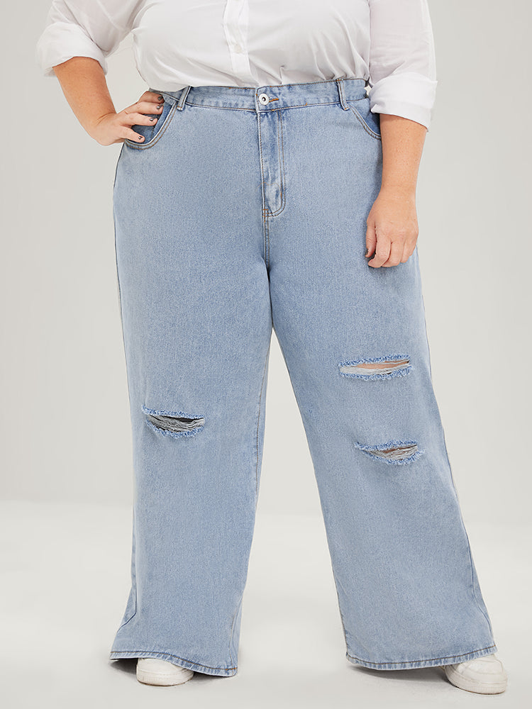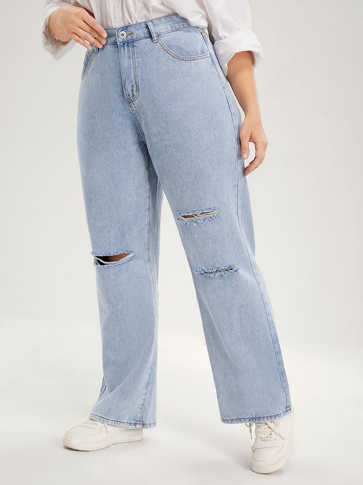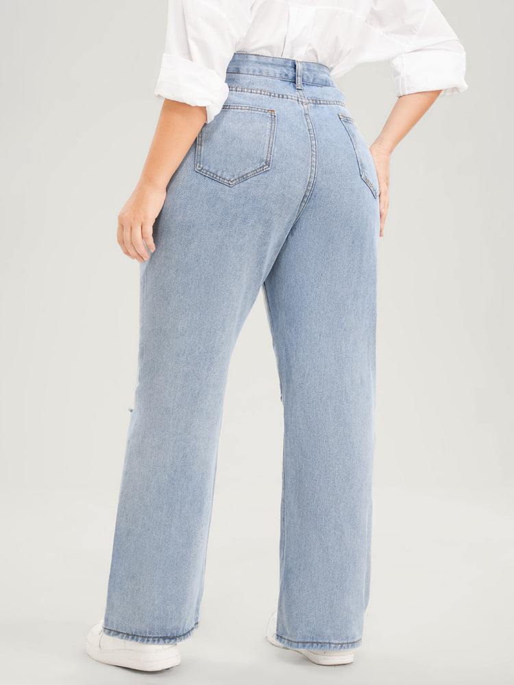 Boyfriend Wide Leg Non Stretchy High Rise Light Wash Distressed Jeans