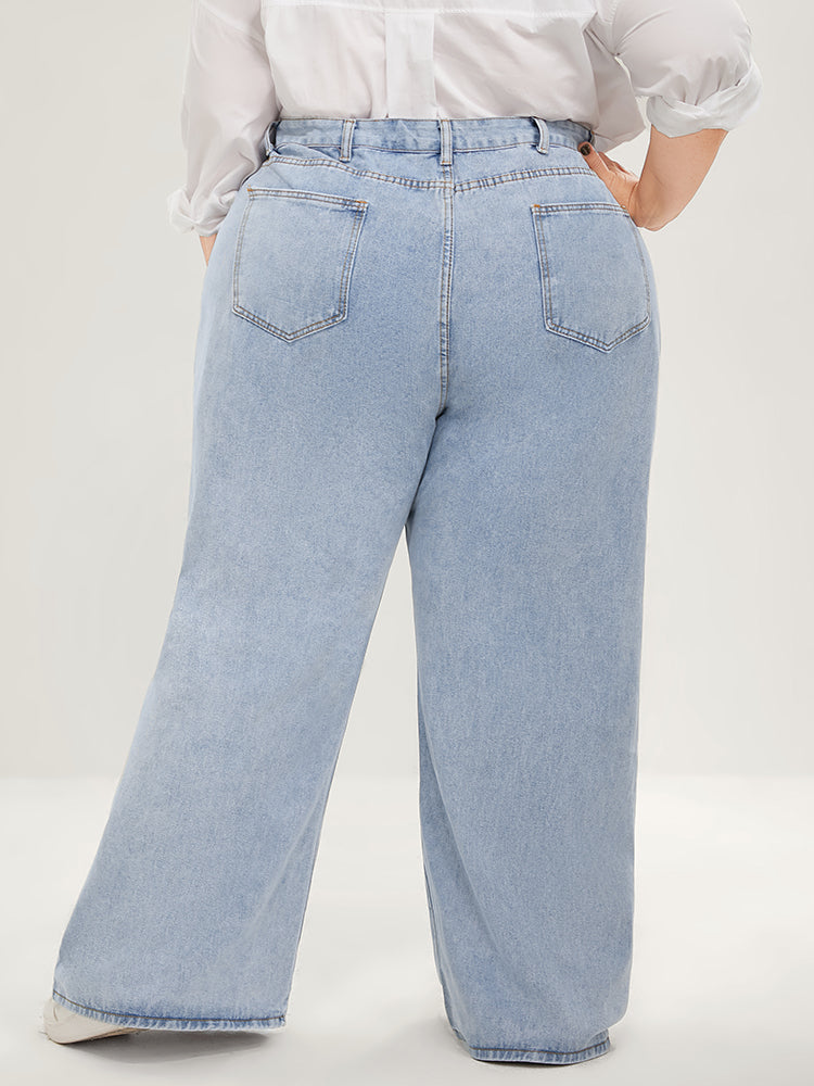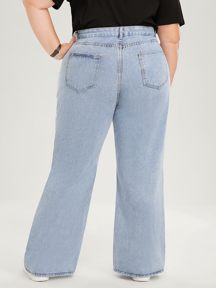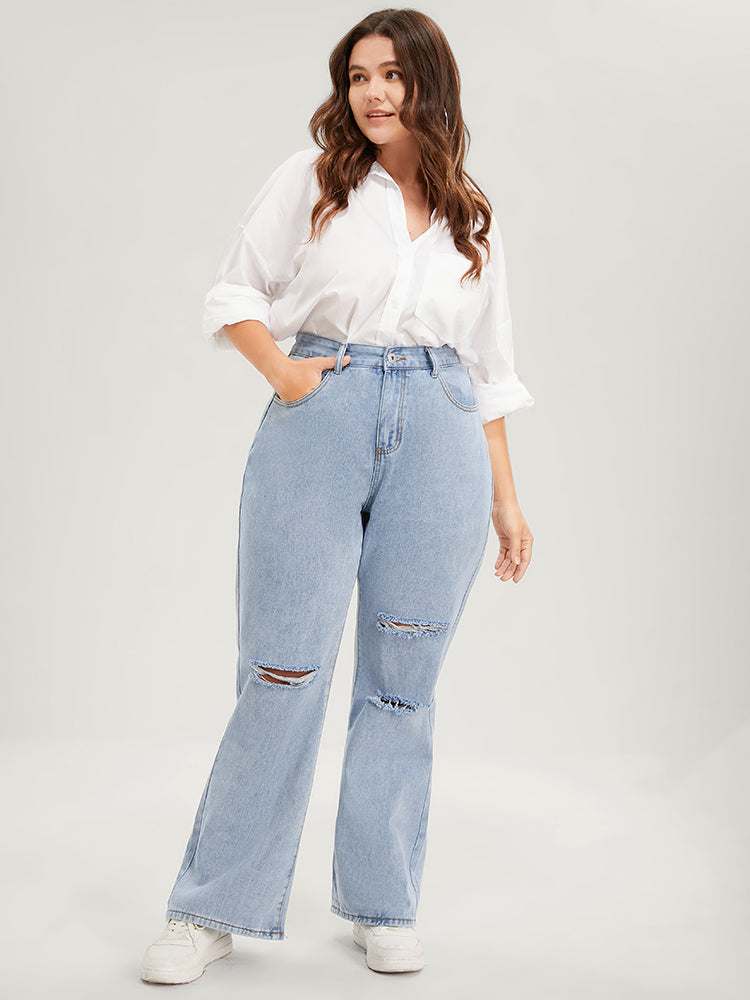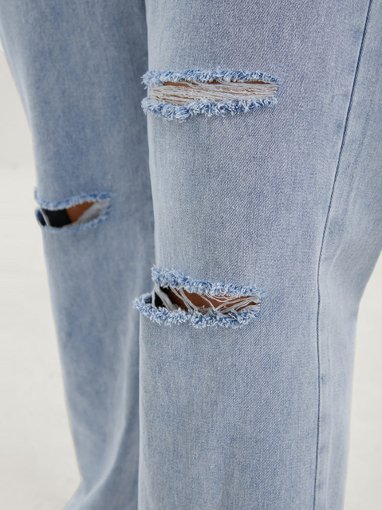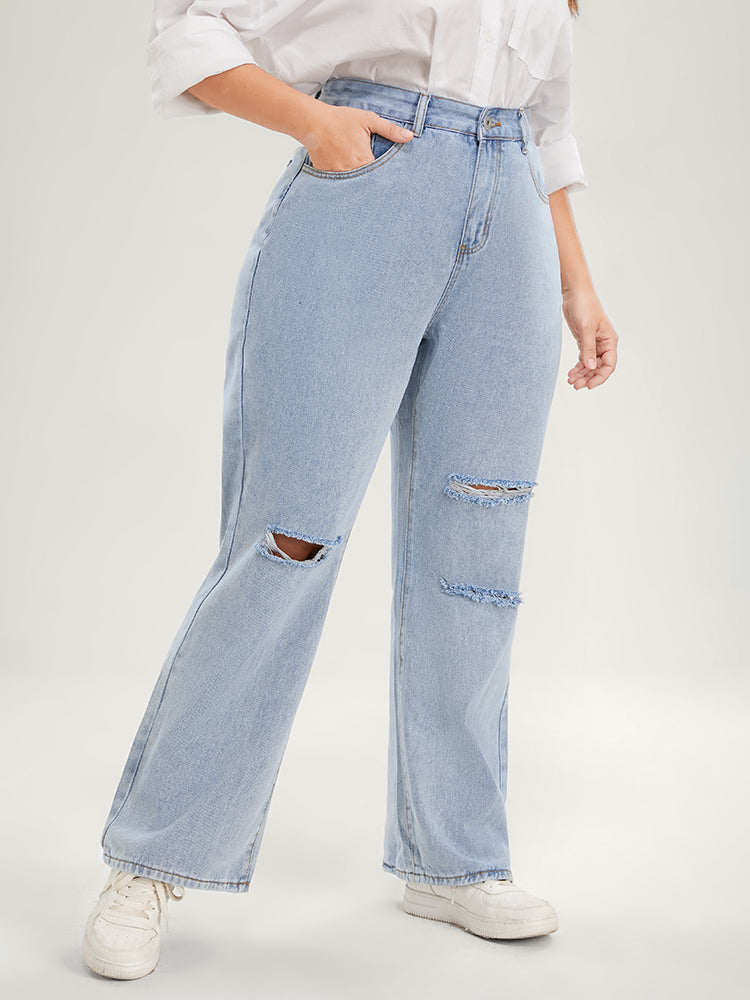 Boyfriend Wide Leg Non Stretchy High Rise Light Wash Distressed Jeans