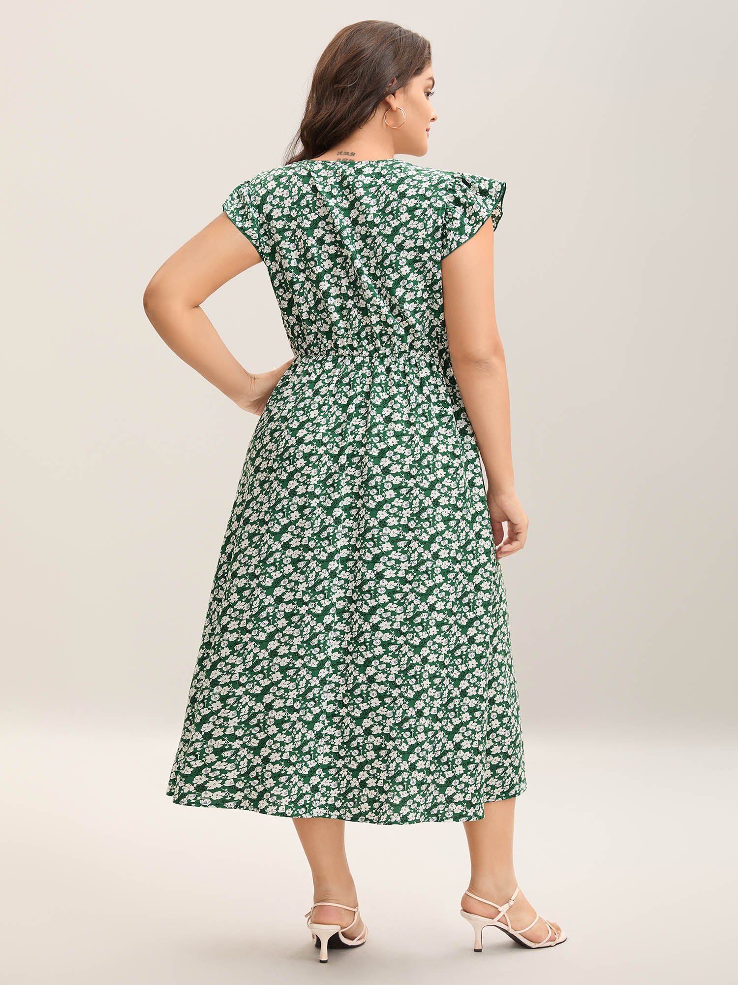 Breezy Floral Print Flutter Sleeve Midi Dress