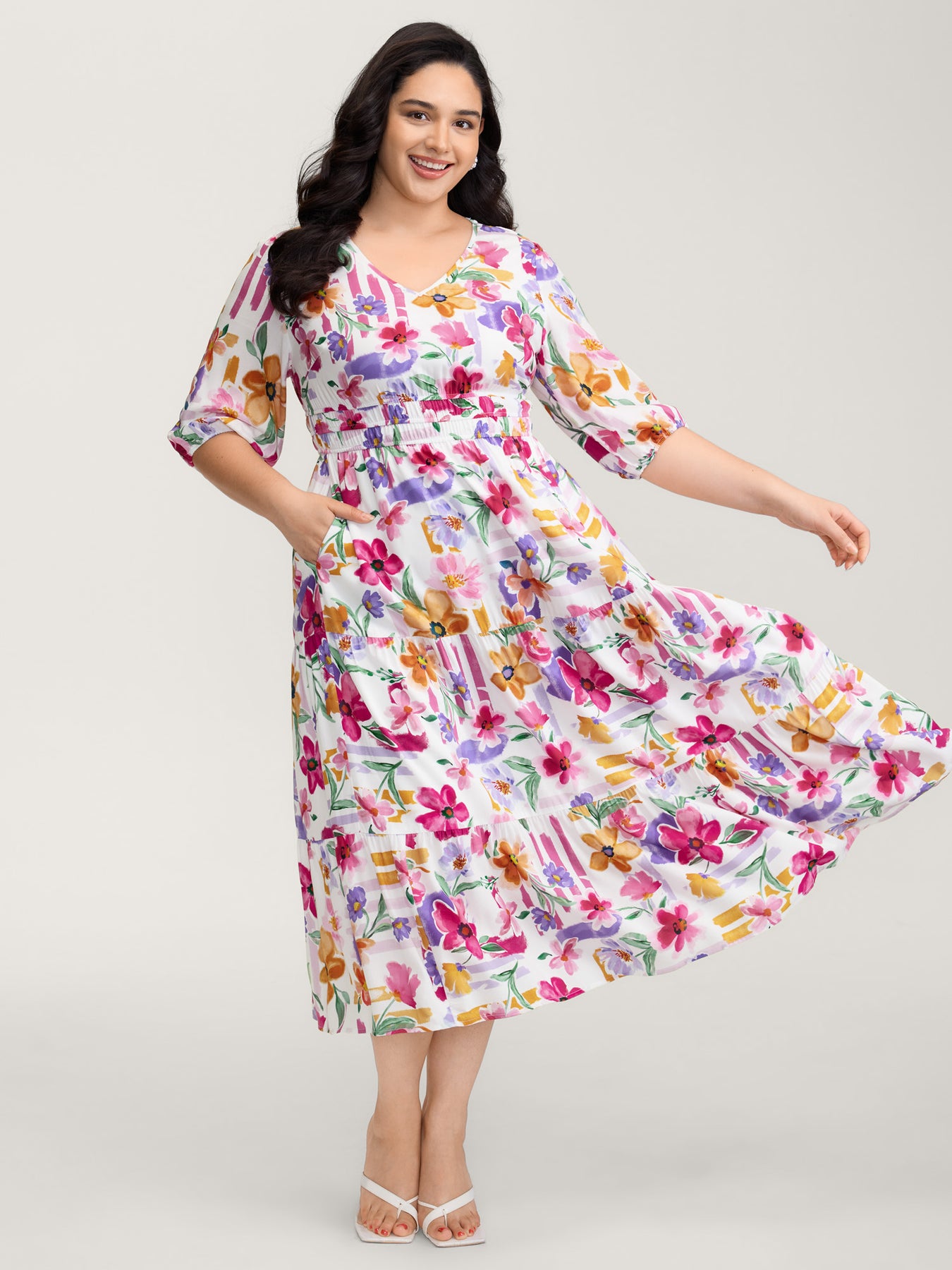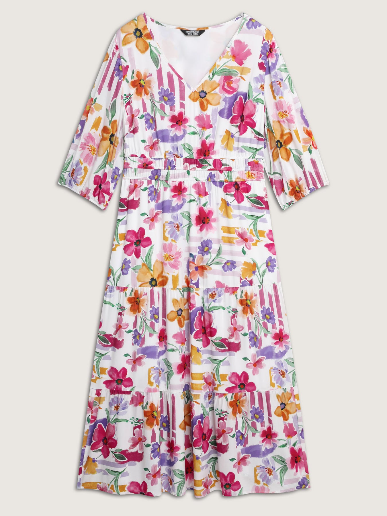 Bright Floral Print Pleated Waist Maxi Dress