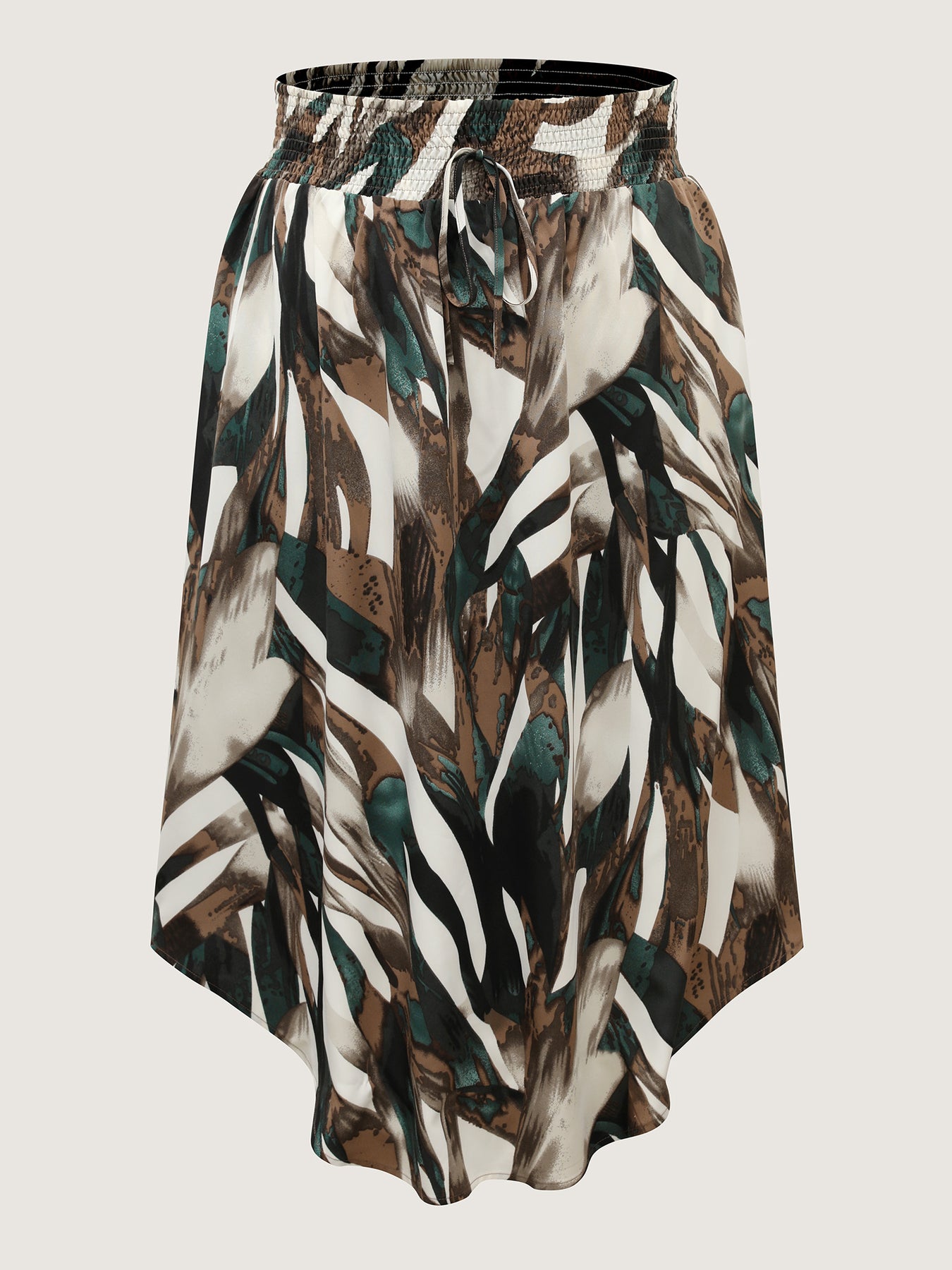Brushstroke Print Stretchy Waist Midi Skirt