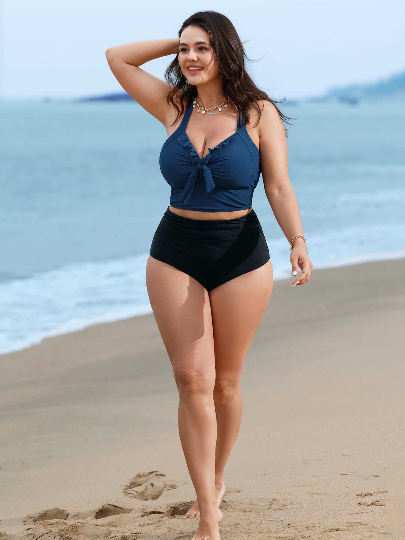 Bust Knot-Tie Ruffle Trim Supportive Swim Top
