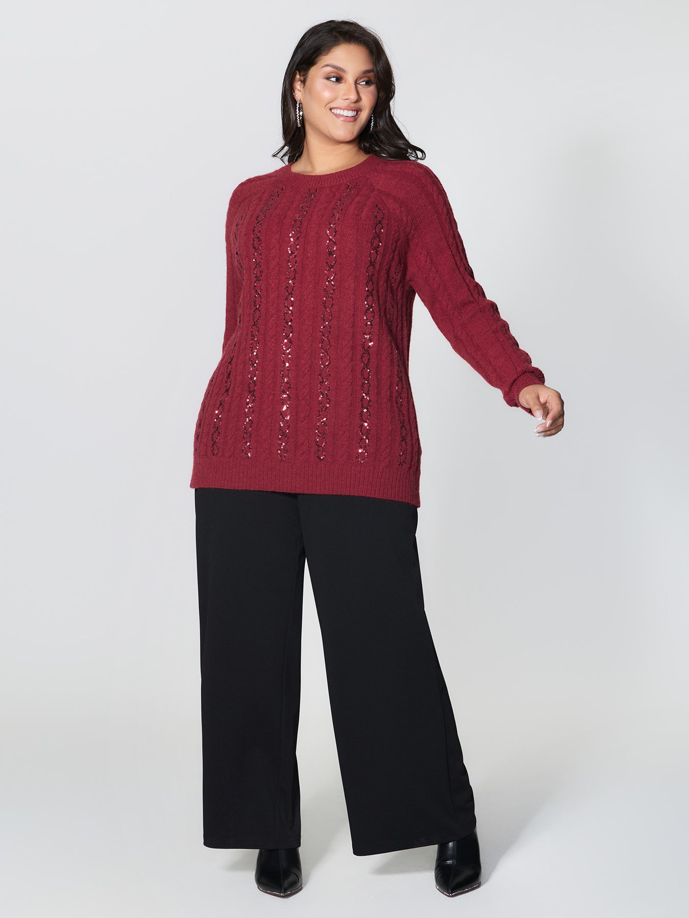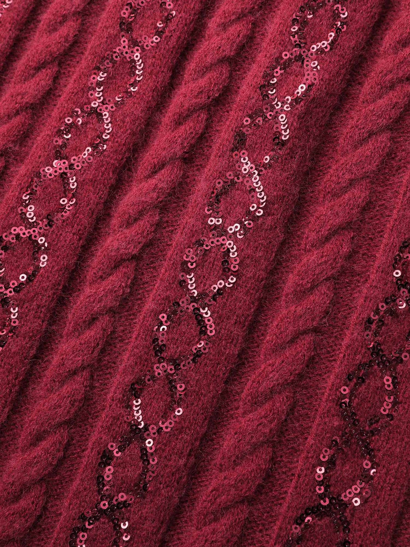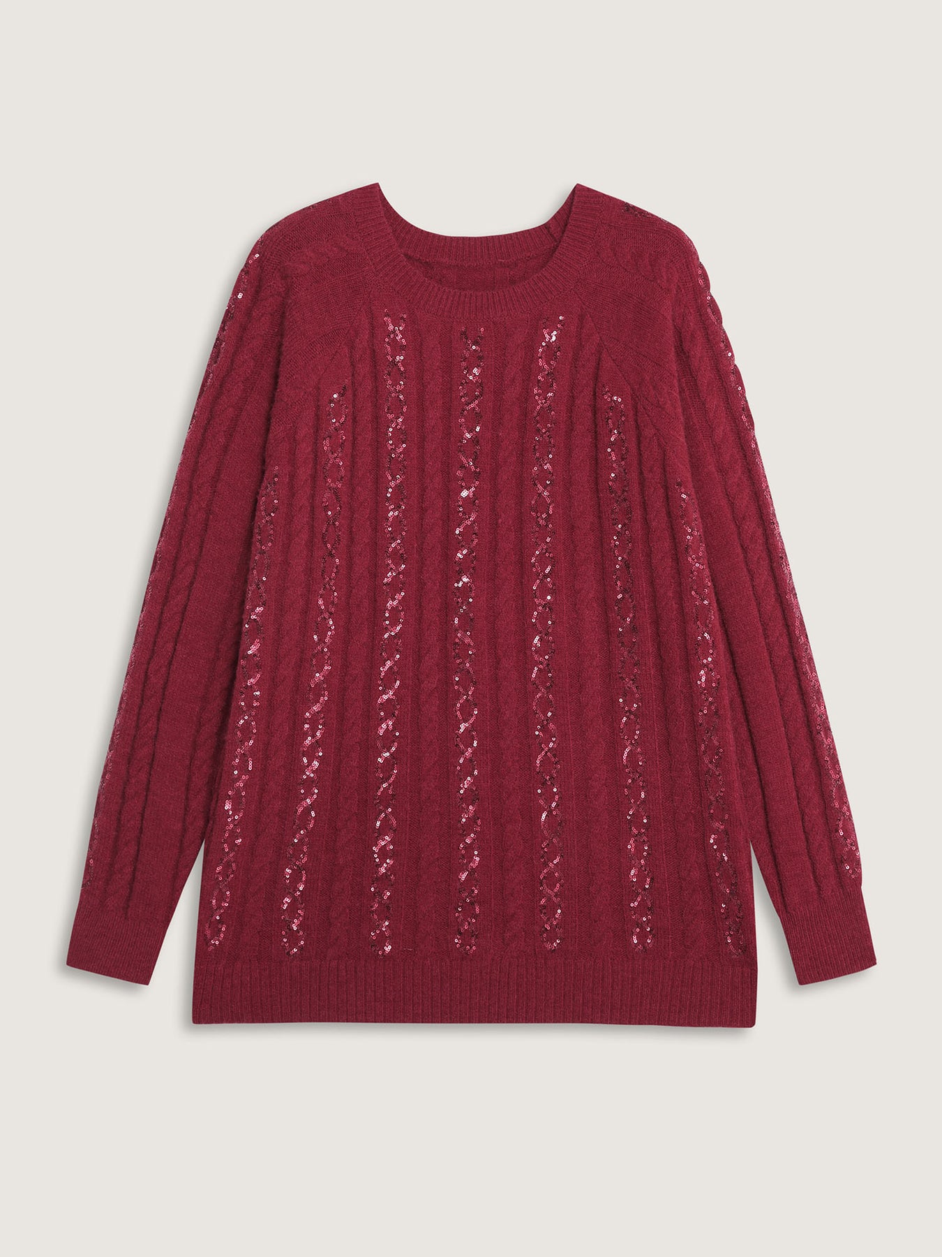 Cable Knit Textured Sequin Embroidered Pullover