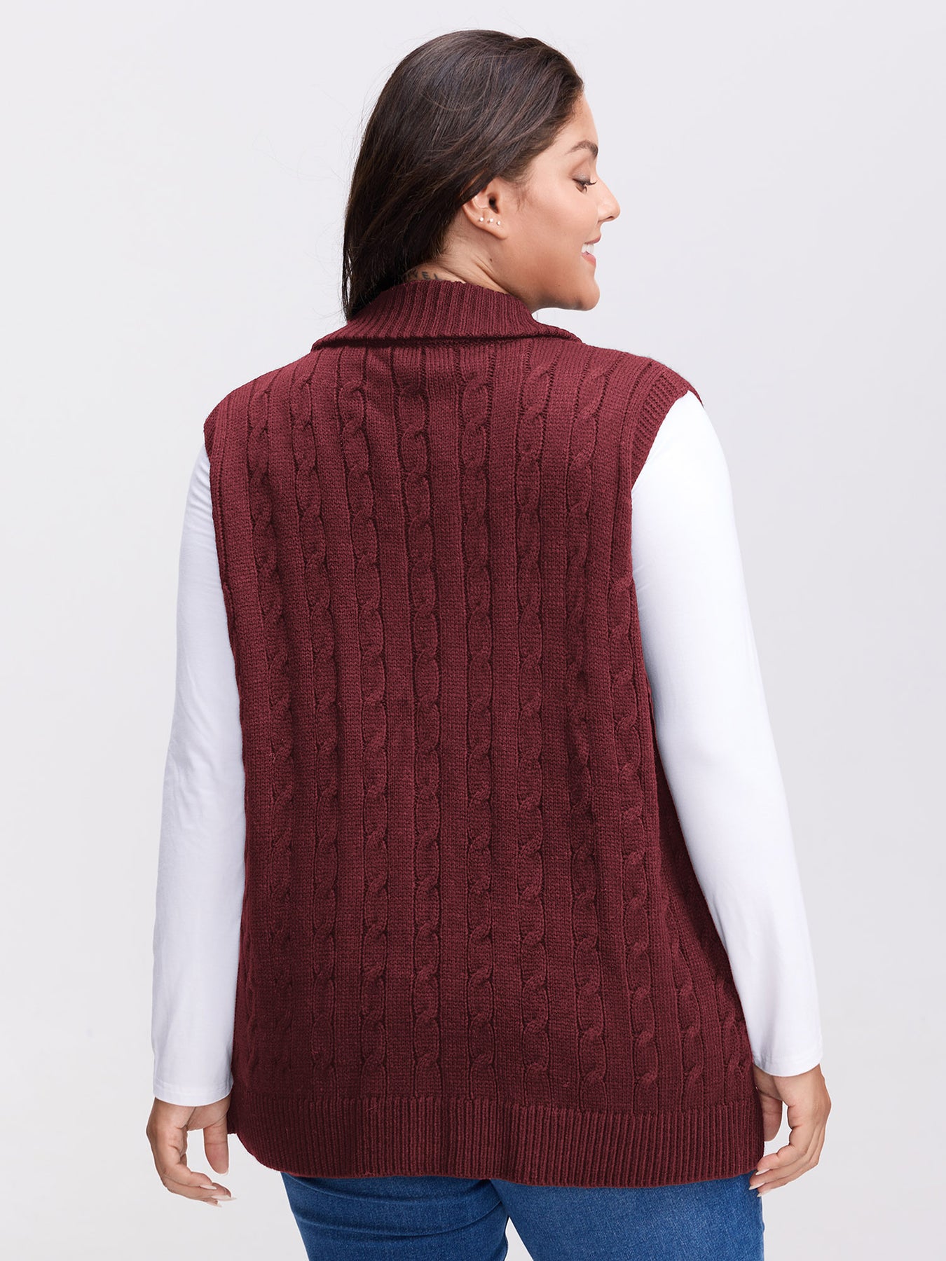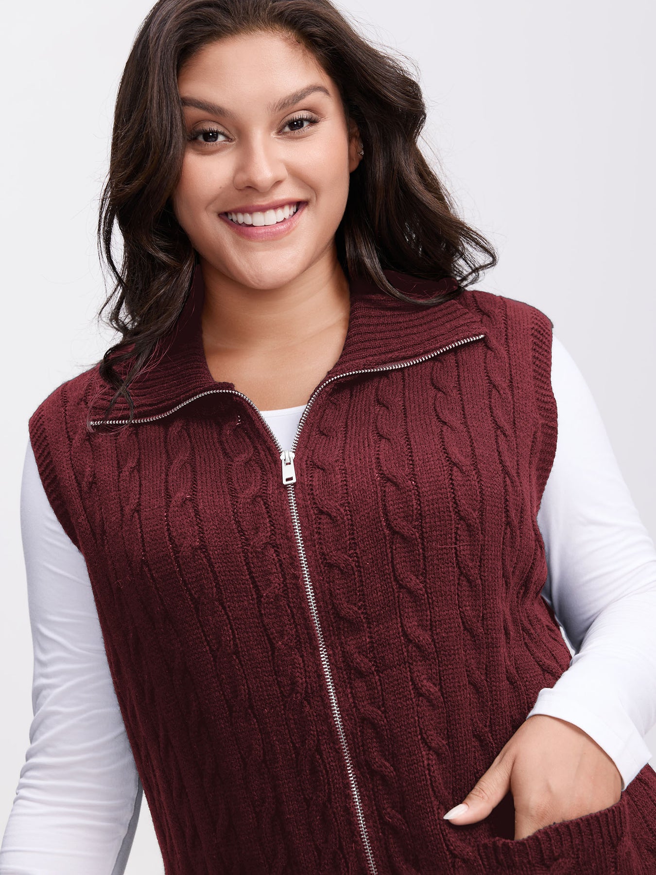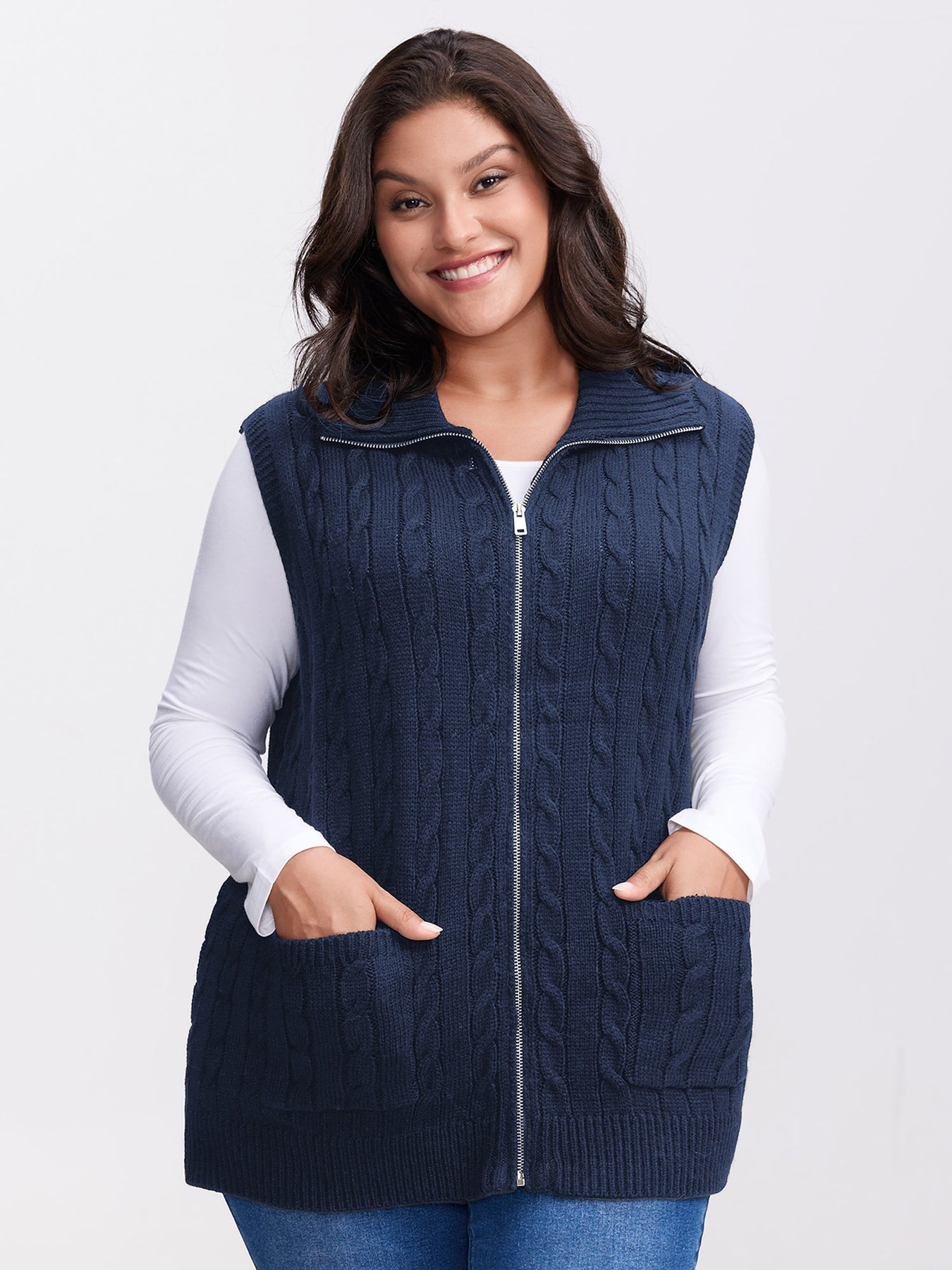 Cable Zipper Sleeveless Knit Cardigan