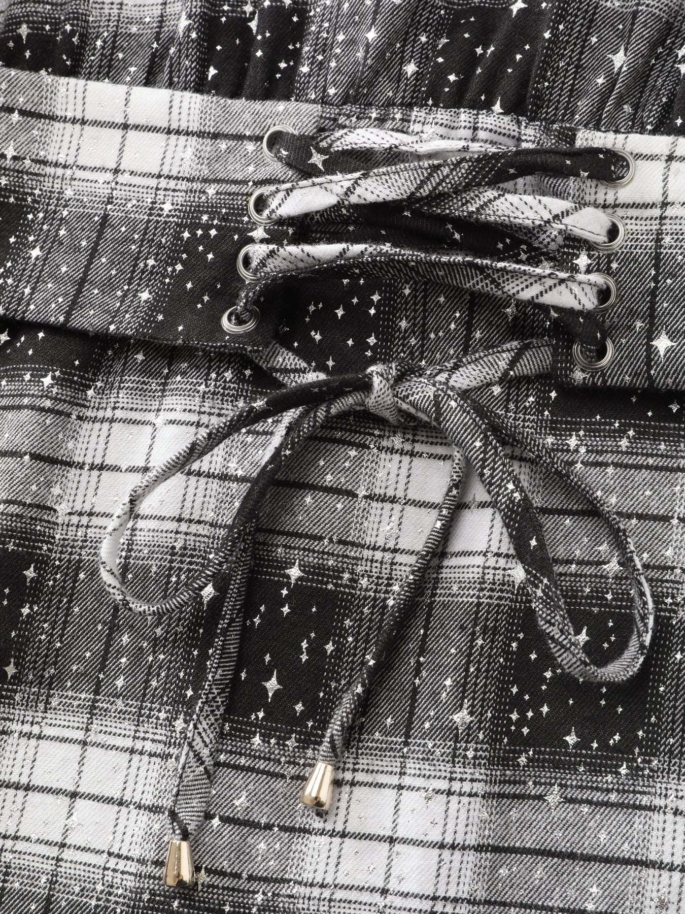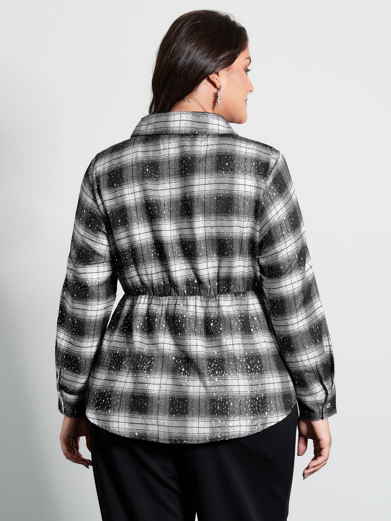 Checkered Hot Stamped Waist-Tie Blouse