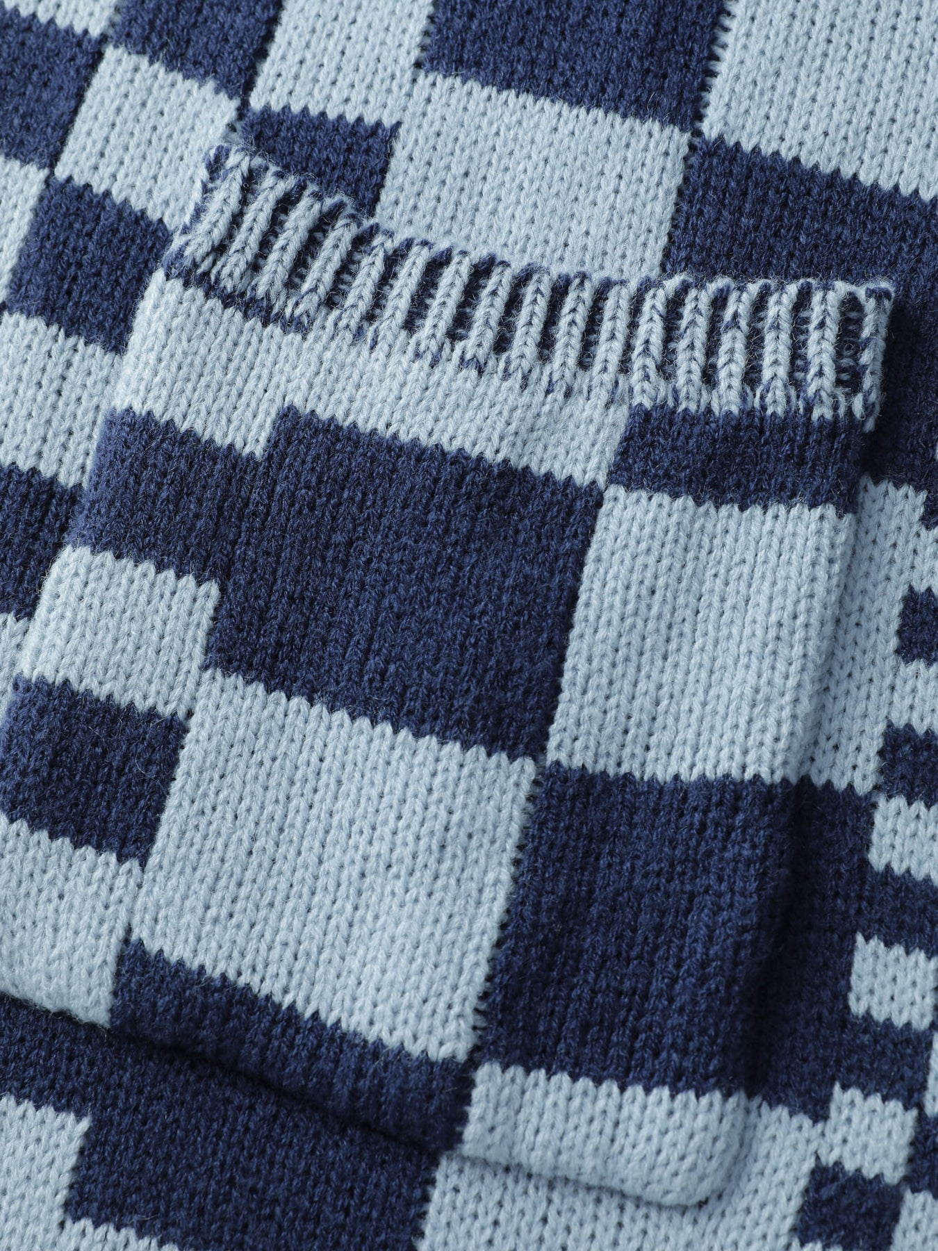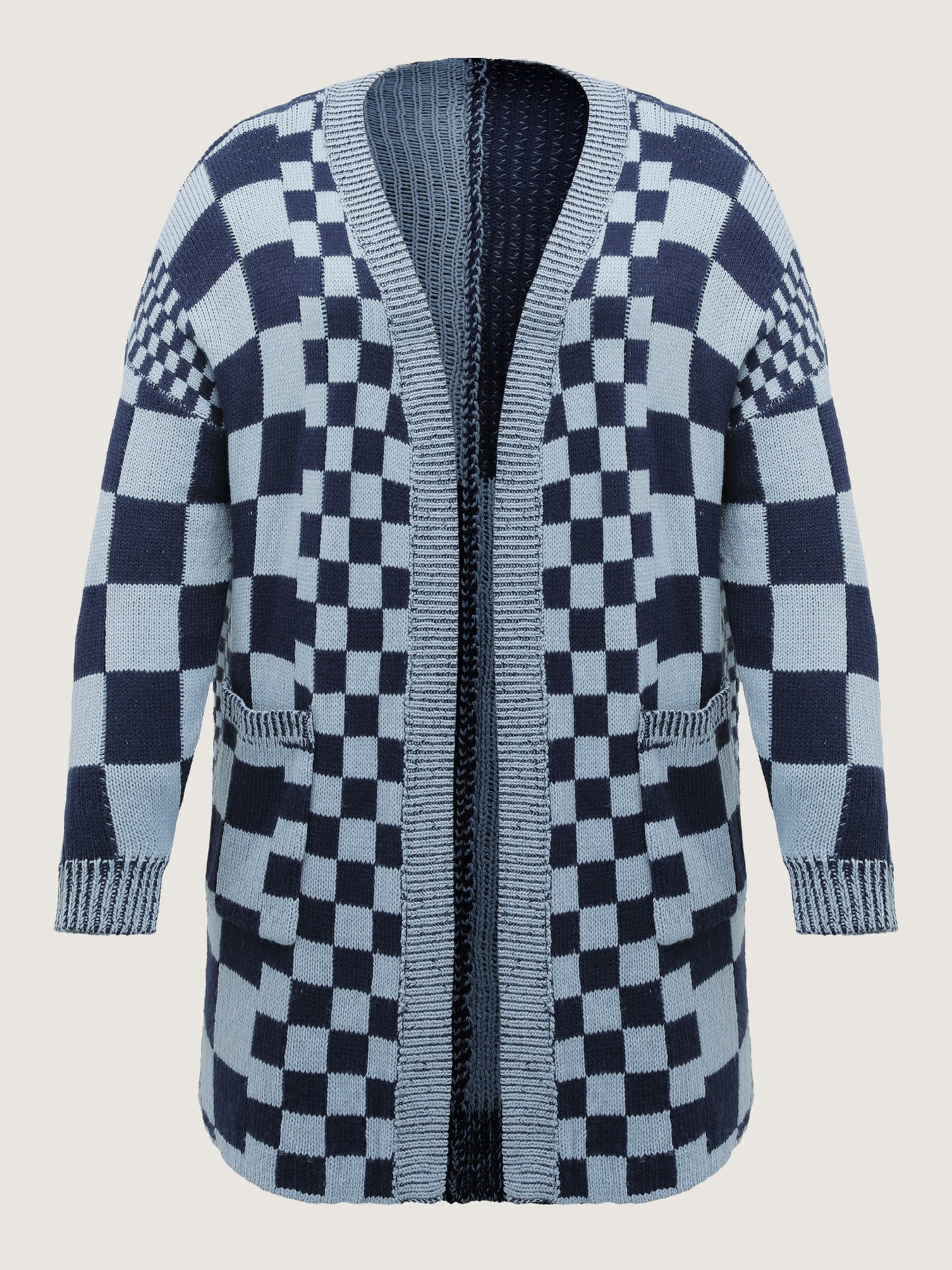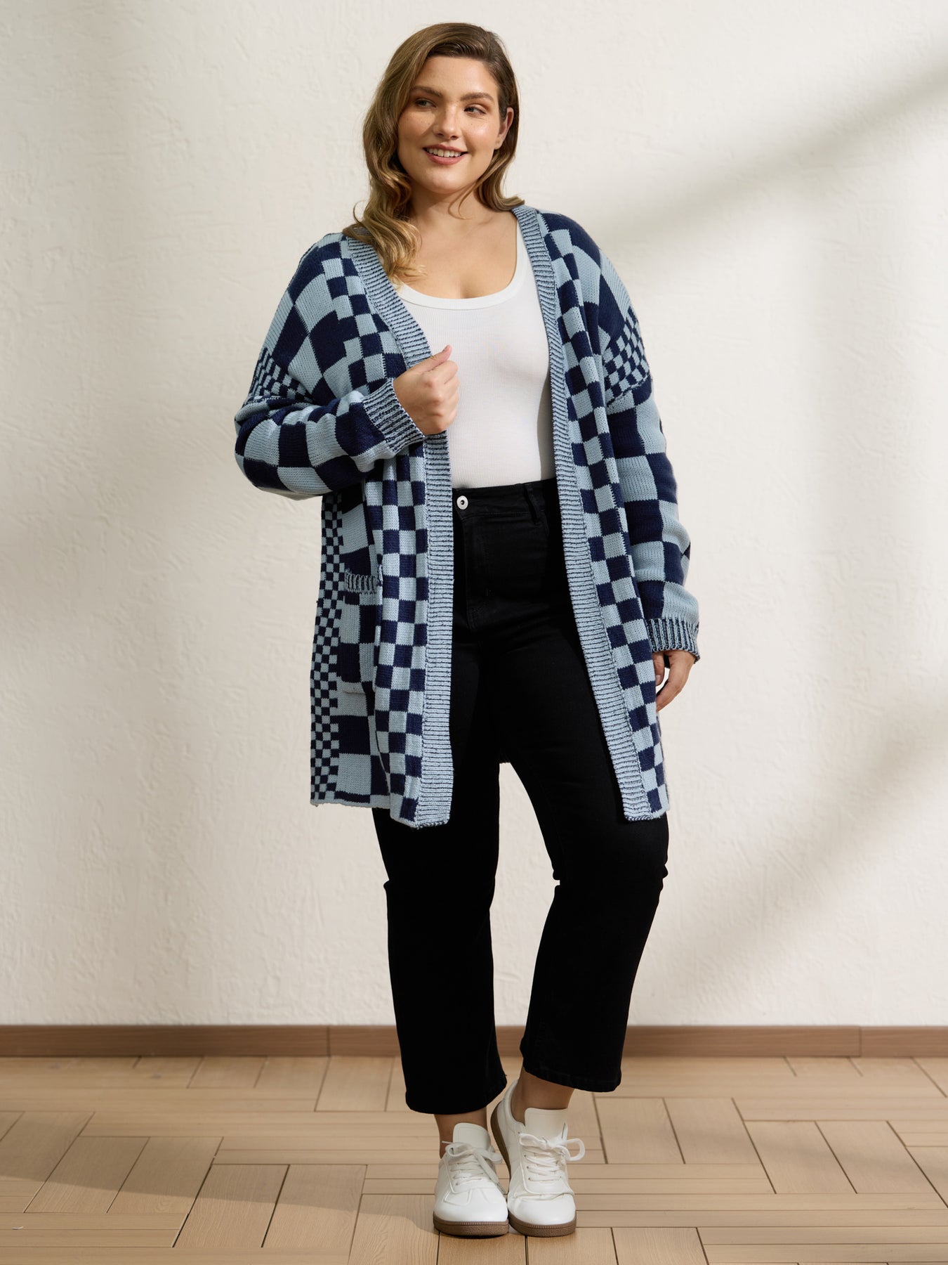 Checkered Relaxed-Fit Drop Shoulder Cardigan