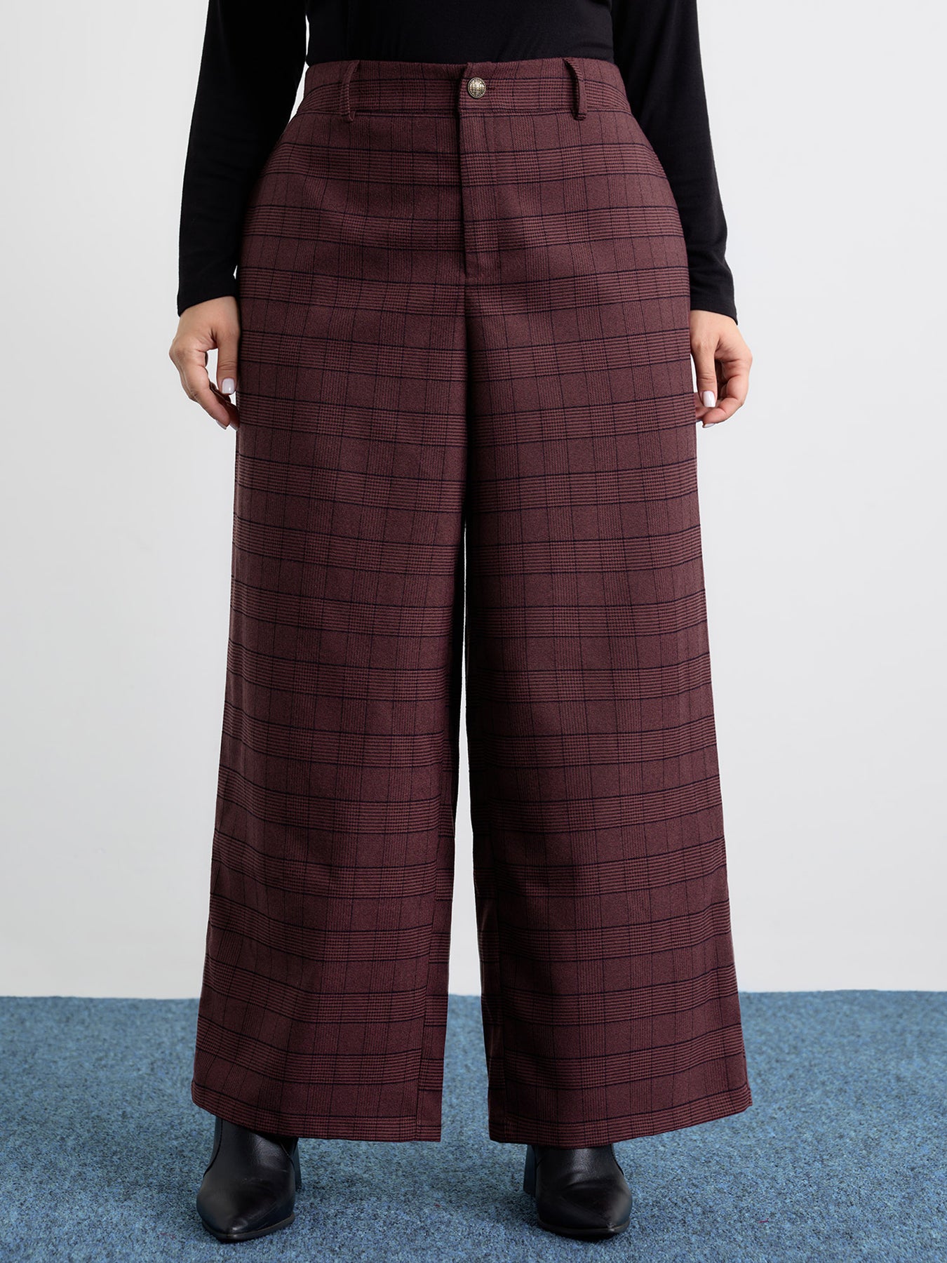 Checkered Stretchy Waist Pants