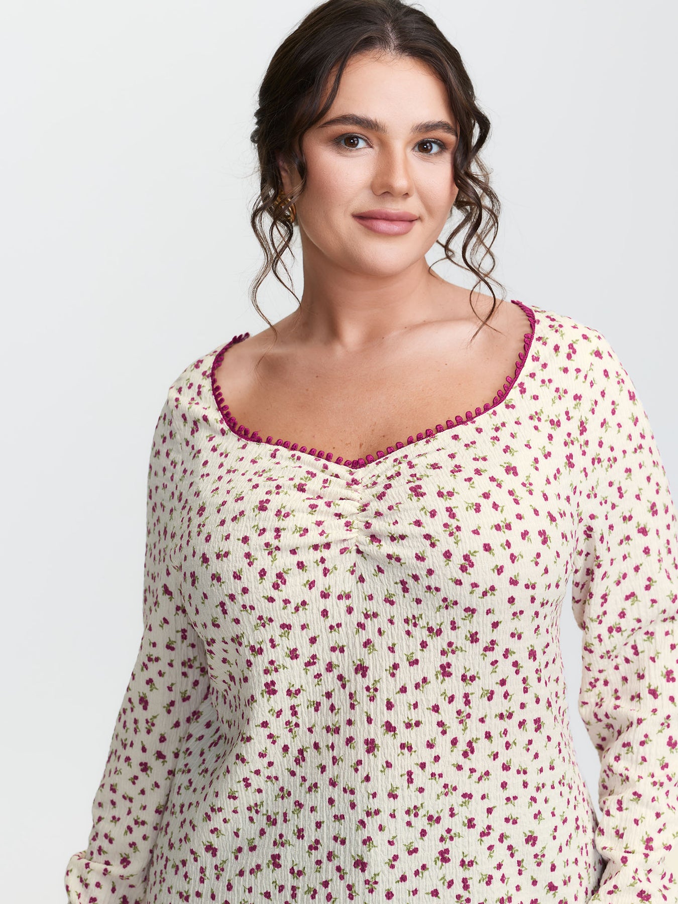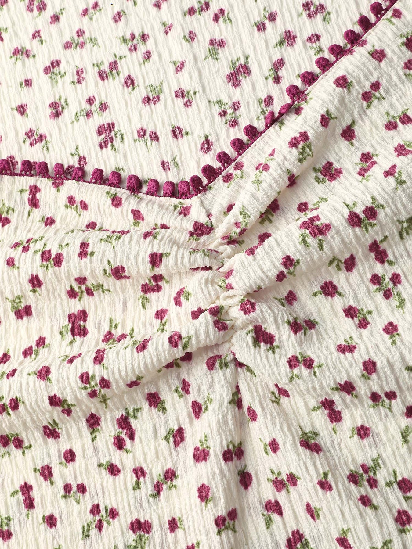 Cherry Print Pleated Stretchy T-Shirt