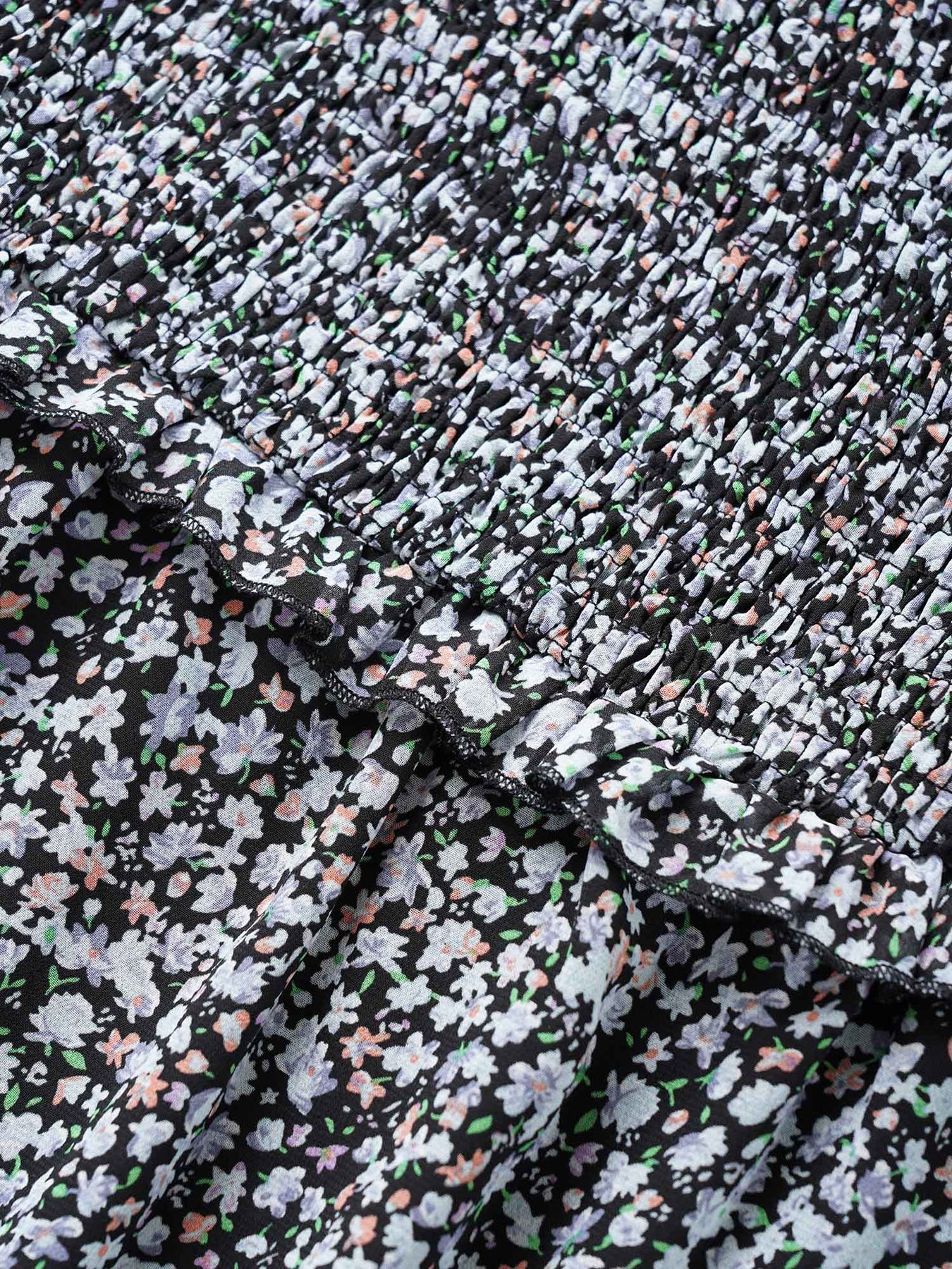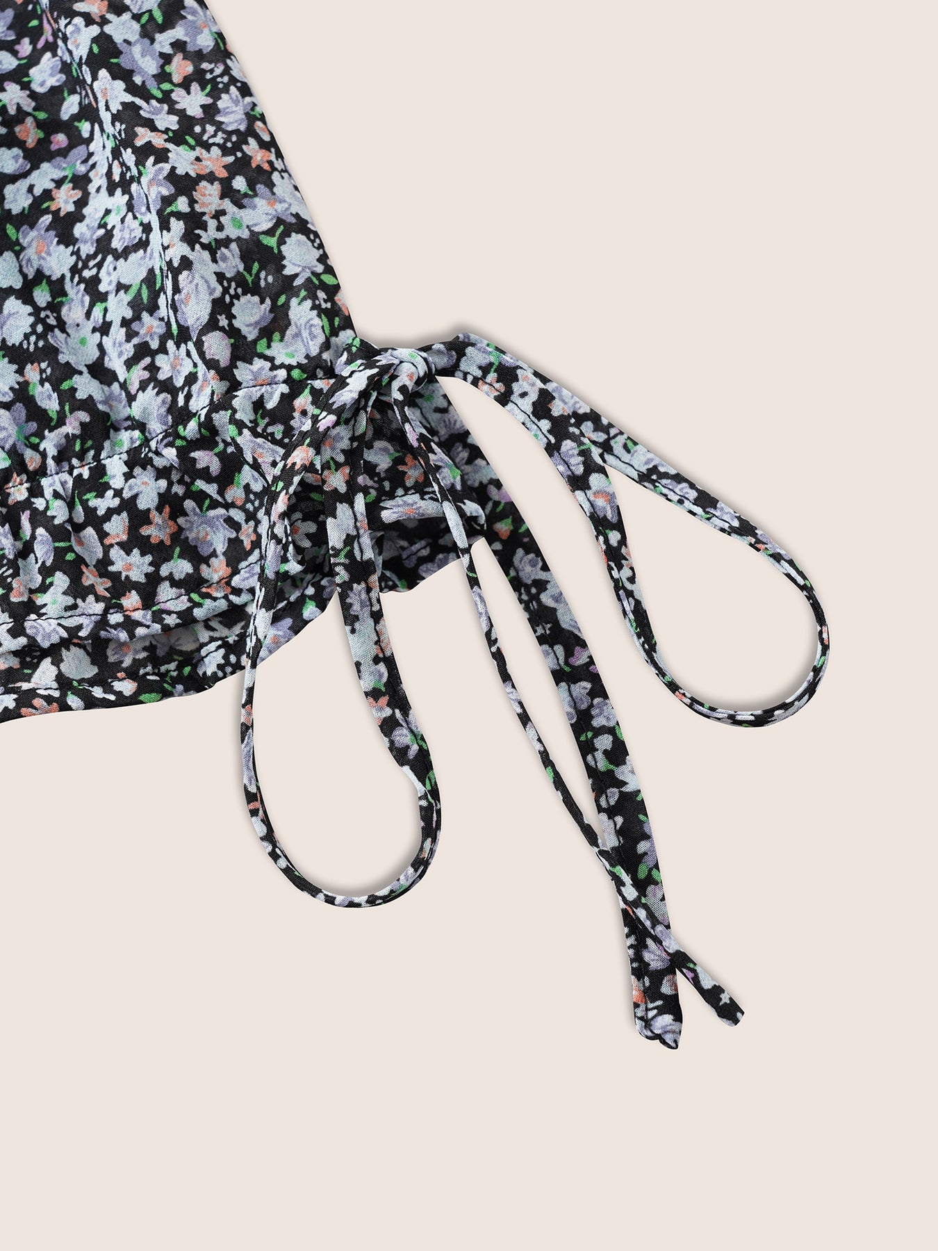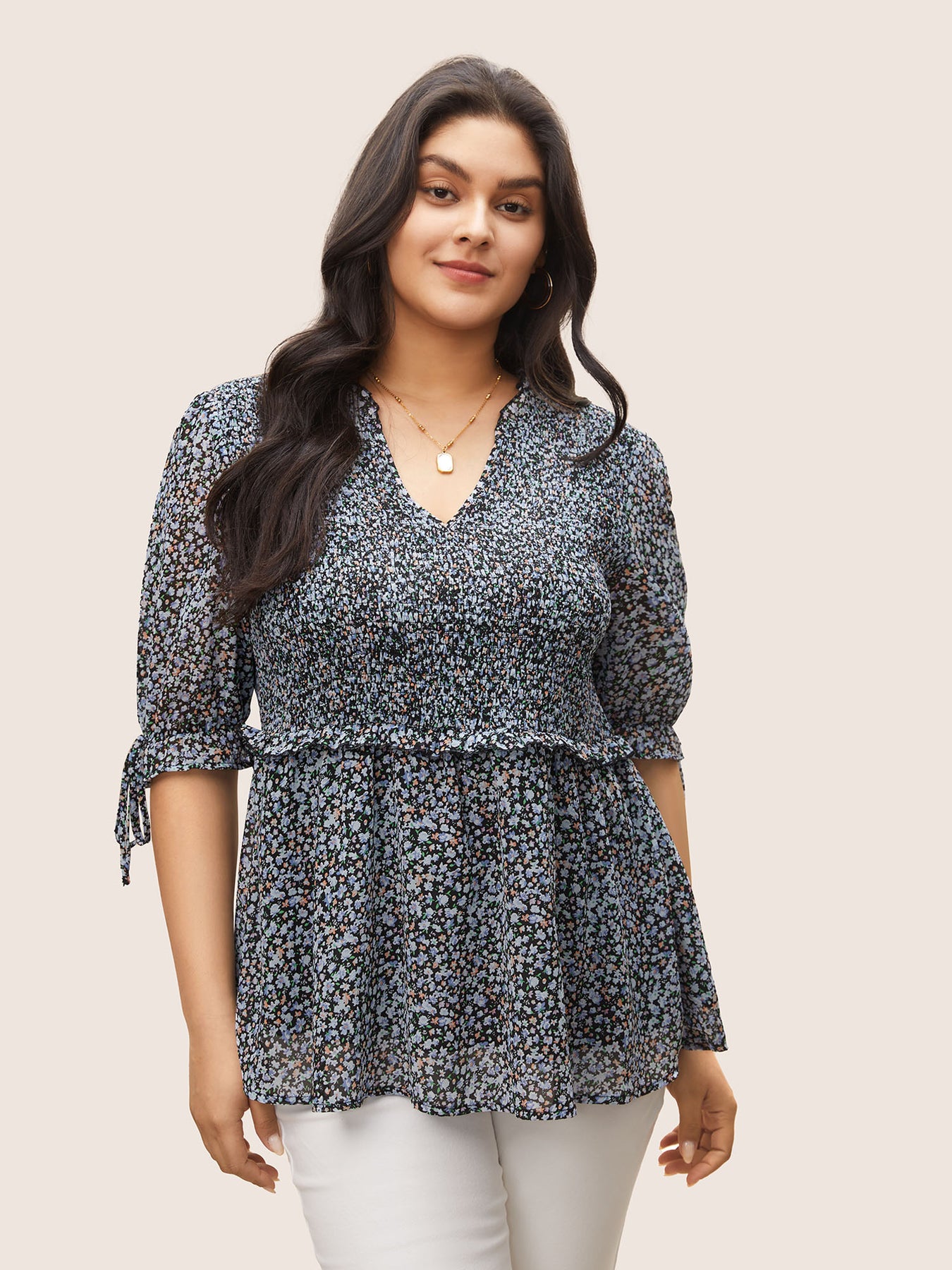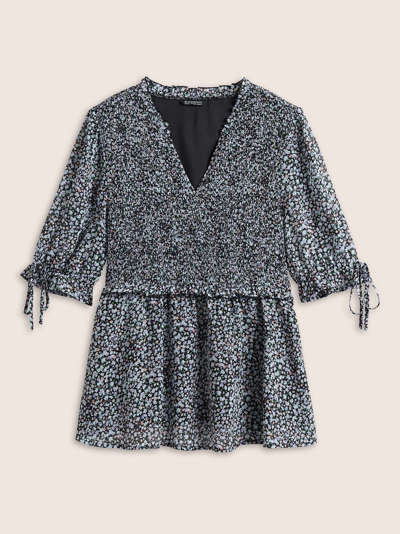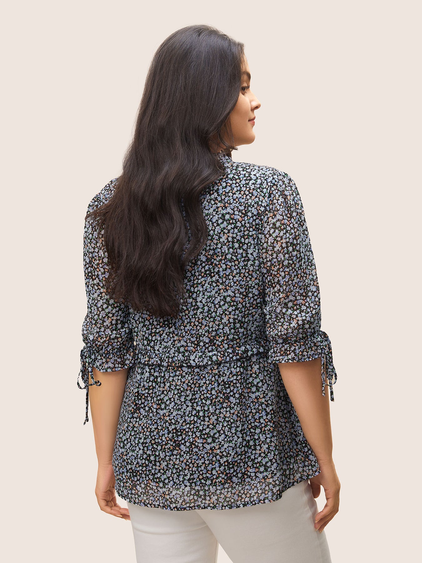 Chiffon Ditsy Floral Ruffles Shirred Ties Blouse