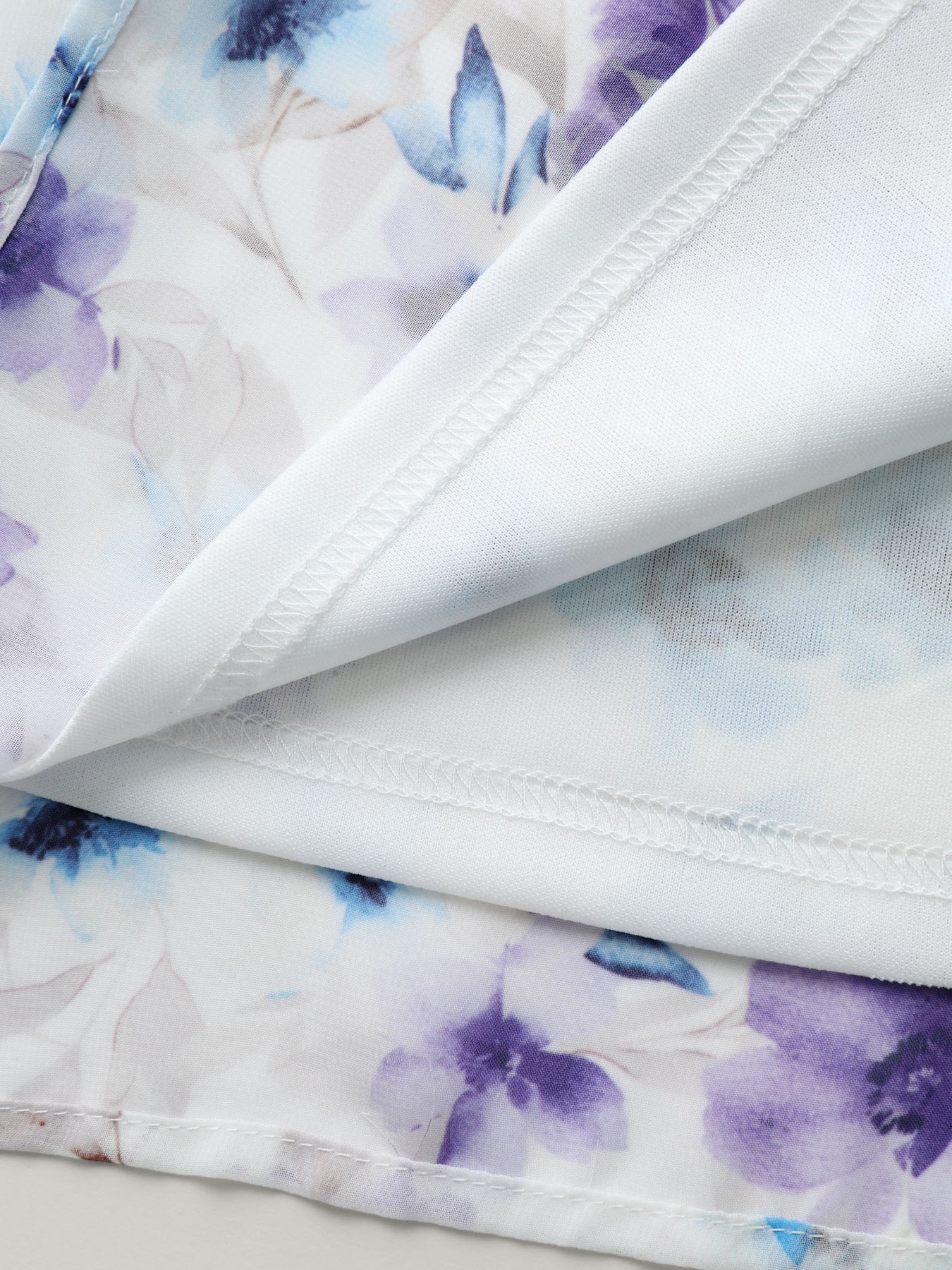 Chiffon Floral Spliced Neckline Tie Blouse