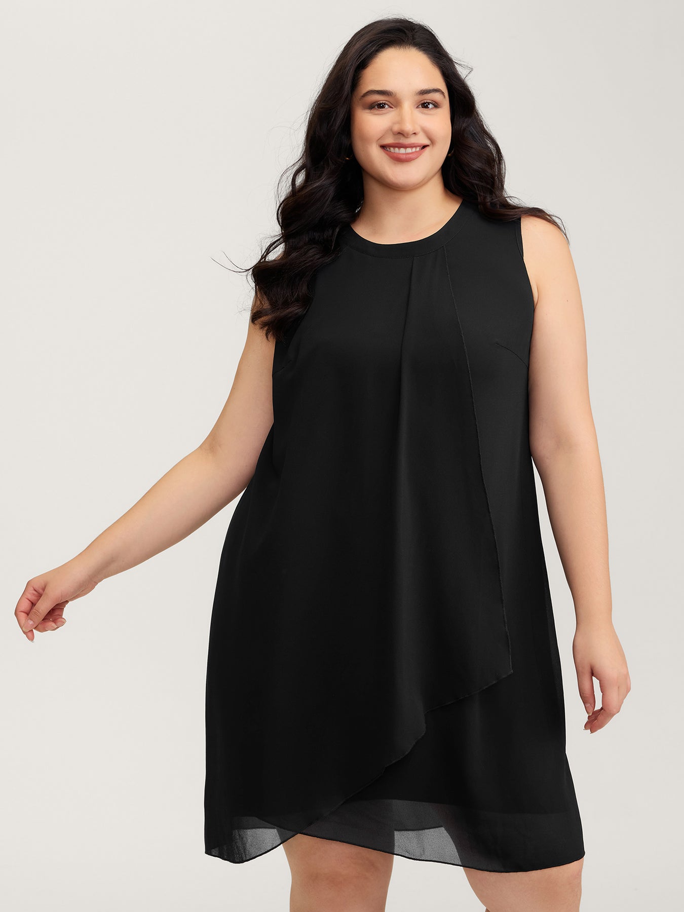 Chiffon Sheer Pleated Knee-Length Dress