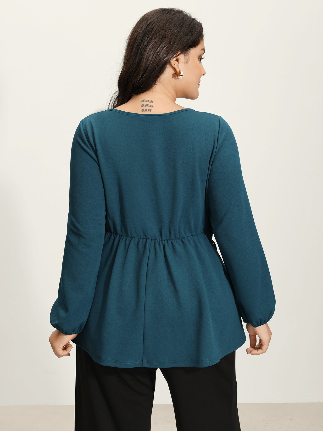 Cinched-Waist Cross-Tie Stretchy Blouse