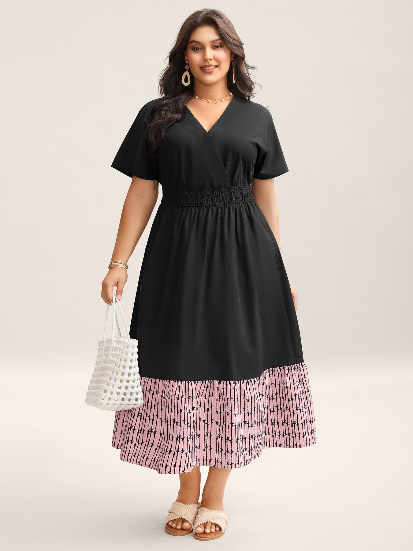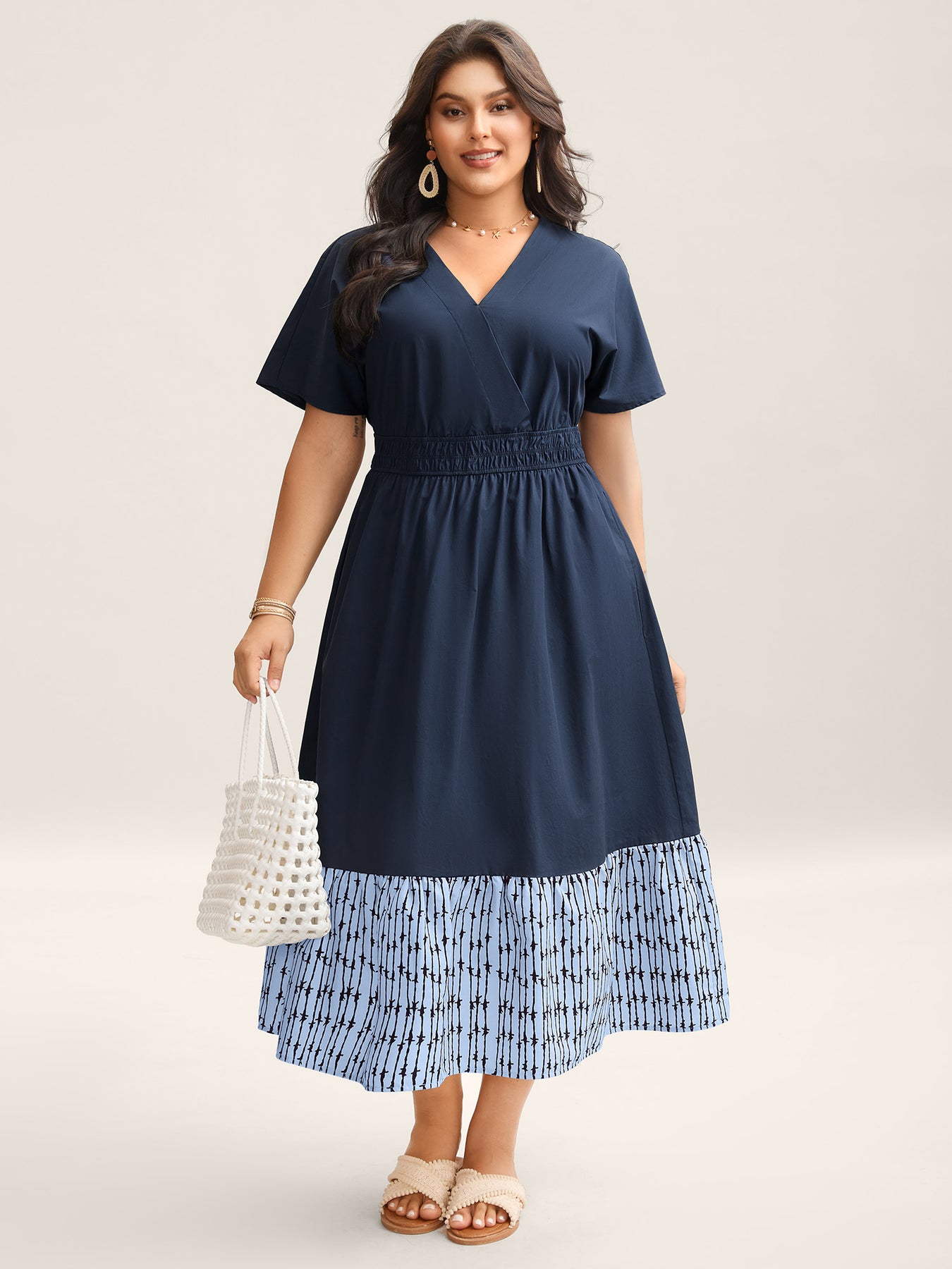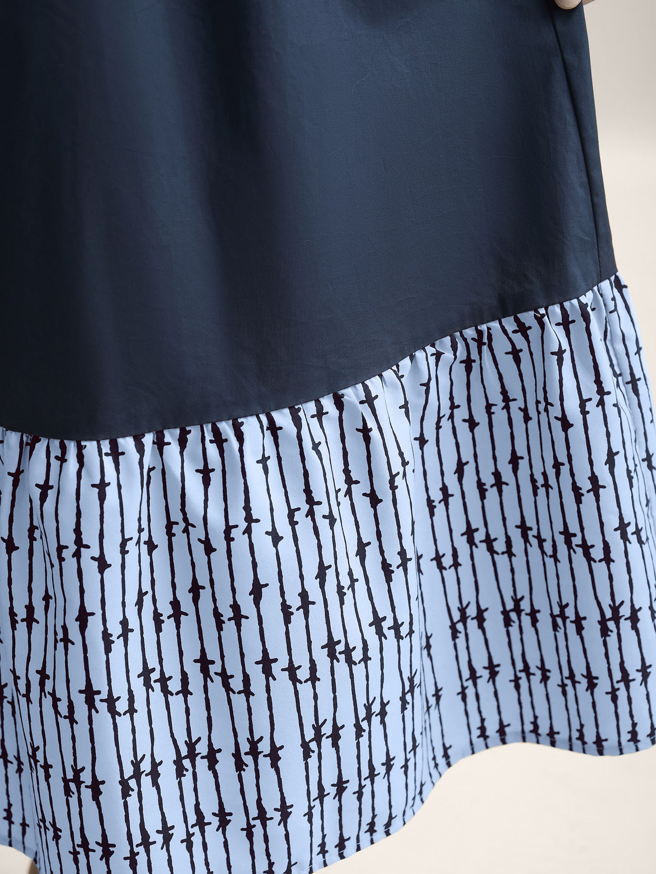 Cotton Color Block Cinched-Waist Spliced Maxi Dress